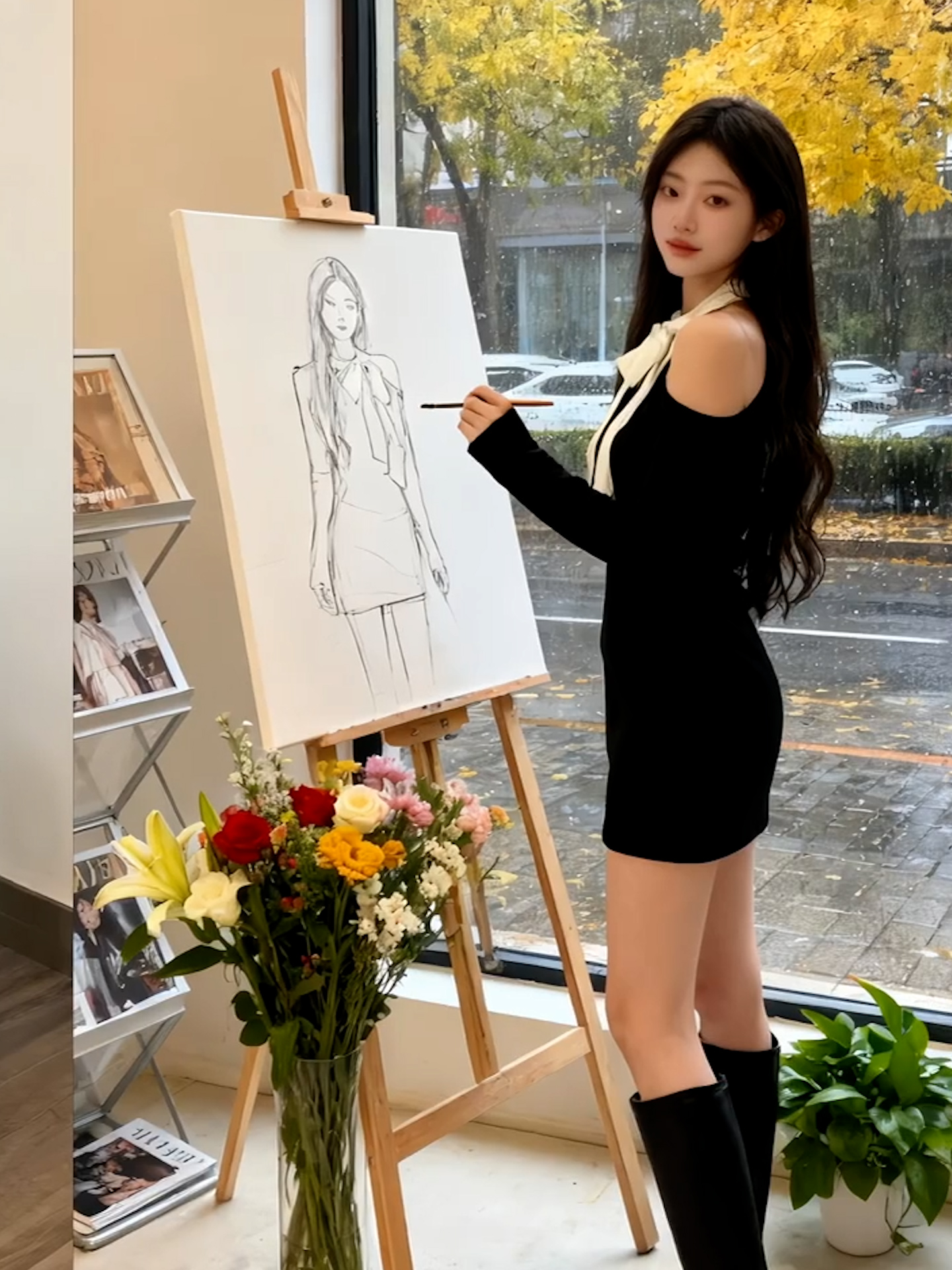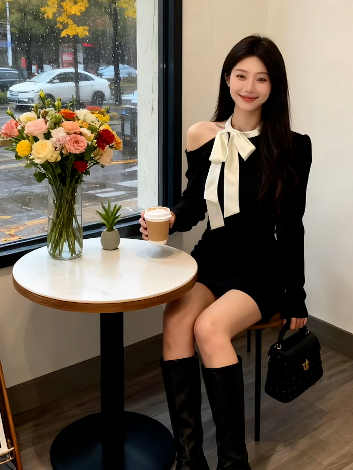 French-Style Off-The-Shoulder Bow-Knot Black Knitted Dress for Women, Early Autumn Wear, High-End, Slim-Fitting, Hip-Hugging Short Skirt