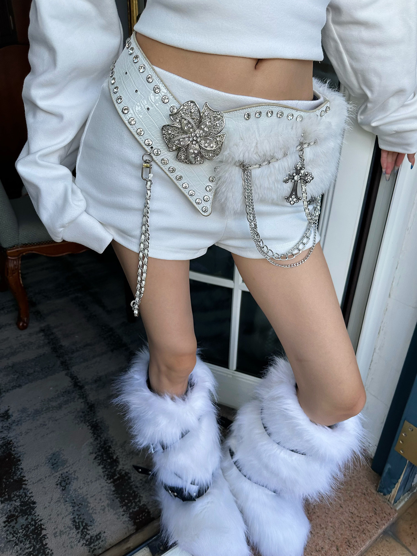 Ccup Space Retro Versatile Design Women's Asymmetrical Plush Waist Chain Waist Belt Sexy Waist Accessory