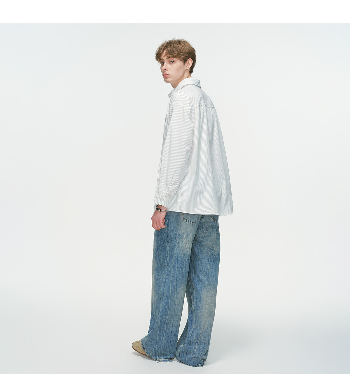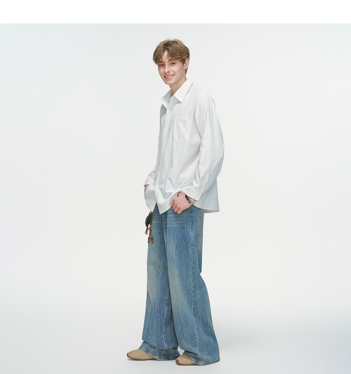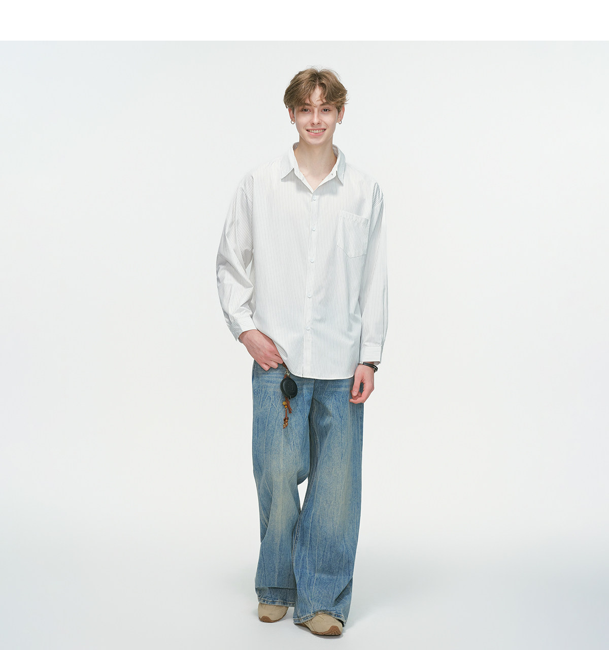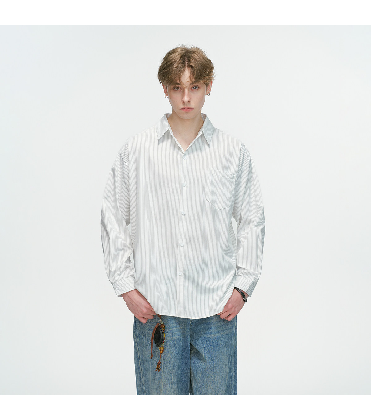 Dream Made American-Style Commuter Striped White Shirt for Men, Spring Casual Inner Wear, Couple's Long-Sleeved Shirt