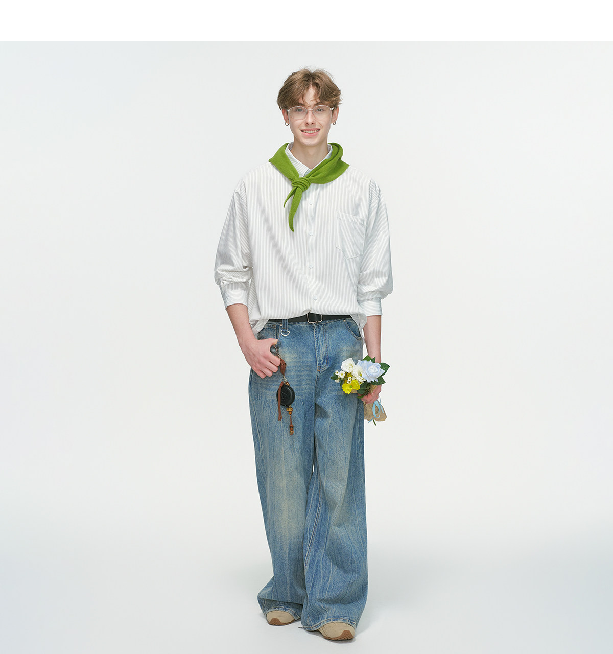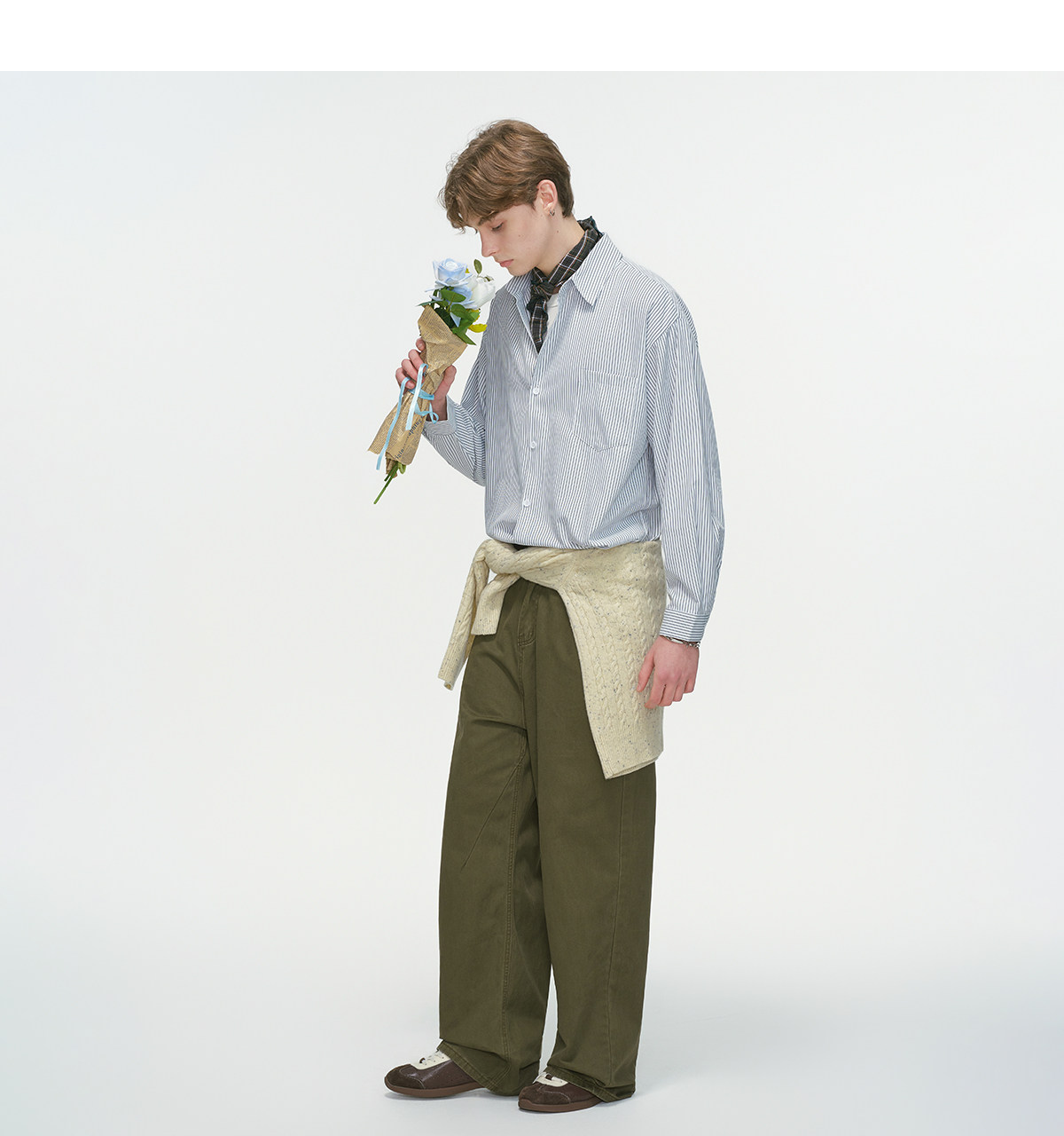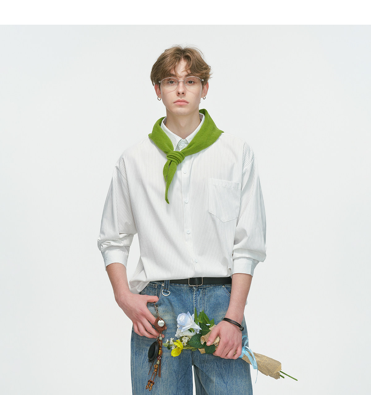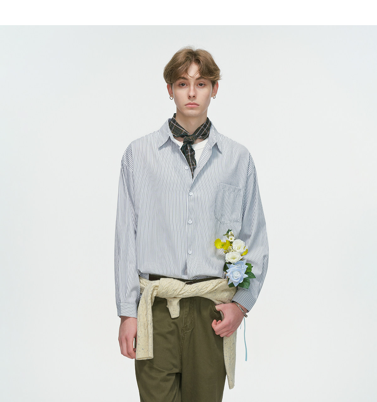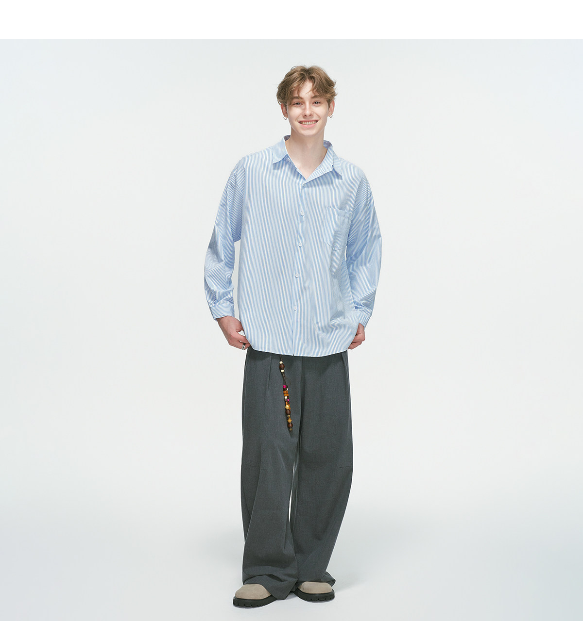 Dream Made American-Style Commuter Striped White Shirt for Men, Spring Casual Inner Wear, Couple's Long-Sleeved Shirt