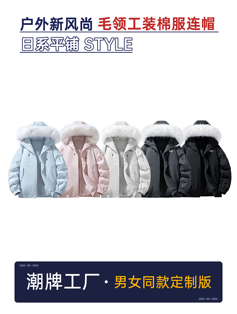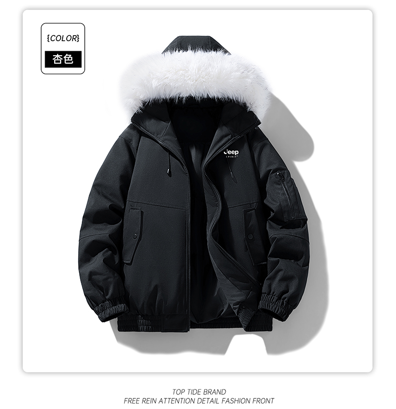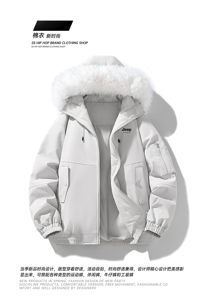 Jeep Zhao Lusi Style down Cotton Jacket for Women, Winter 2025 New Cotton Coat with Large Fur Collar, Workwear Parka Jacket