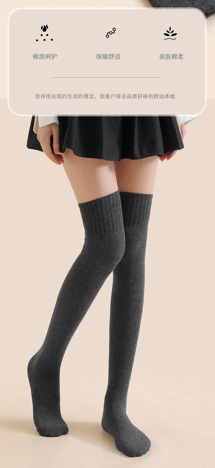 Long Socks for Women, Thigh-High Socks for Spring, Autumn, and Winter, Thickened for Warmth, Pure Cotton Over-The-Knee Socks, Calf Socks, Pressure Shaping Long Tube Socks