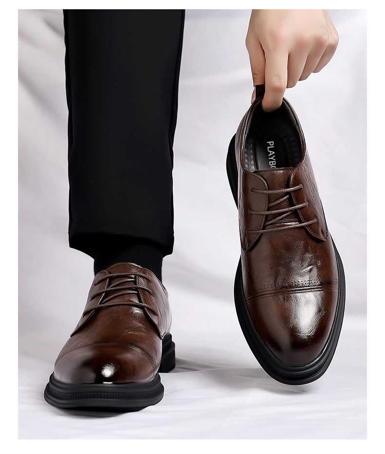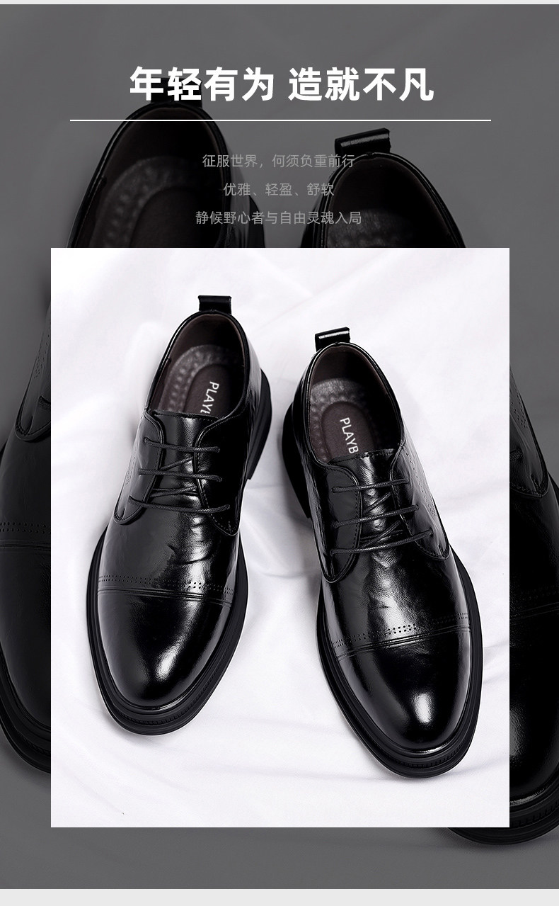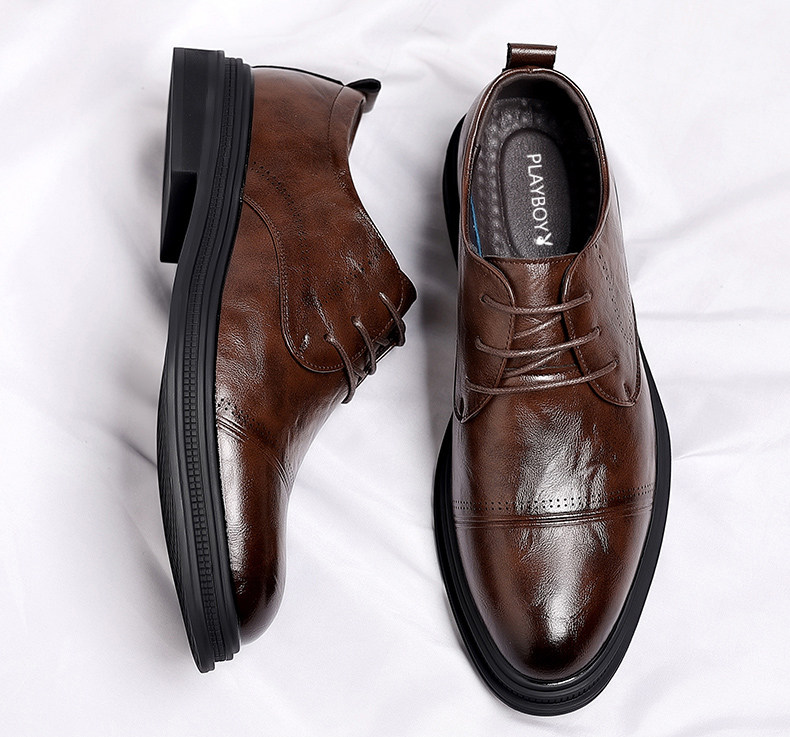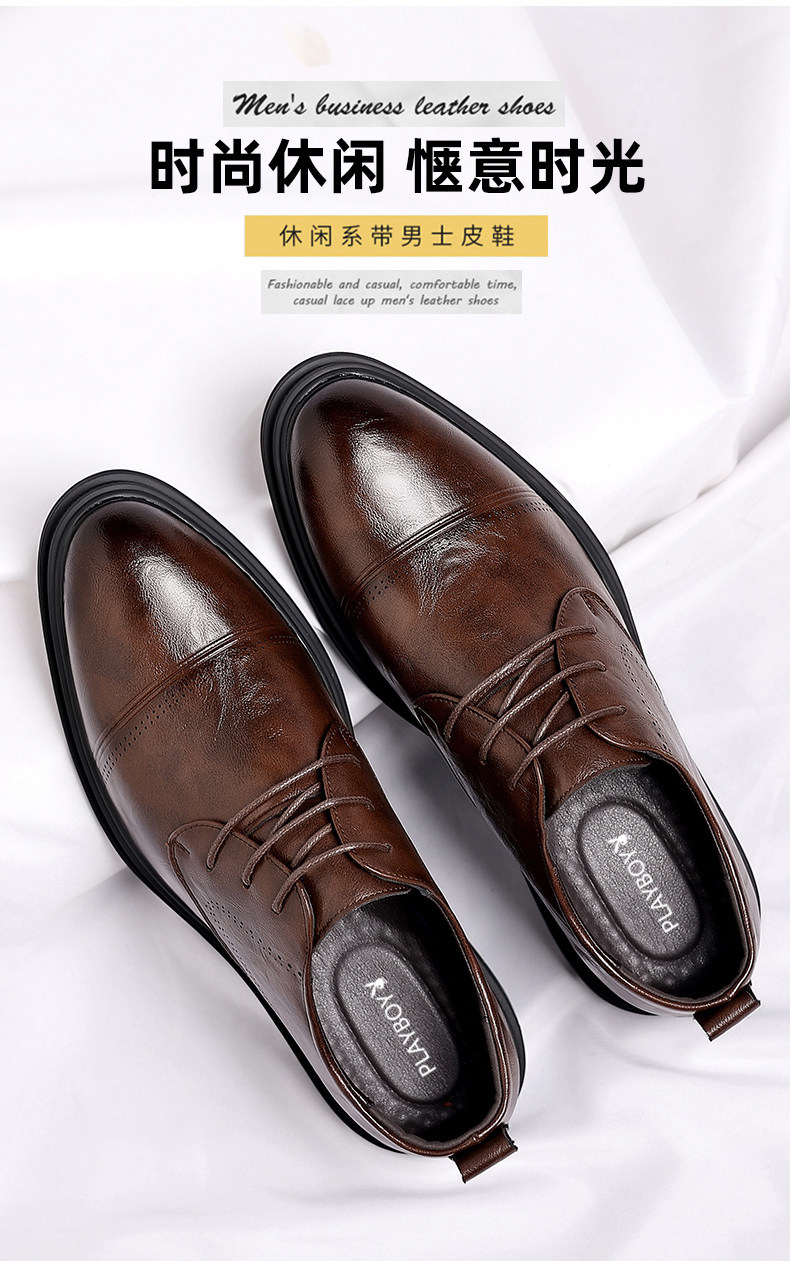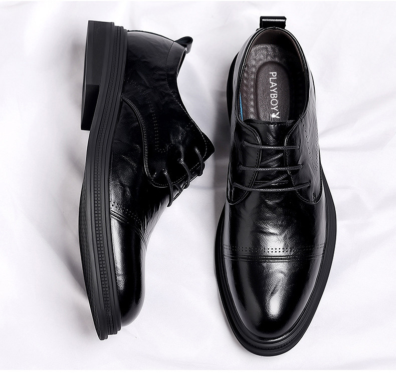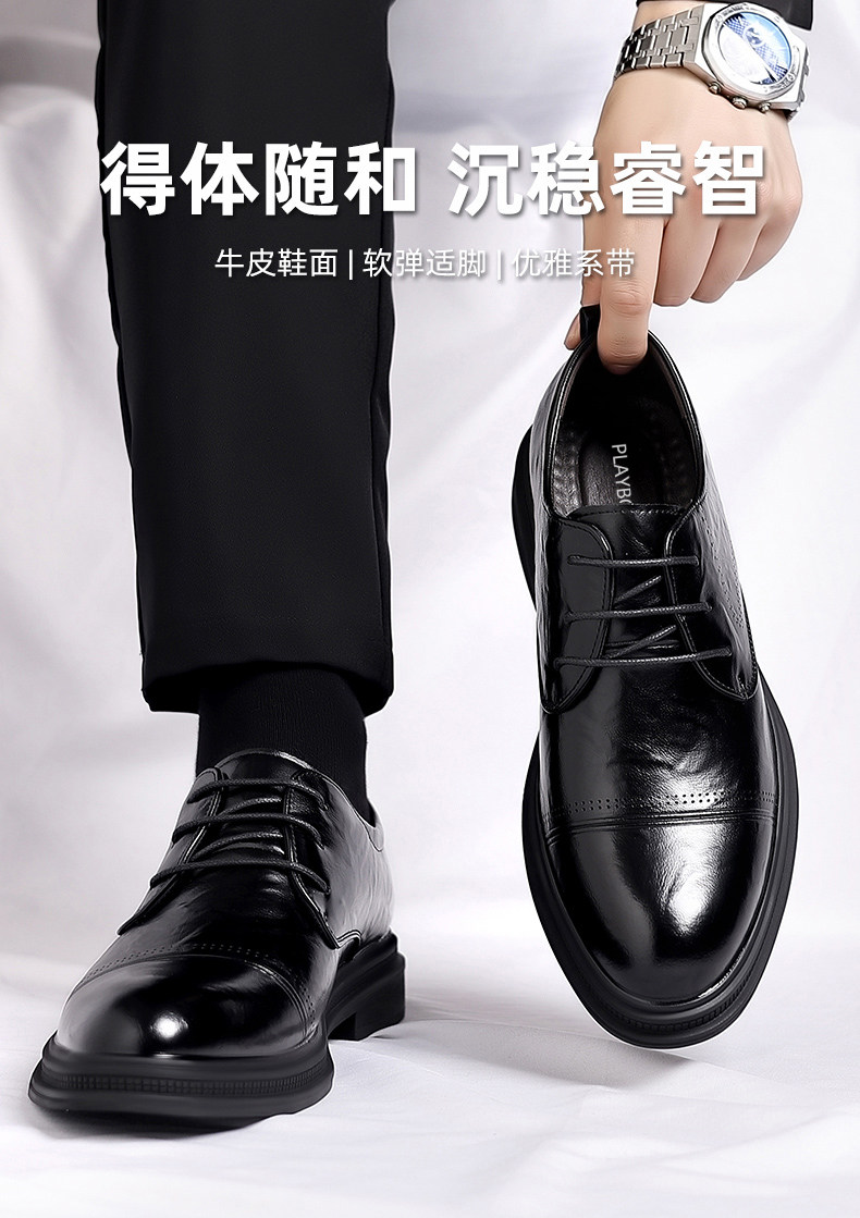 Playboy Men's Shoes Casual Leather Shoes Men's 2026 Genuine Leather Business Formal Derby Shoes Men's Groom Wedding Shoes