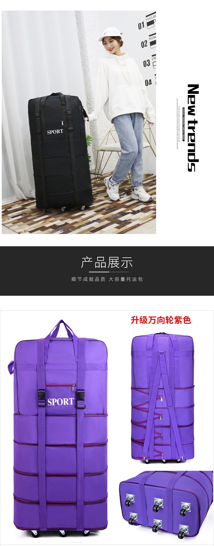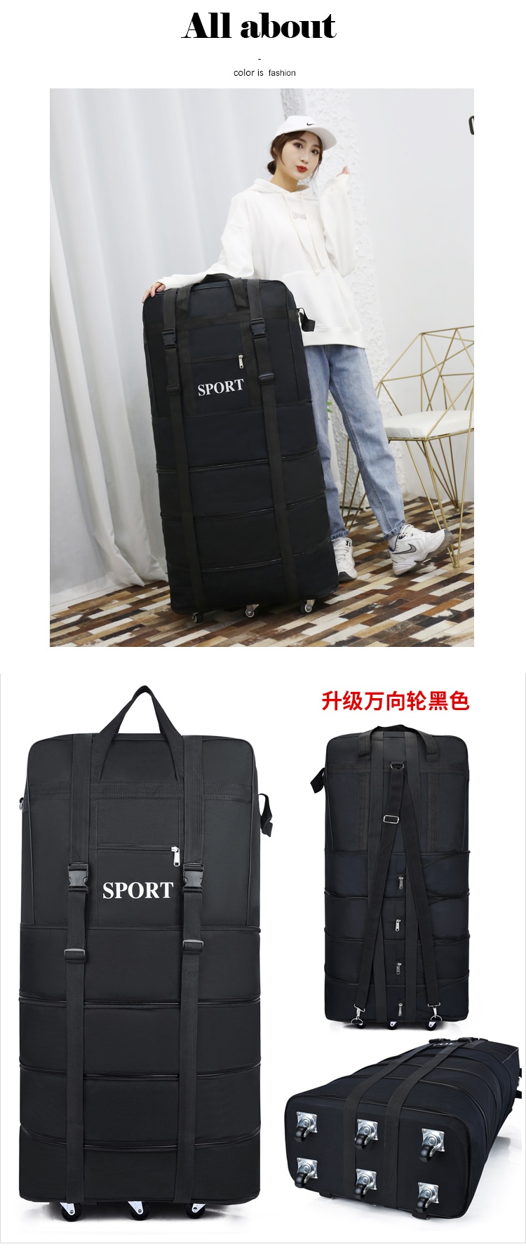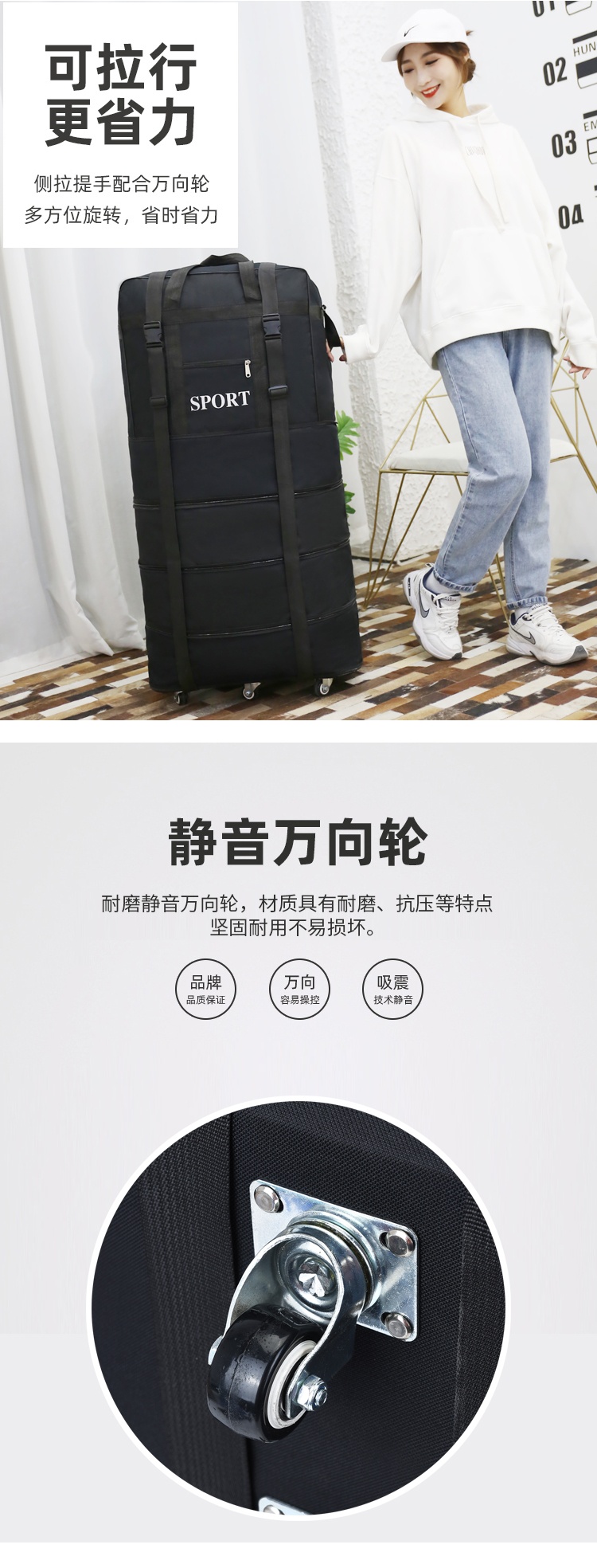 Back-To-School Cotton Quilt Storage Bag for Students Living on Campus, Foldable with Wheels, Special Waterproof Luggage Bag for Accommodation Clothes
