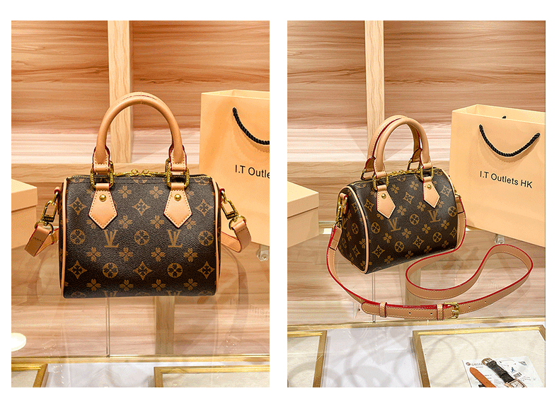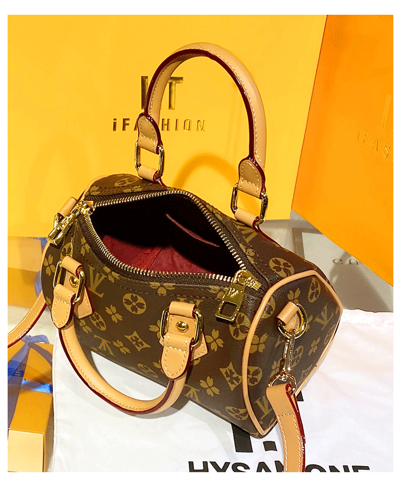 Bag Boutique Women's 2025 New Autumn and Winter Genuine Leather Printed Boston Pillow Bag Mini Small Bag Single Shoulder Crossbody Bag