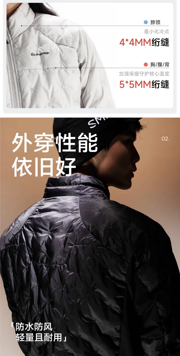 Shanhigh Mountain and Sea Ski down Liner Windproof Waterproof Lightweight Outdoor White Duck down Jacket for Men and Women