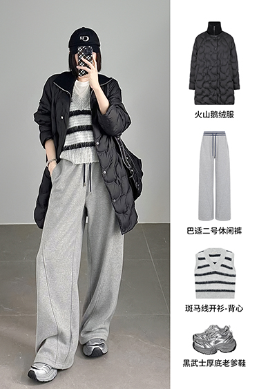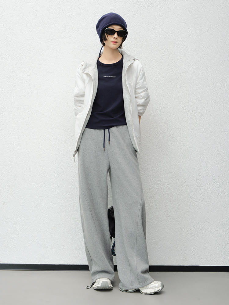 MEIYANG MEIYANG Bashi No. 2 Casual Pants Thick Velvet Heattech Contrast Color Straight Pants [Big 60]-Wednesday
