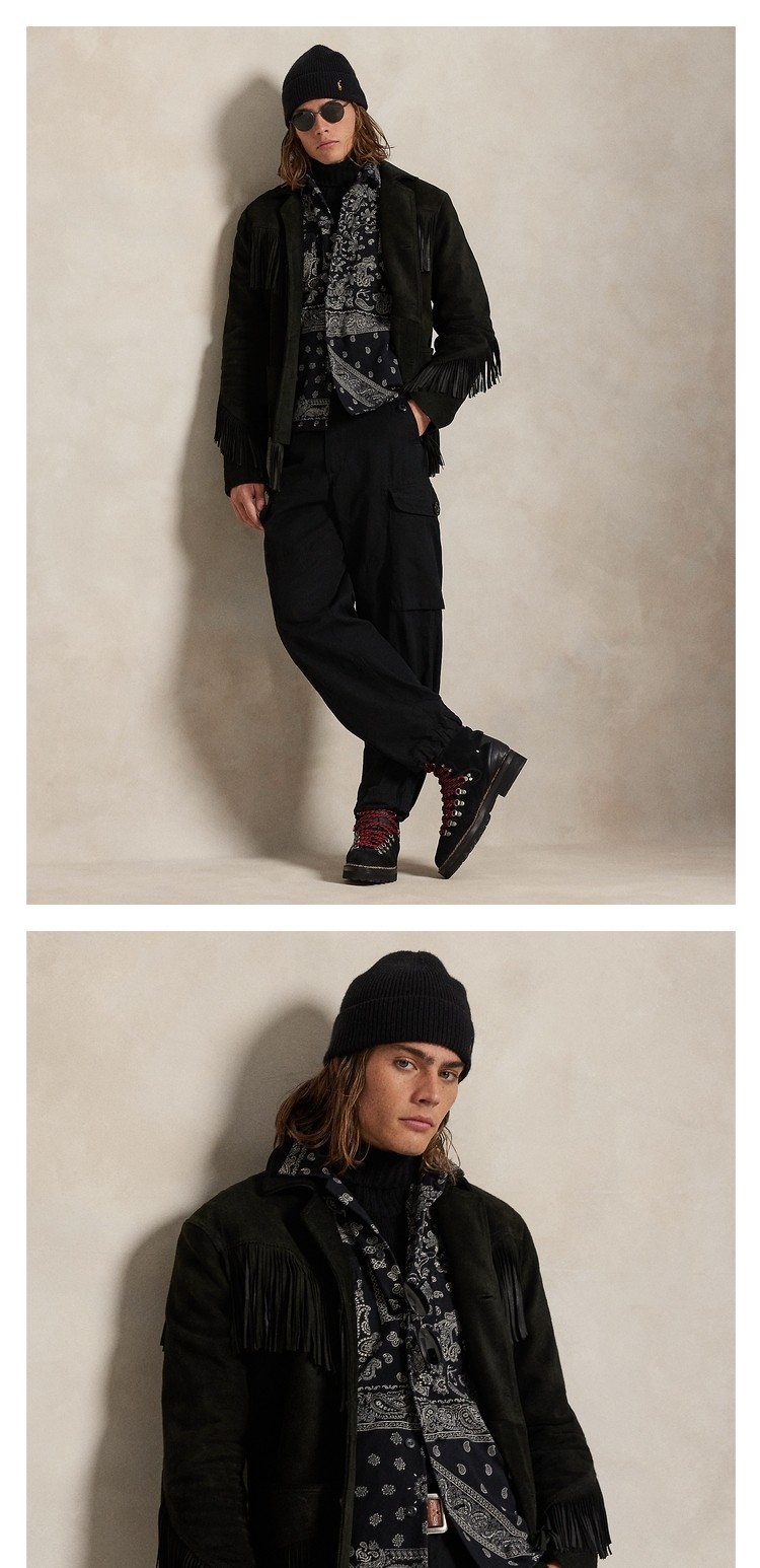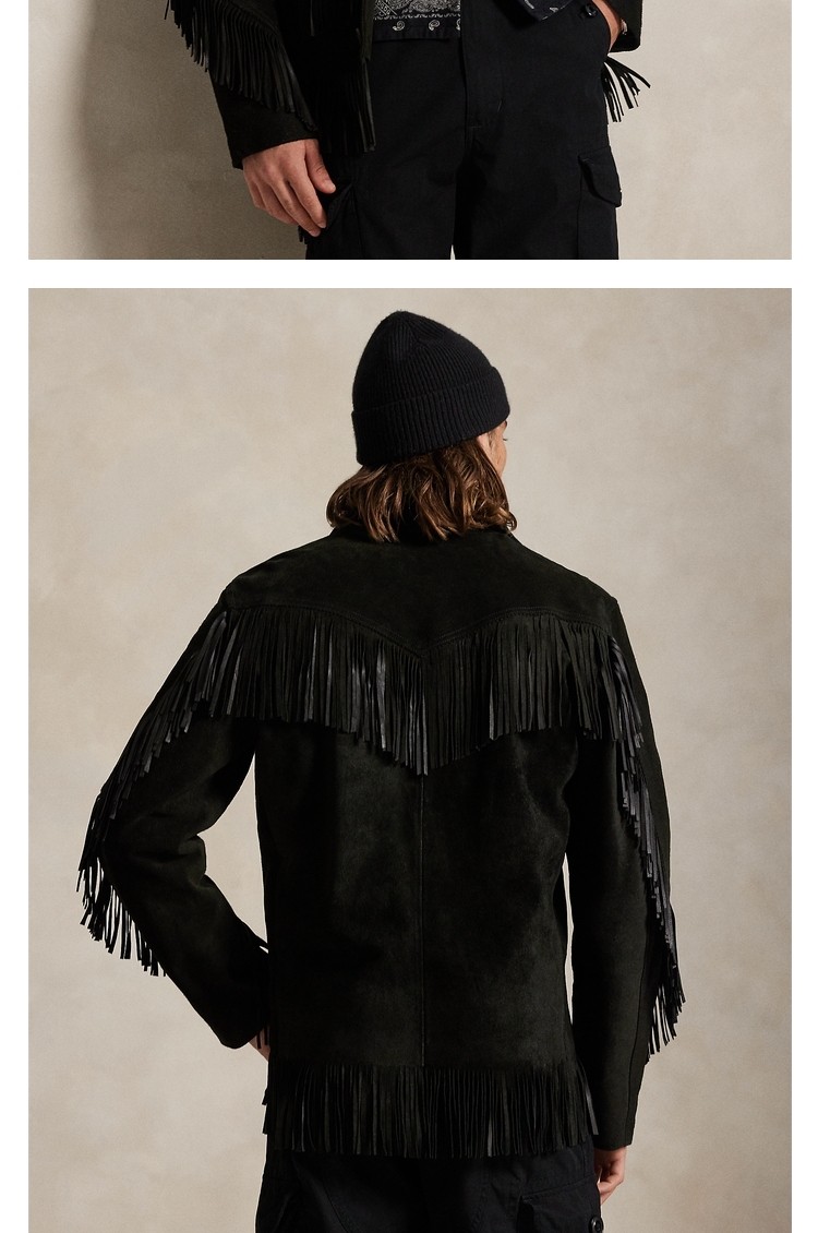 Ralph Lauren/Ralph Lauren Men's Fall 25 Fringed Cow Leather Jacket Rl100396