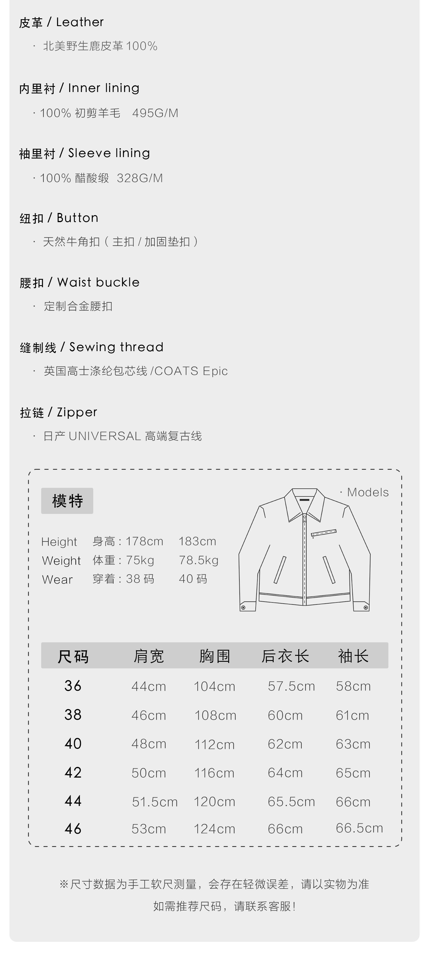 Berg River Is Selling 1.6 Thick Deerskin 1930's Style Short Biker Jacket with Wool Lining in Stock