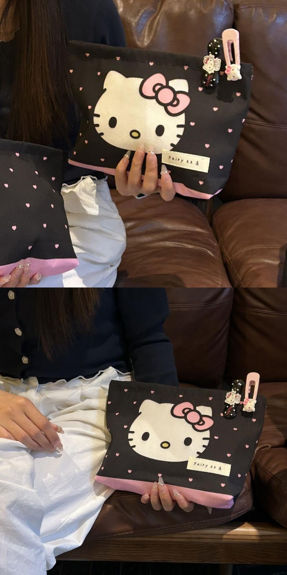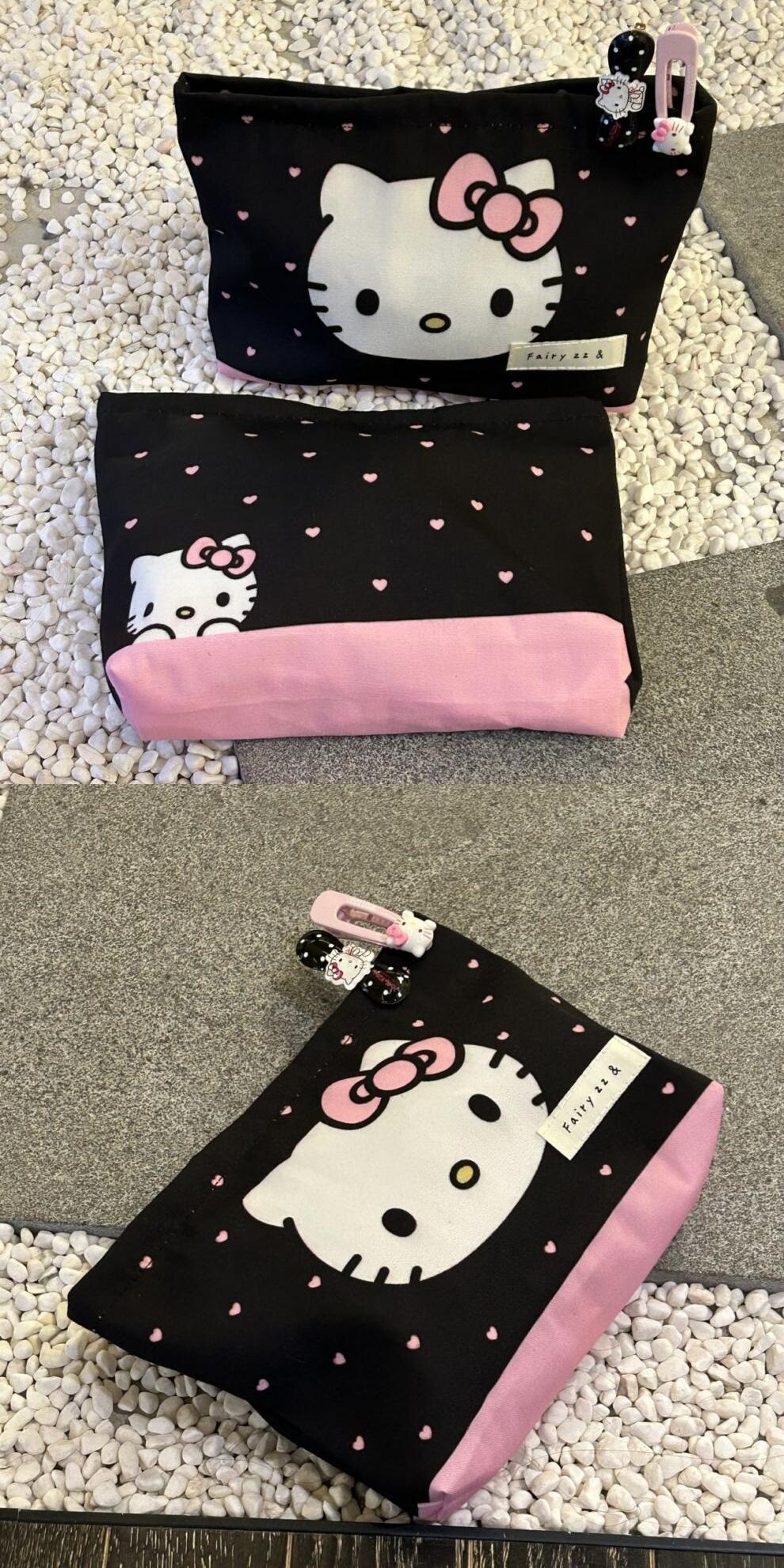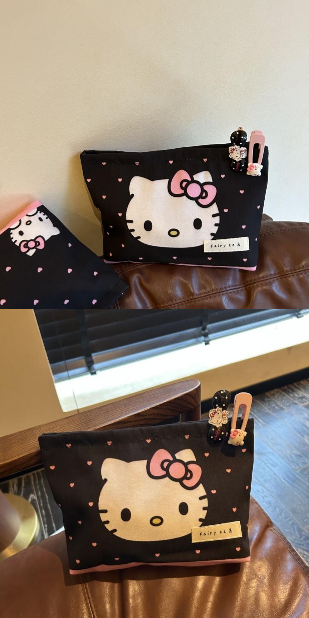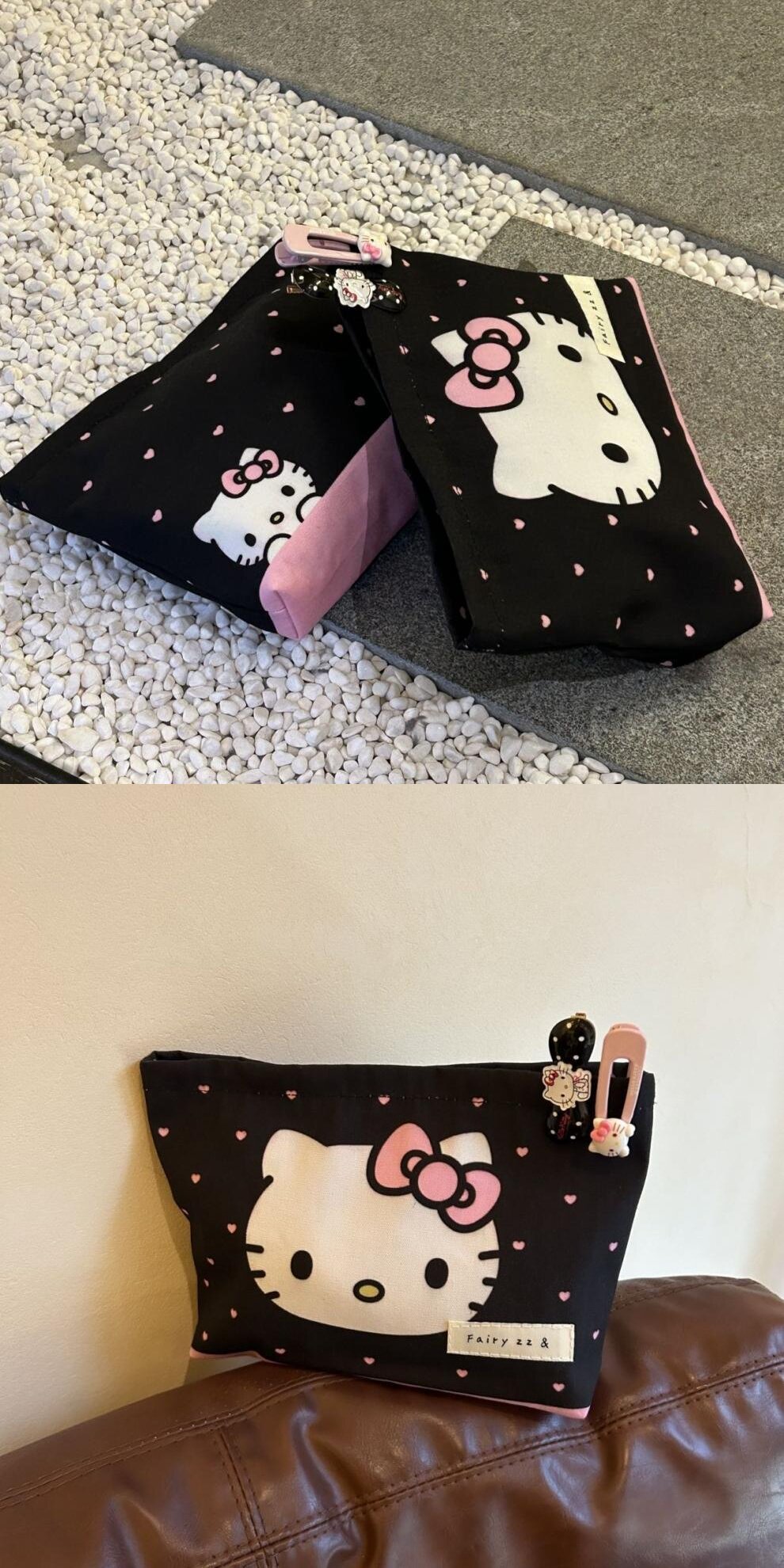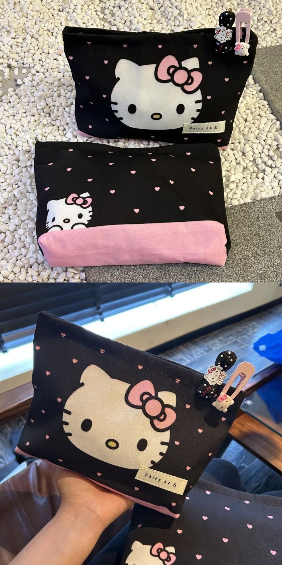 Cute Sweetheart Hello Kitty Large Capacity Toiletry Bag Handheld Portable Storage Bag for Earphones and Coin Purse