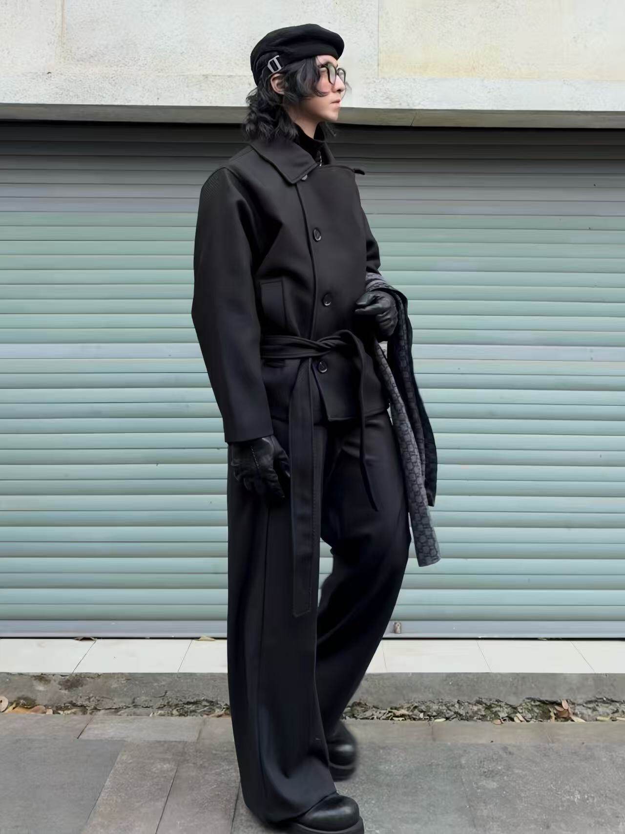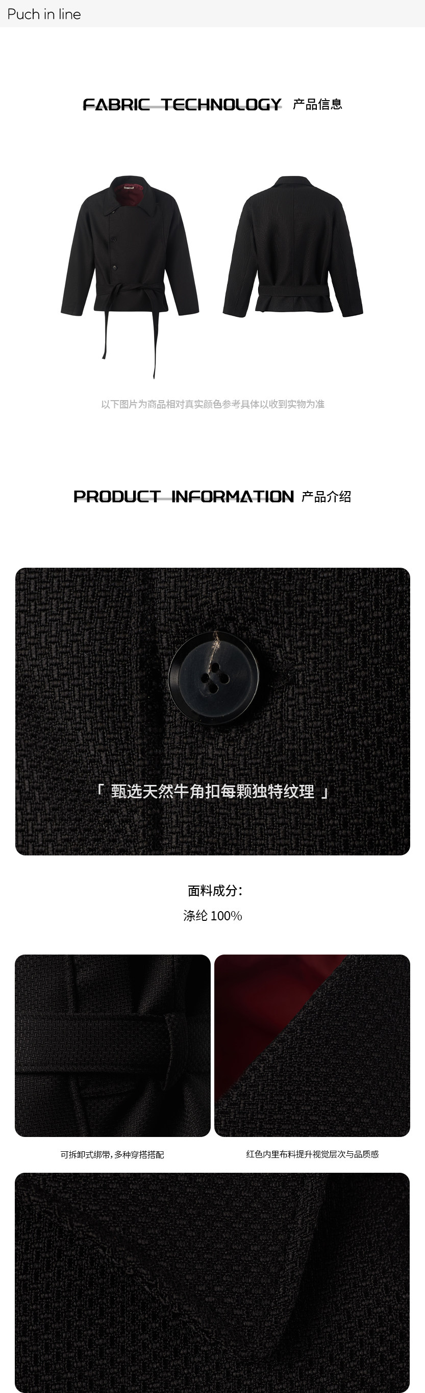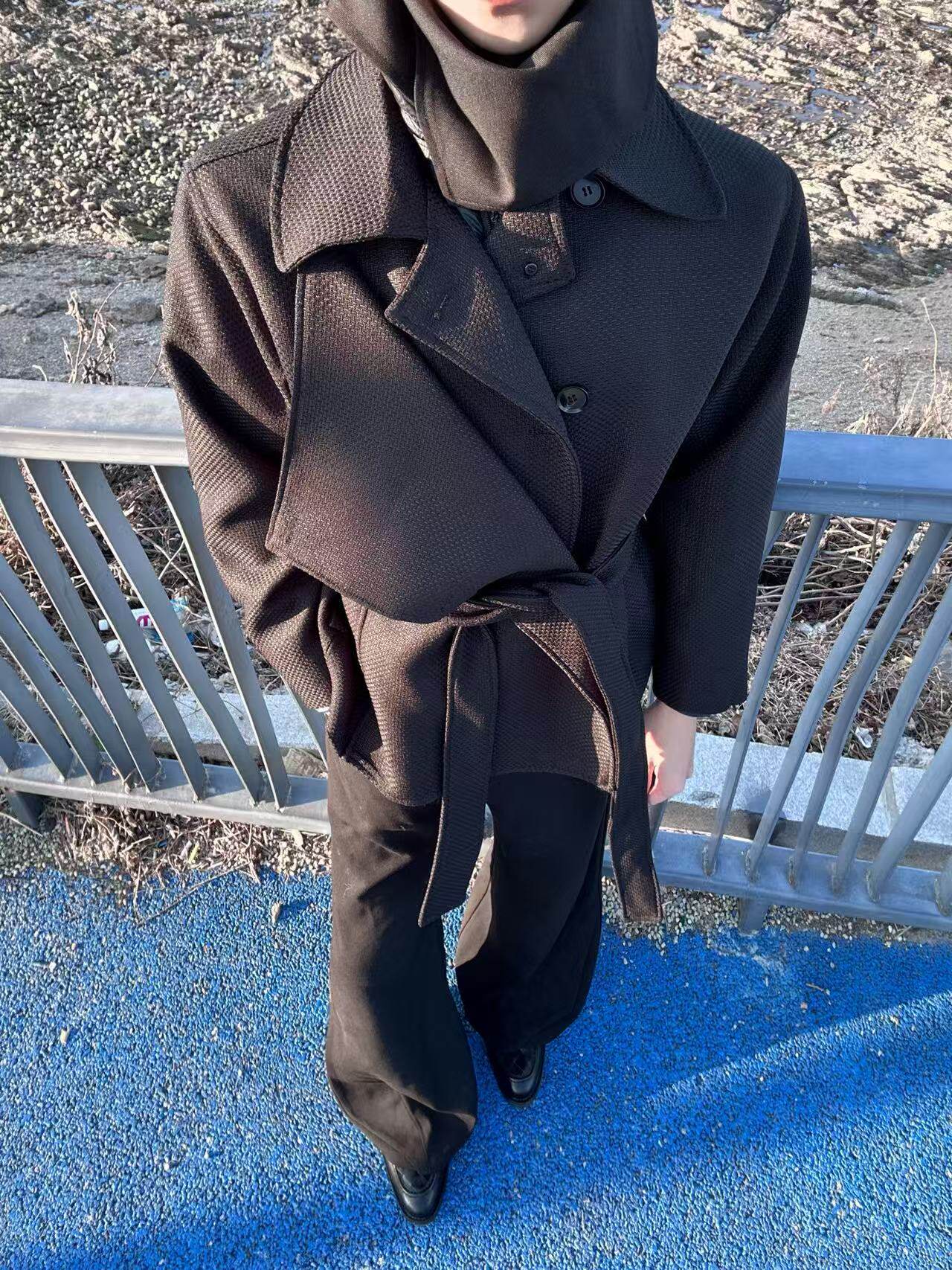 Puch in Line Three-Dimensional Loose-Fitting Double-Breasted Short Trench Coat with Multi-Shaped Design