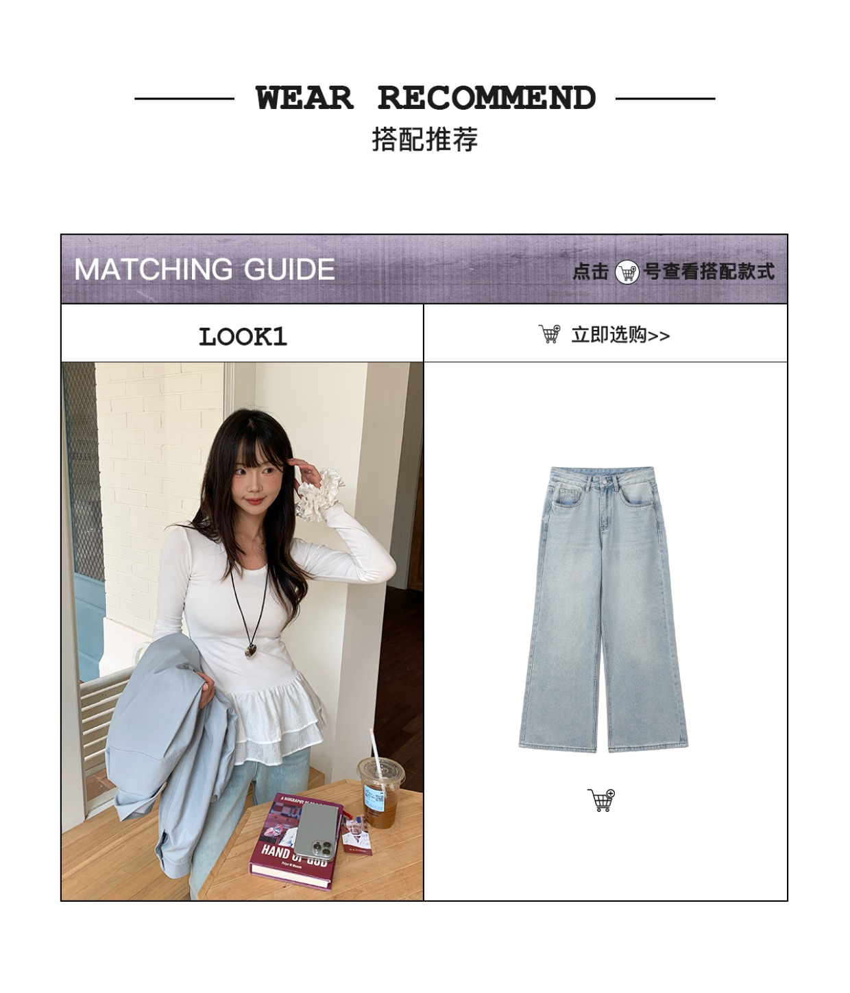 Ana Treasure Jenny Lyocell Tencel Lace Hem Butt-Covering Patchwork Long-Sleeve Base Shirt for Girls, Korean Style Outfit