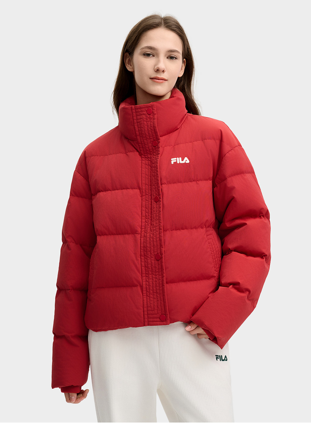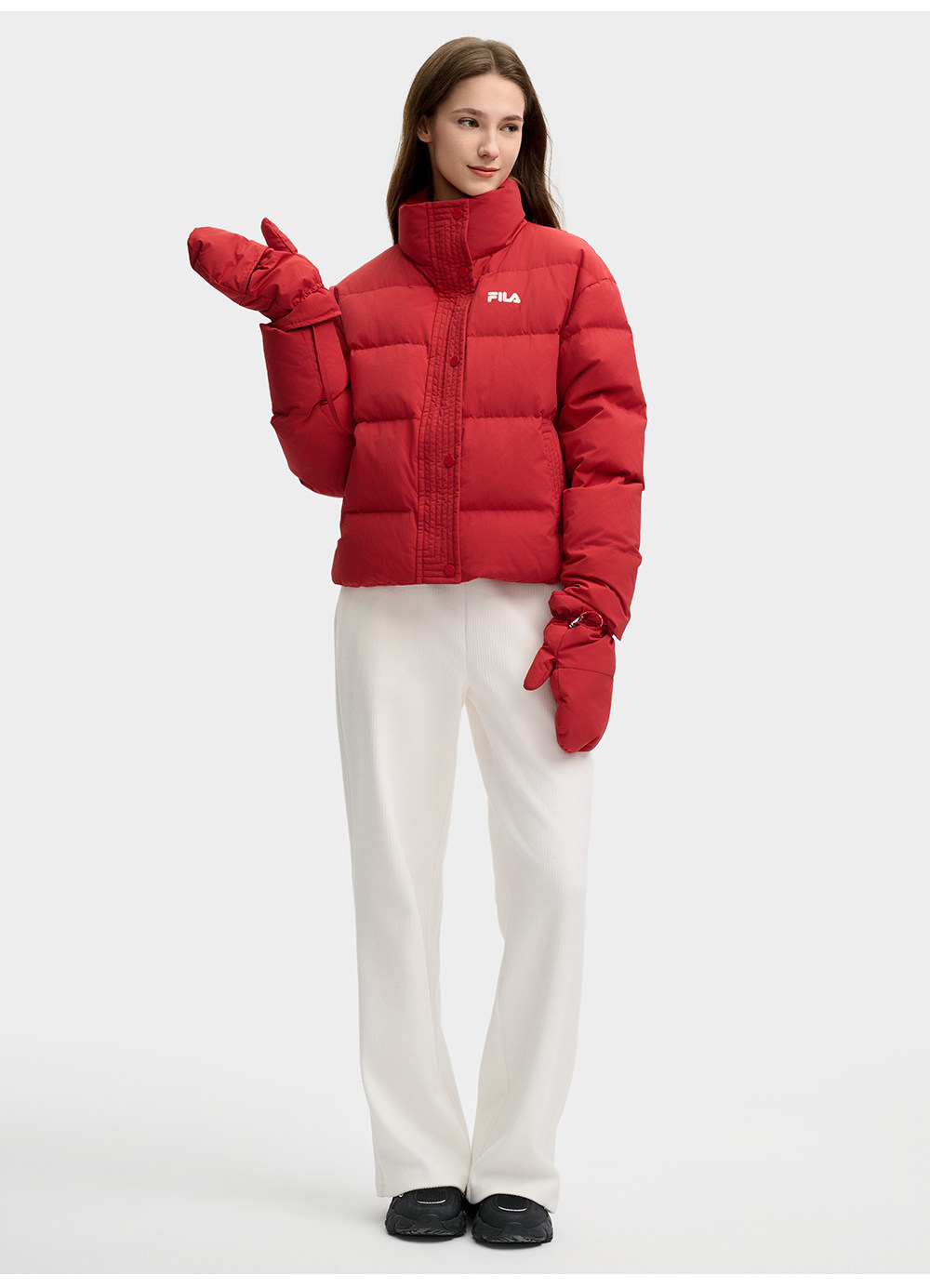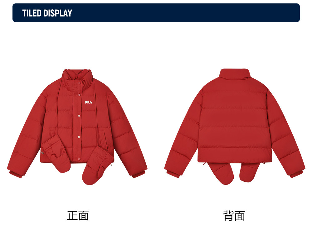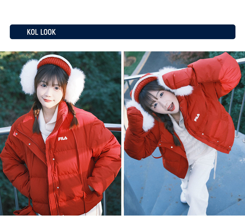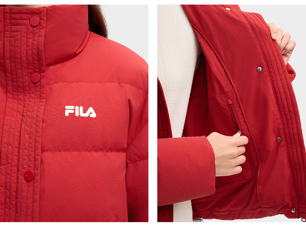 Fila Women's down Jacket Spring New Year Style Fashionable Casual Comfortable Red Warm Jacket with Gloves