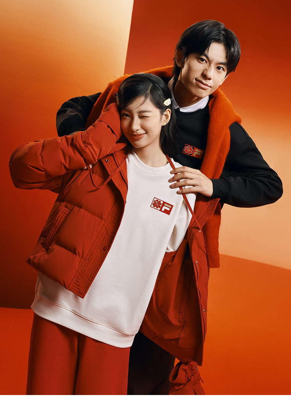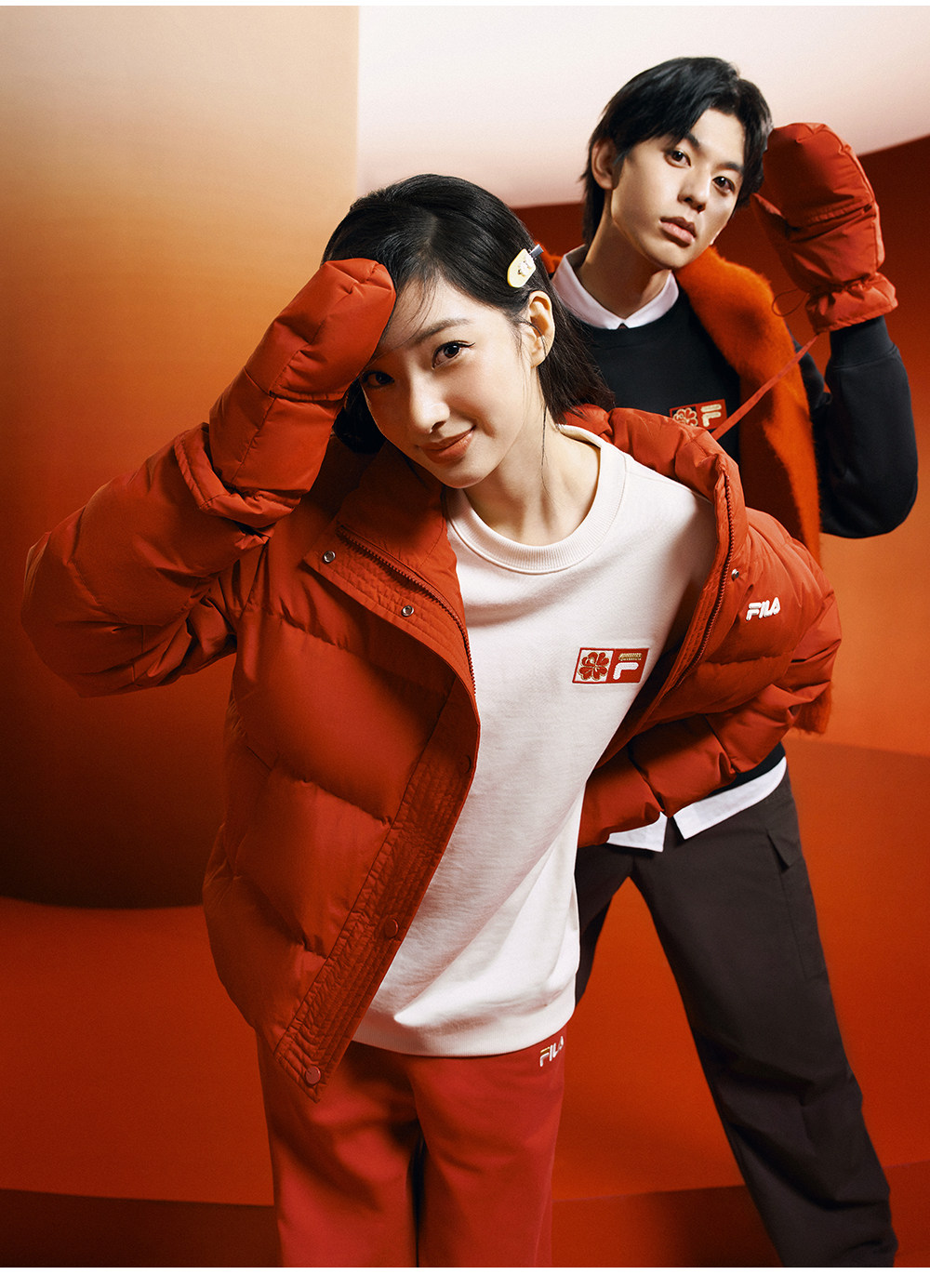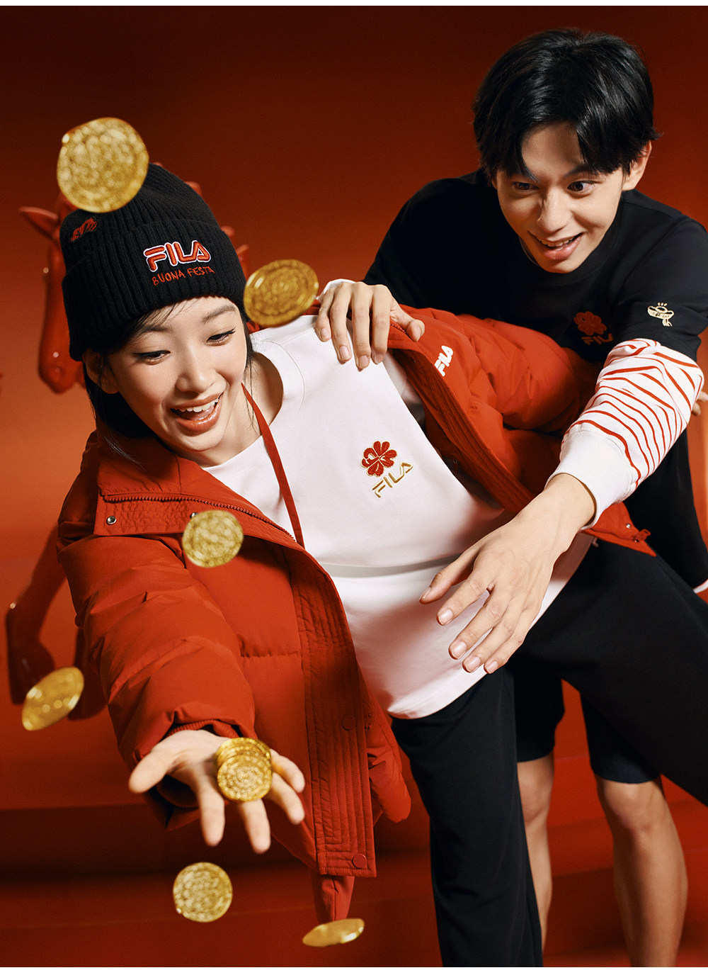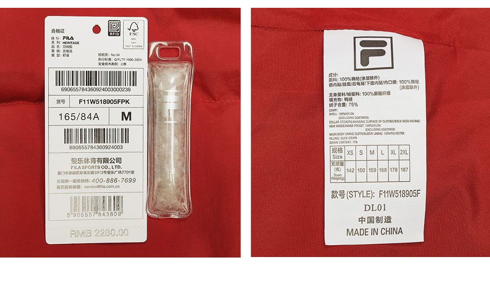 Fila Women's down Jacket Spring New Year Style Fashionable Casual Comfortable Red Warm Jacket with Gloves