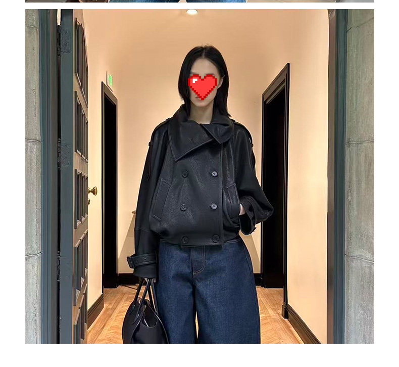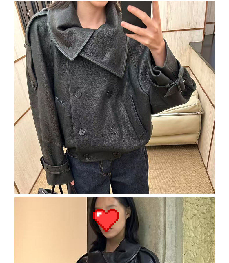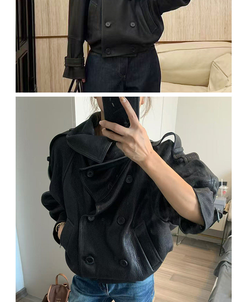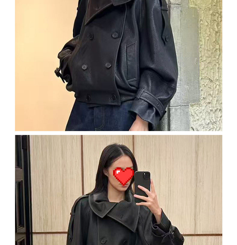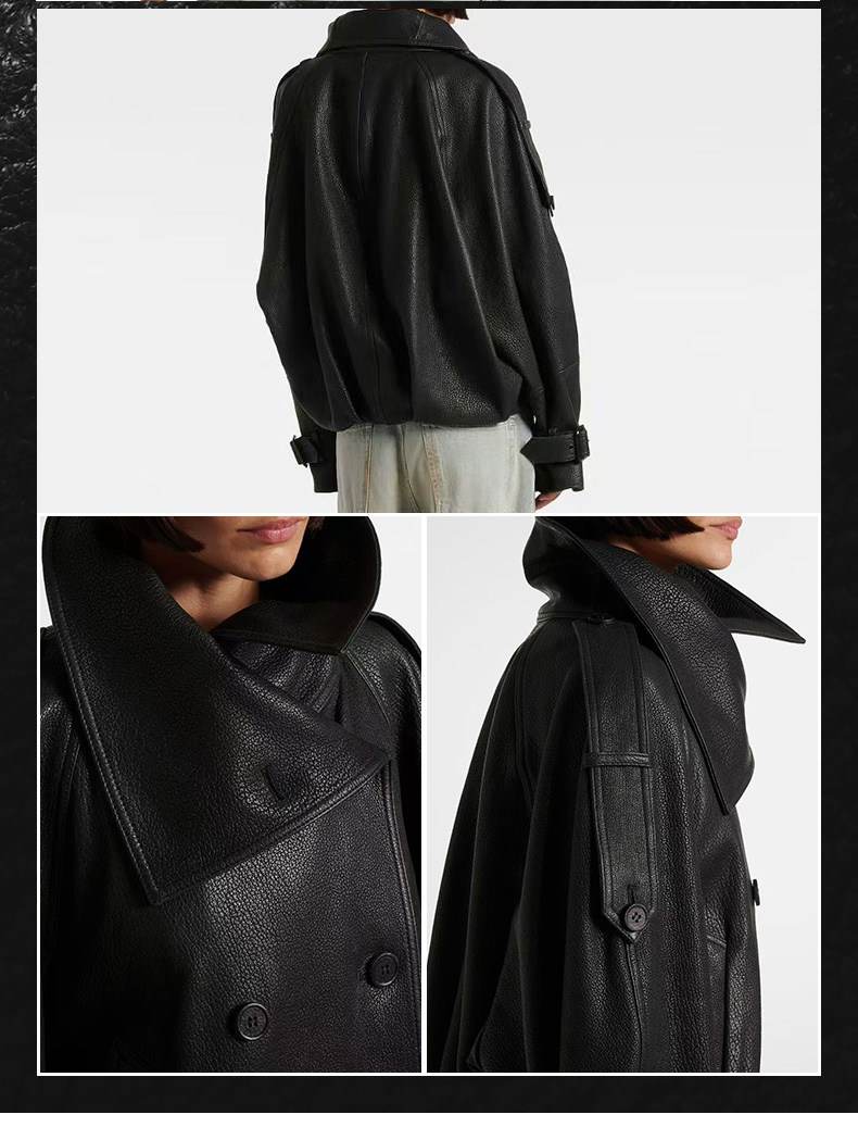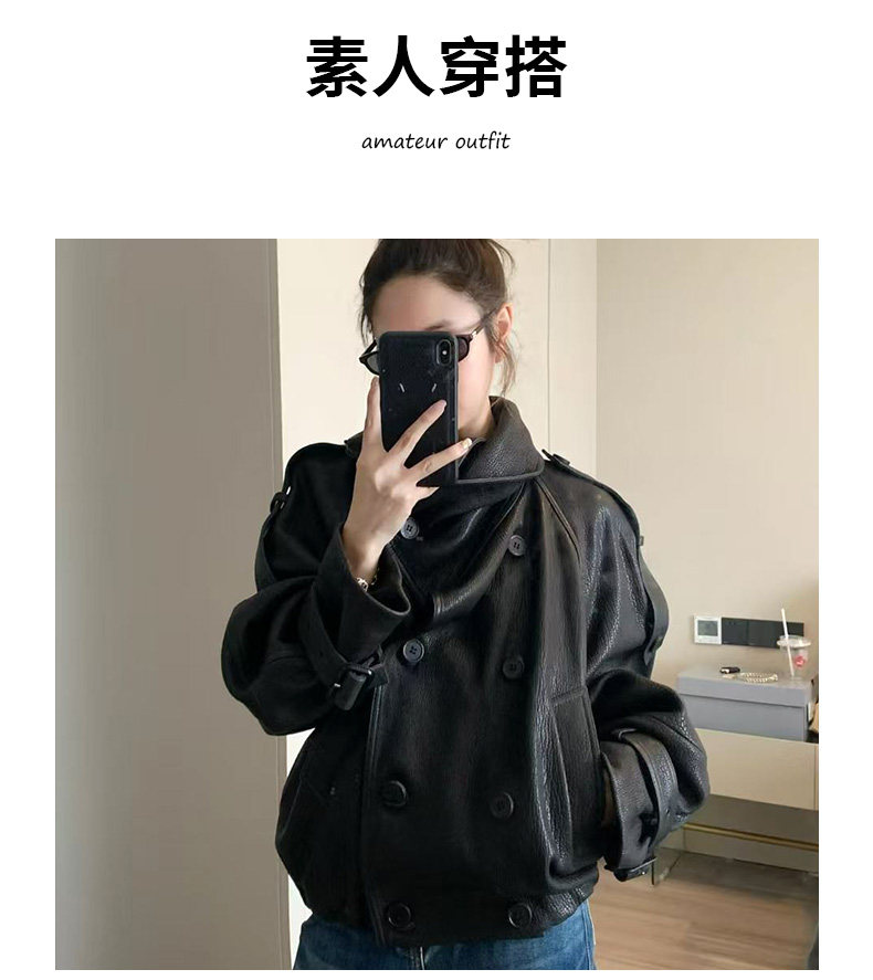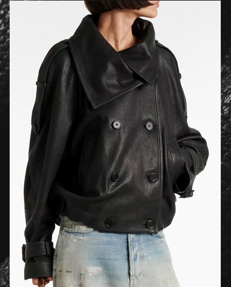 Ac's New 2025 Genuine Leather Jacket for Women, Popular Style, Casual Loose Double-Breasted Cool and Stylish Short Coat