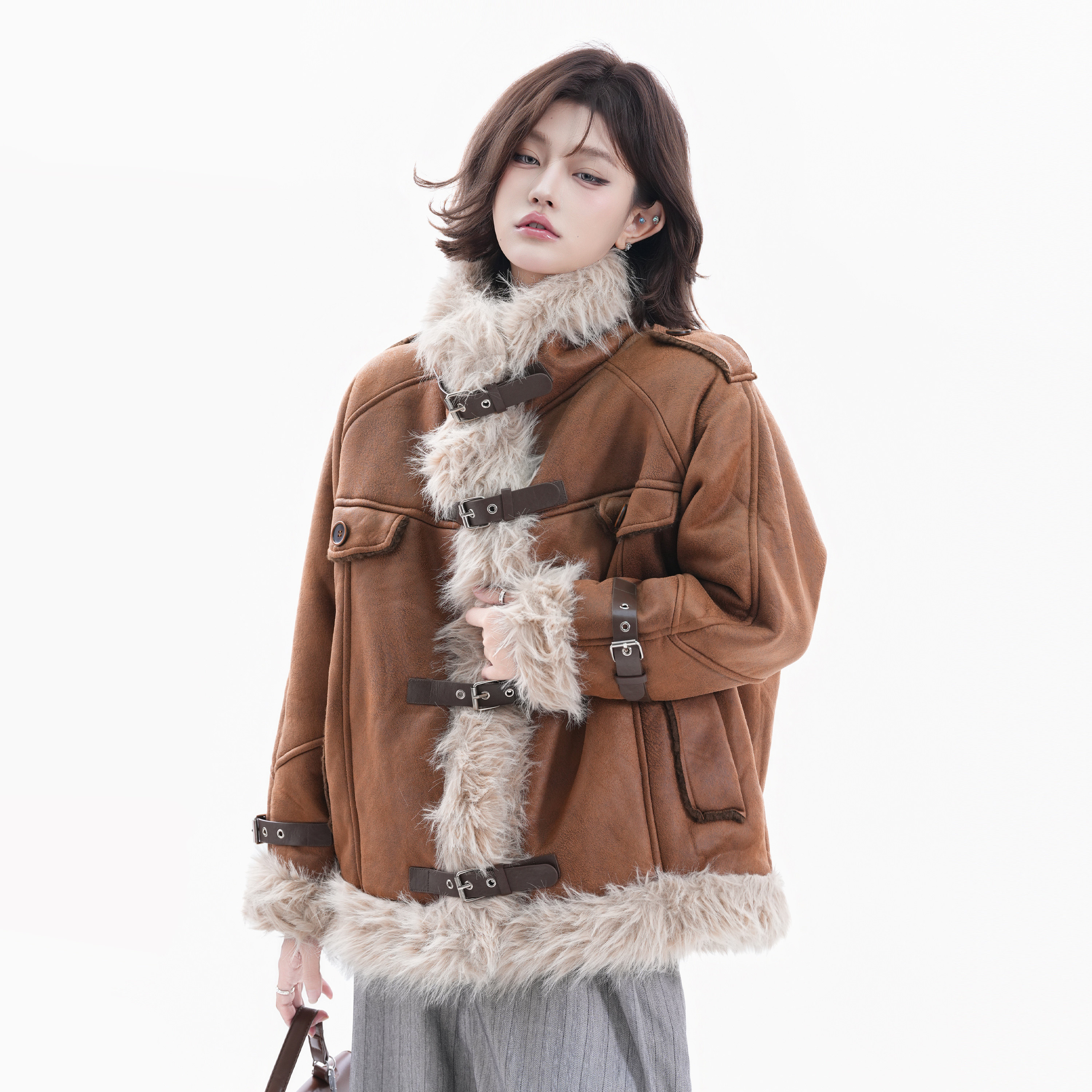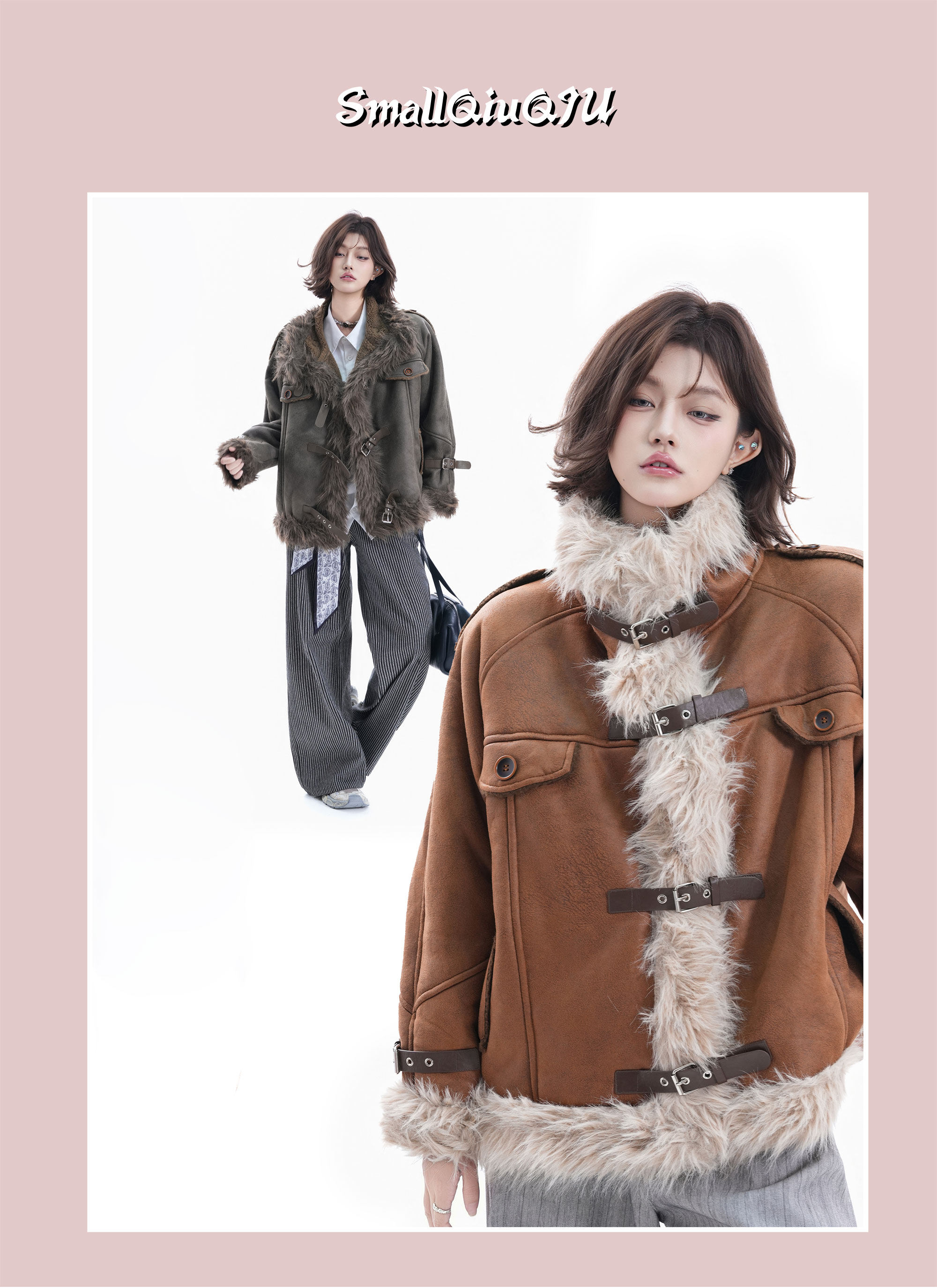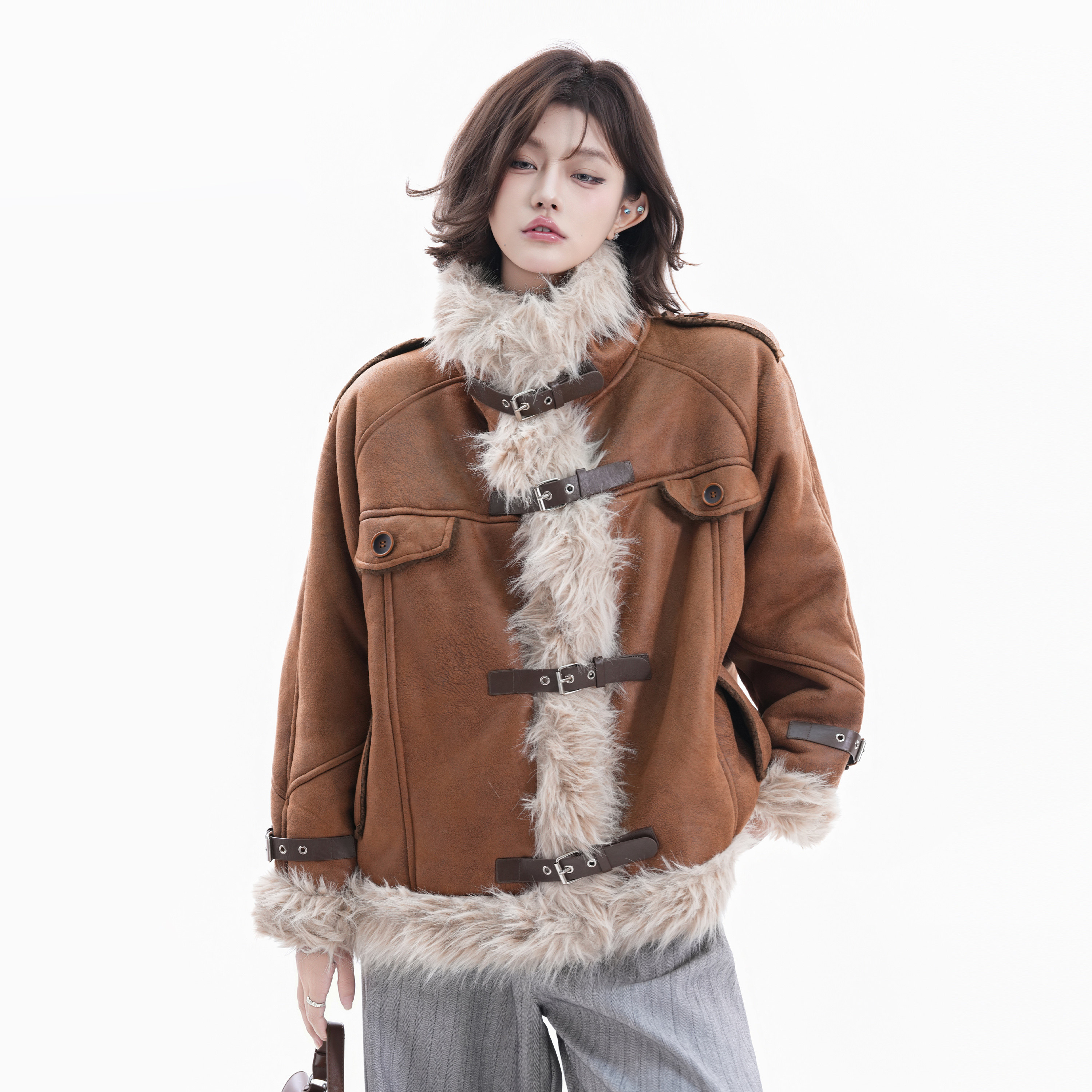 Small Ball Fur Integrated Coat for Women, Winter Retro Hong Kong Style Cotton Jacket, Warm, Slimming, Lazy and Versatile Top