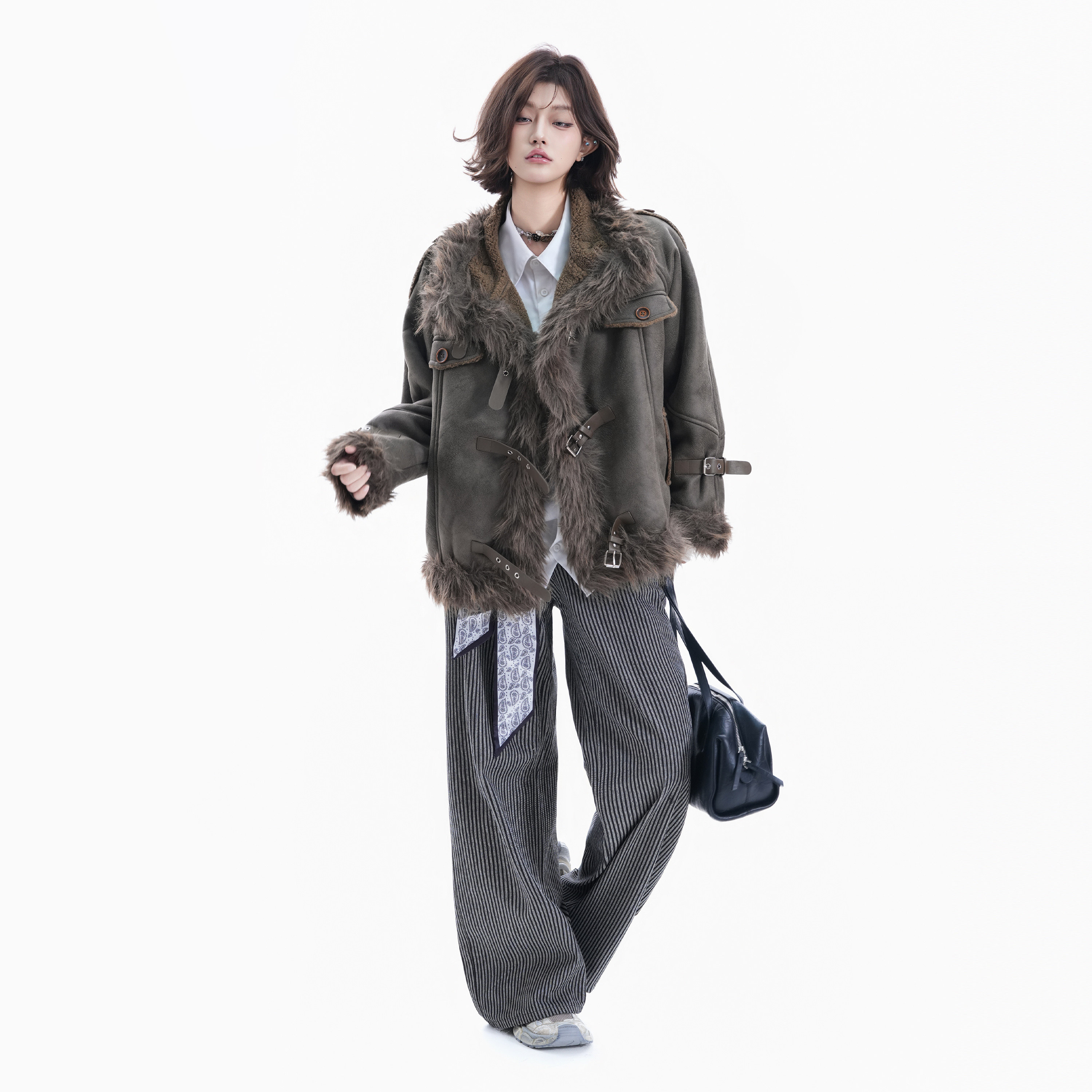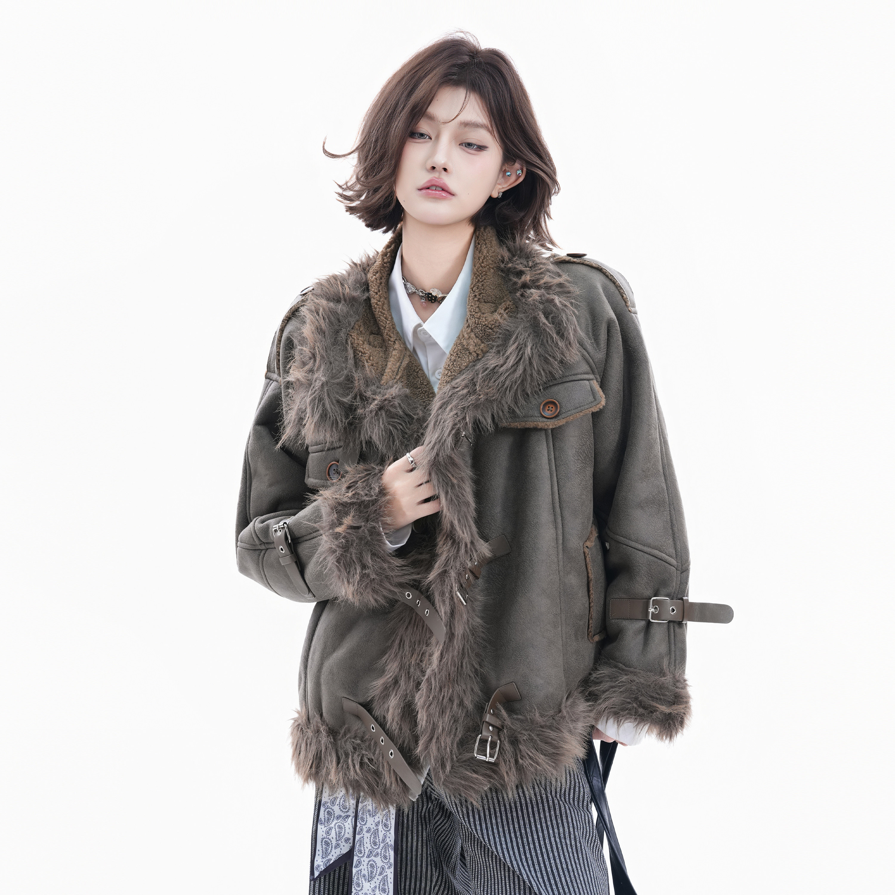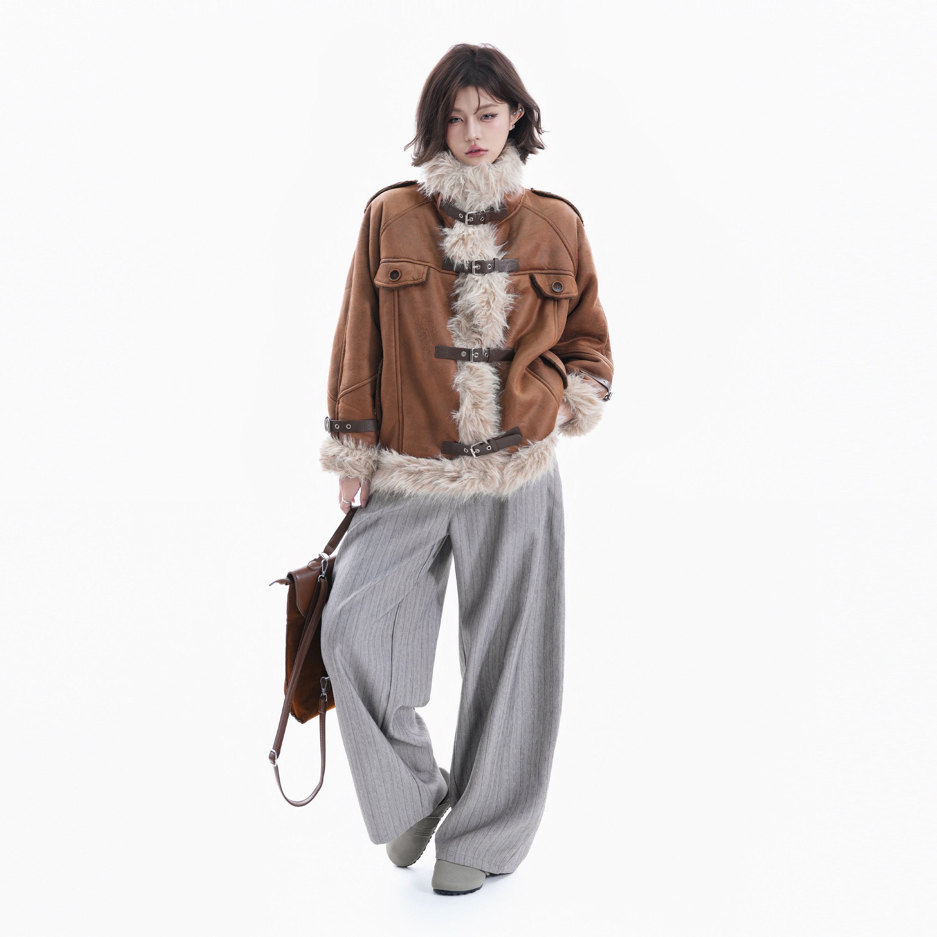 Small Ball Fur Integrated Coat for Women, Winter Retro Hong Kong Style Cotton Jacket, Warm, Slimming, Lazy and Versatile Top