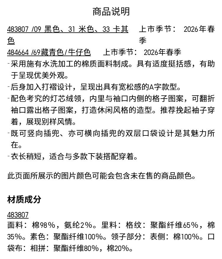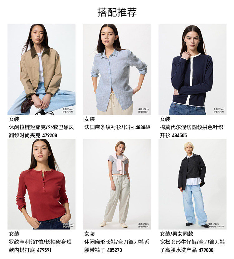 Uniqlo Women's Casual Short Jacket/Barn Style Jacket 26 Spring and Summer New Style 483807 484664