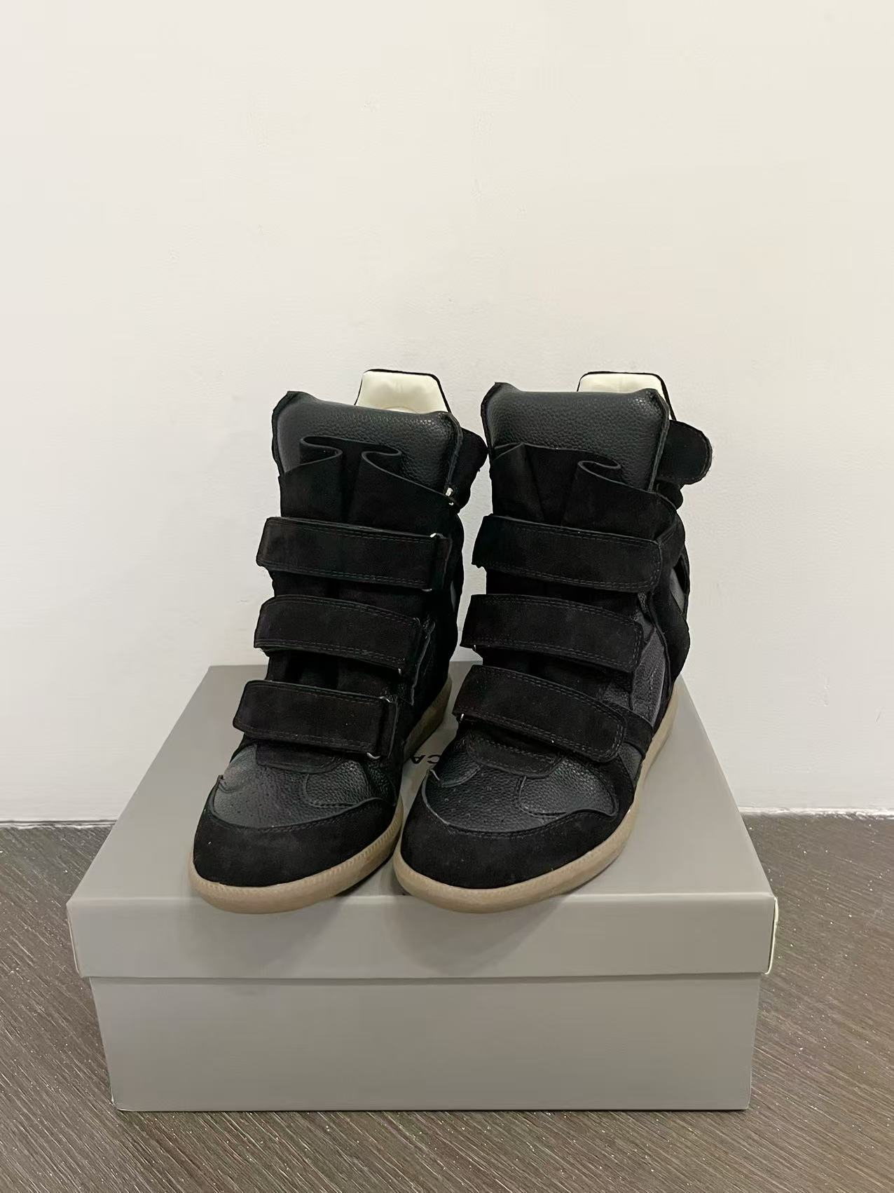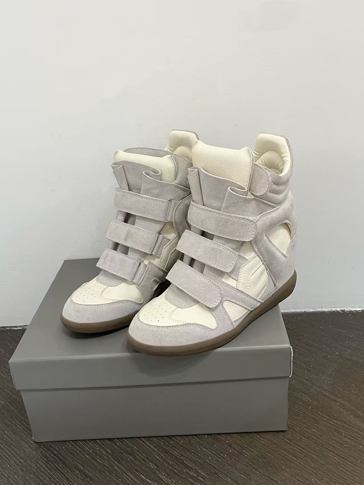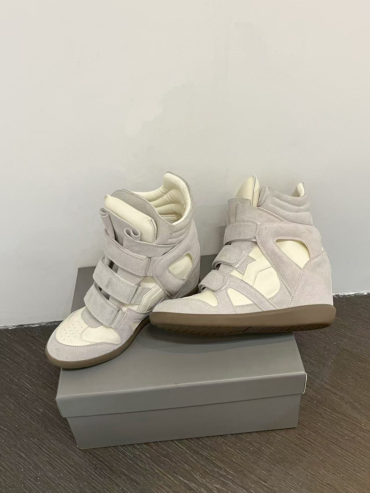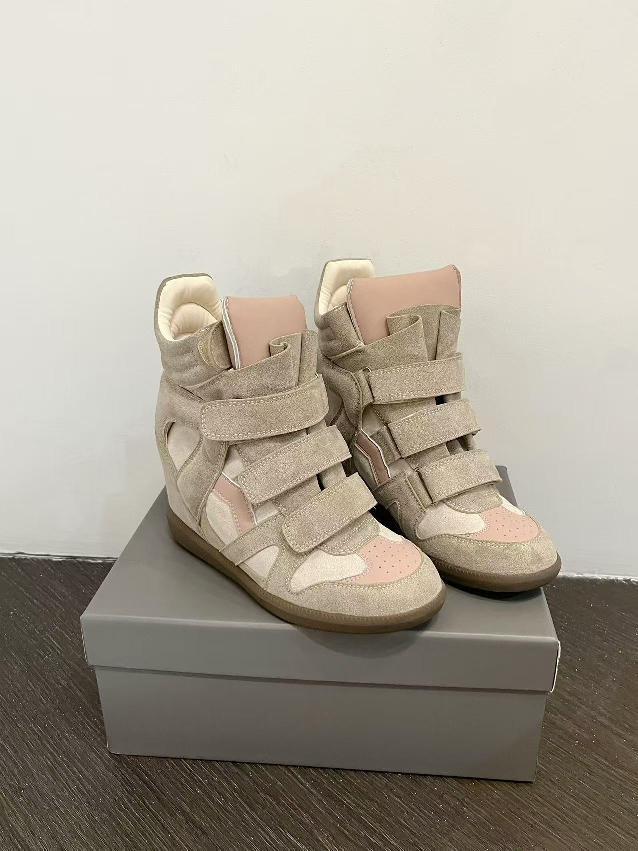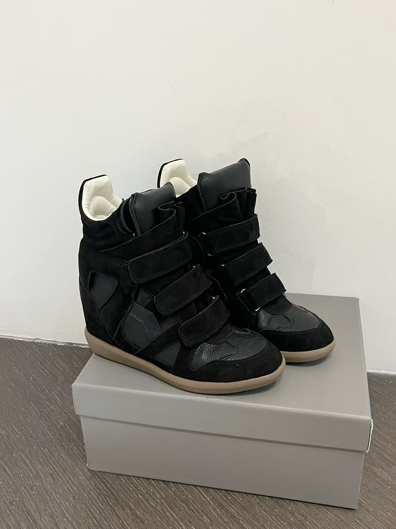 25 Autumn Leather Velcro Invisible Height Increase 8cm Wedge Color-Block Sports Casual Shoes Genuine Leather Martin Boots Trendy