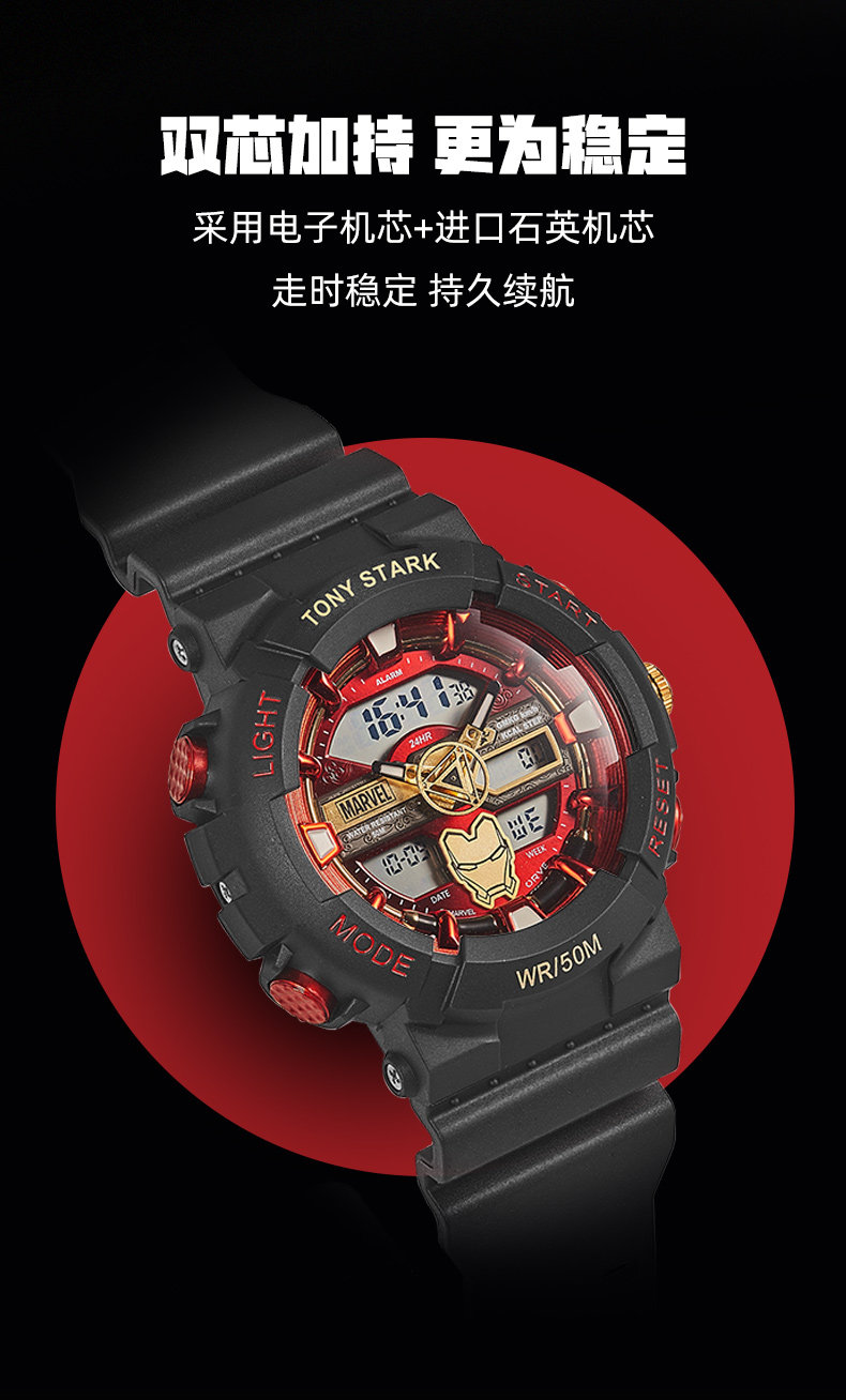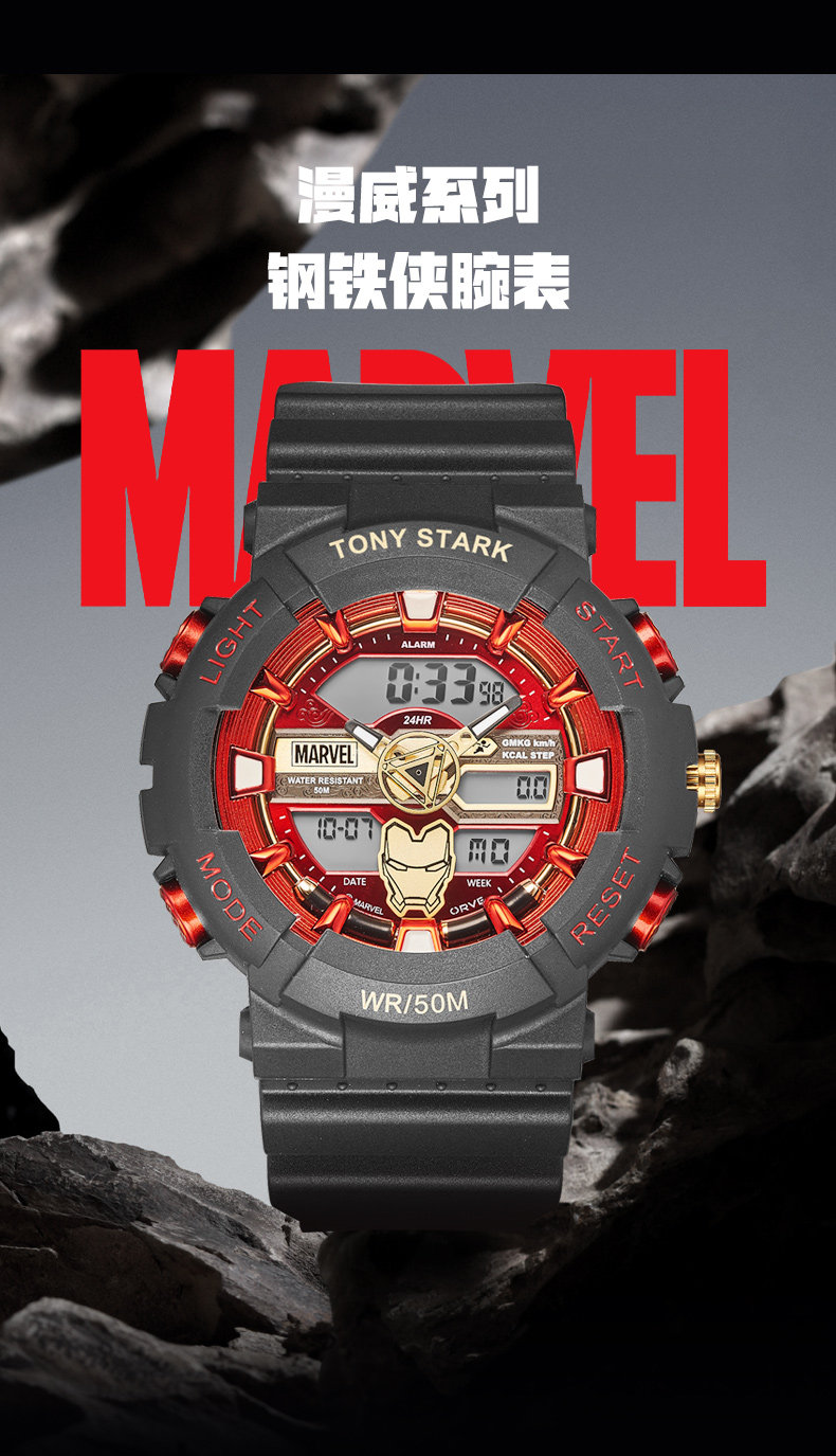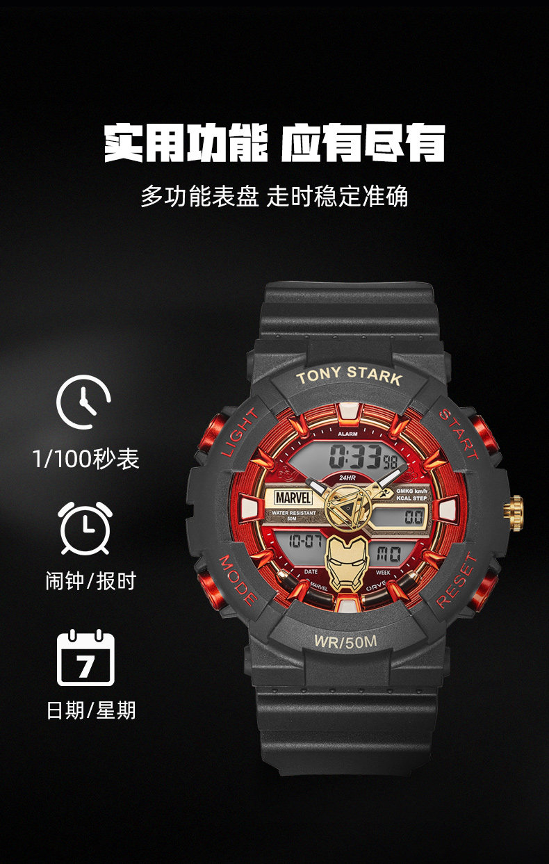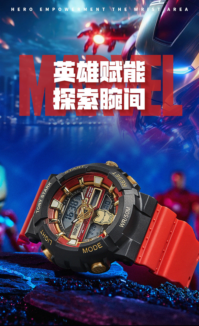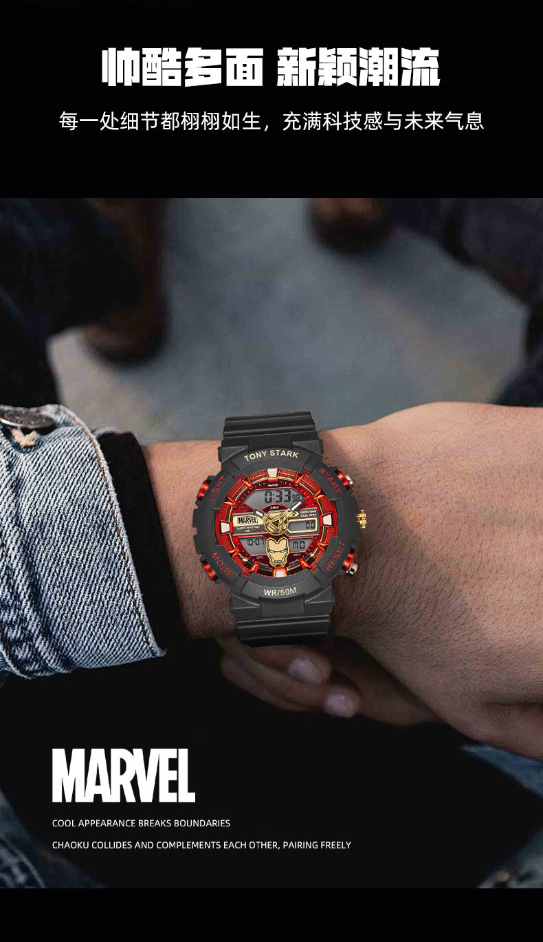 Marvel Co-Branded Watch for Kids, Boys, Elementary School Students, Teenagers, Middle School, High School, Men's Electronic Watch, Boys' Birthday Gift
