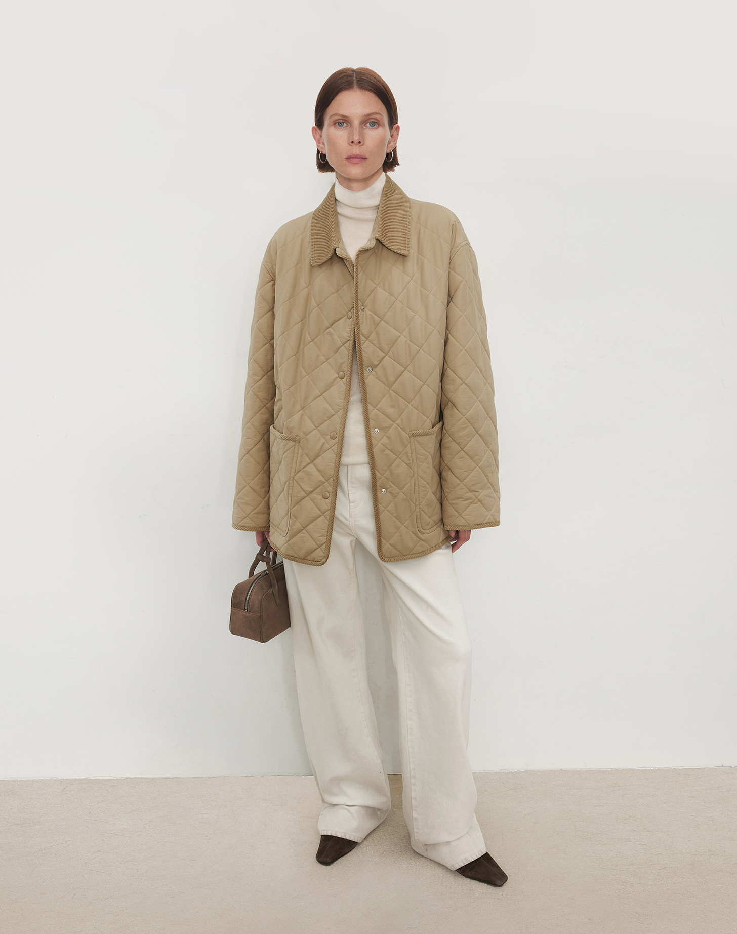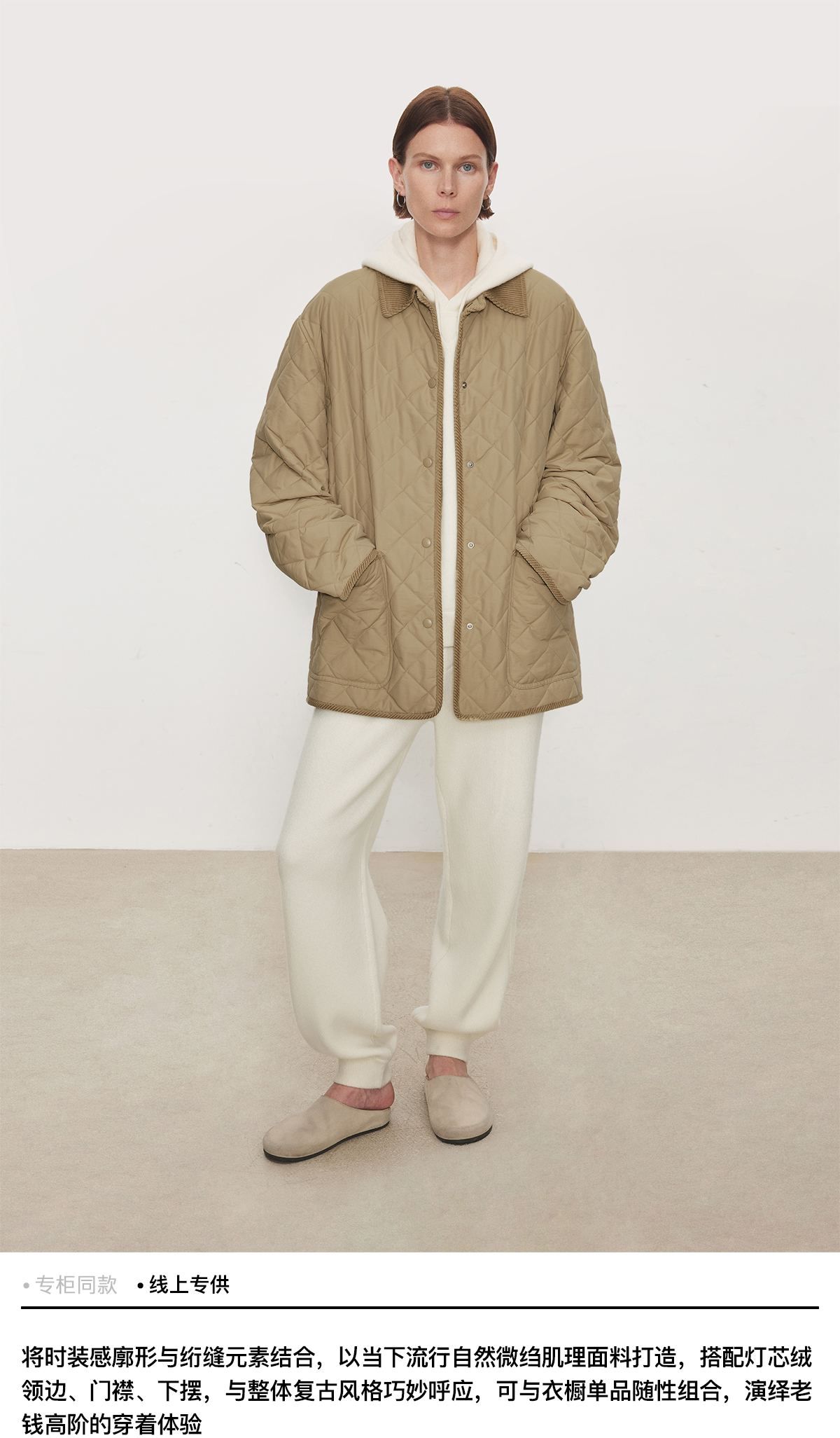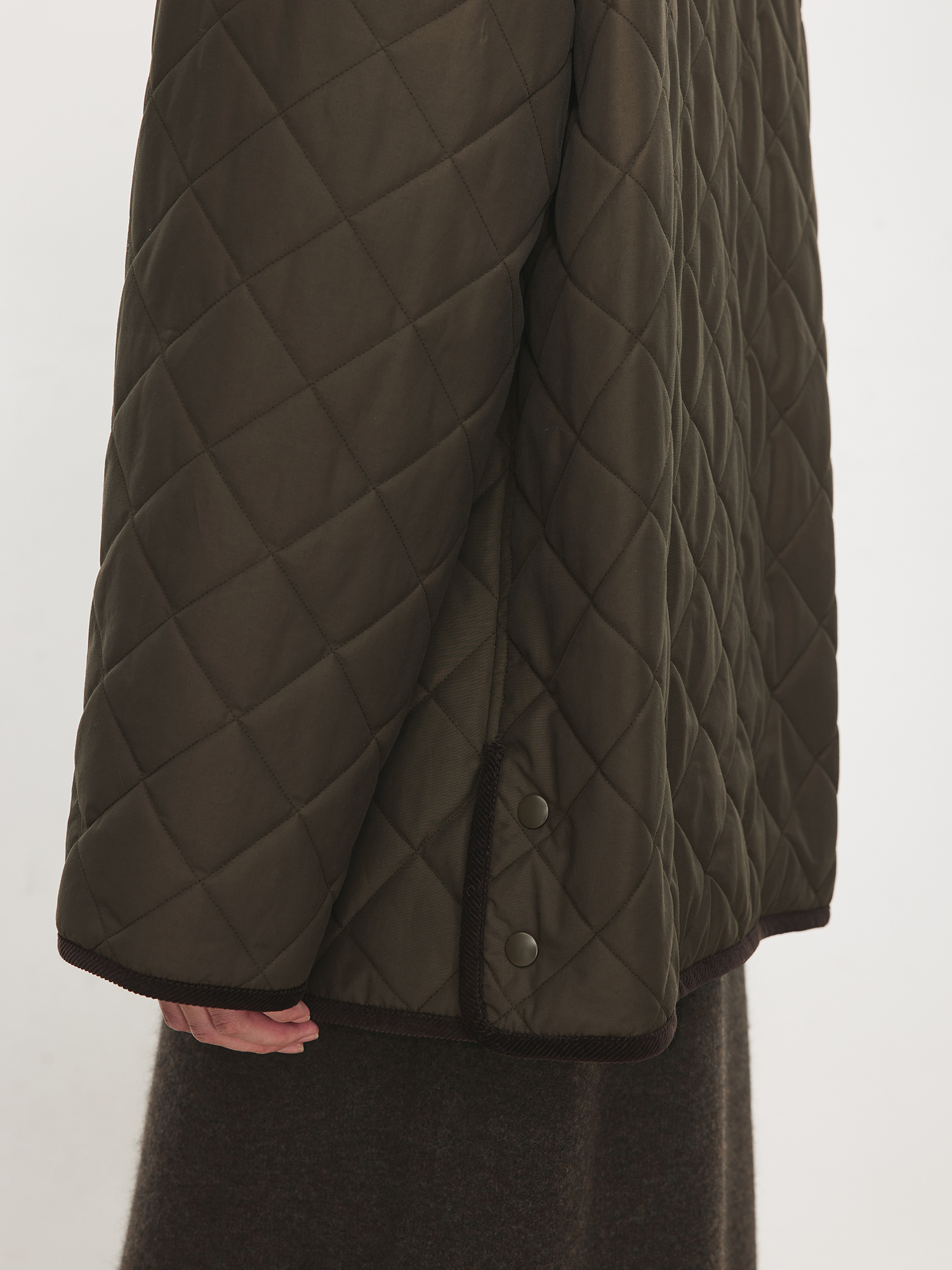 Chicjoc Italian-Style Micro-Crepe Long-Staple Cotton + Corduroy Collar Trim Barn Style Quilted Bias-Cut Jacket Cotton Coat