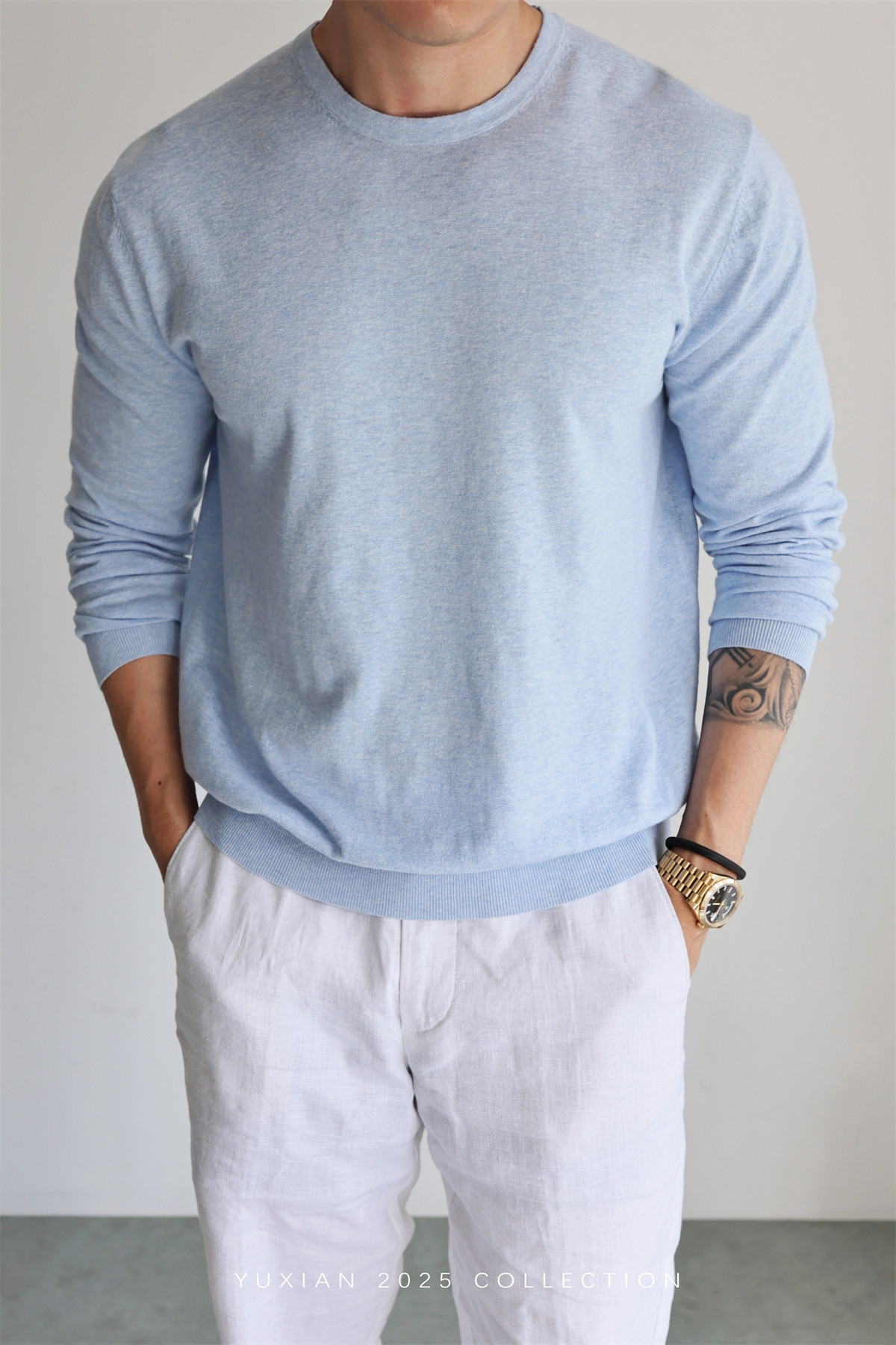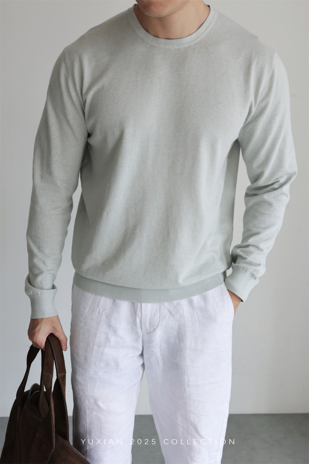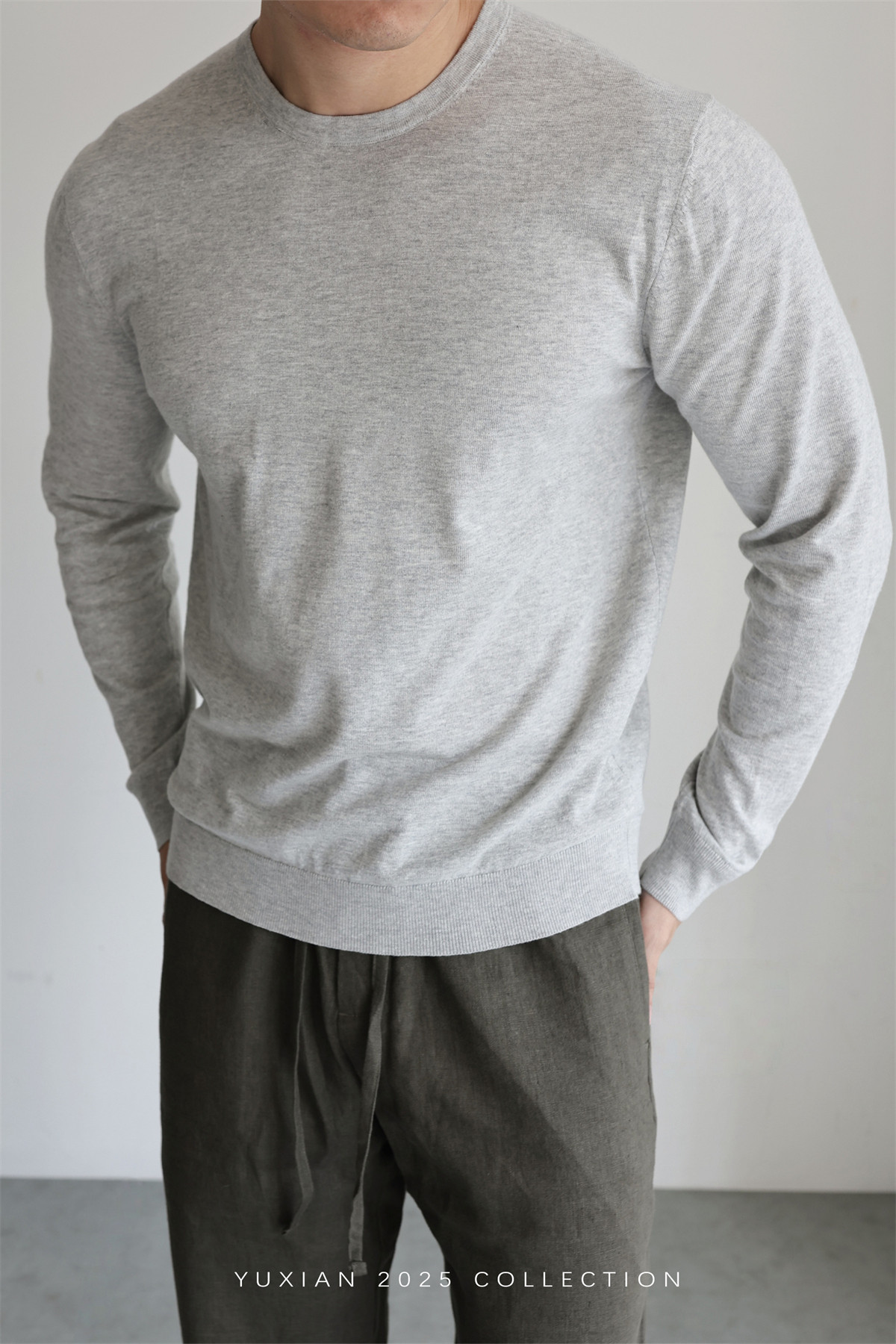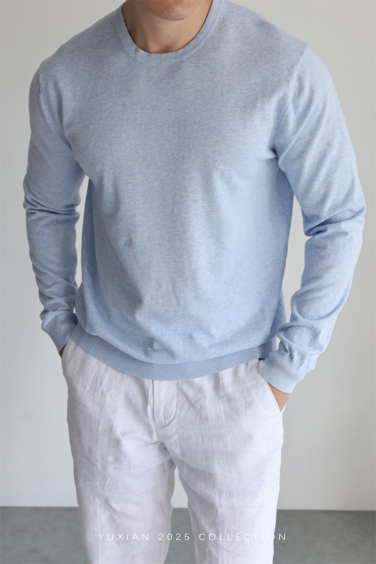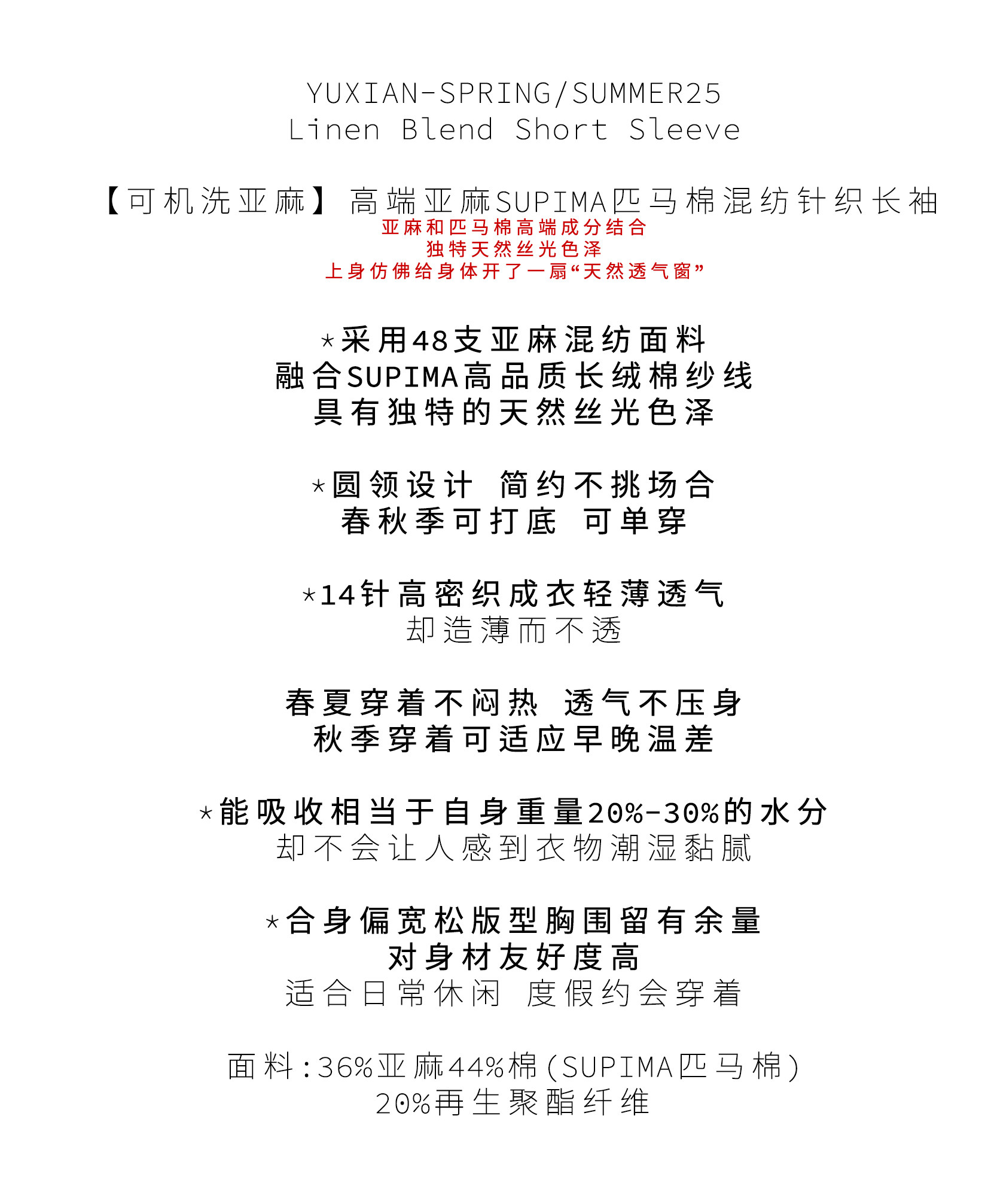 【Machine Washable Linen】Lightweight Linen Supima Cotton Blend Breathable Knit Long-Sleeve Casual Spring and Summer Wear