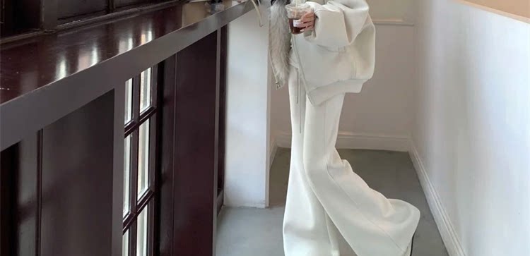 Hooded Fur Coat, Cotton Jacket, Wide-Leg Pants Two-Piece Set for Women, Winter Loose Fit, Age-Reducing, High-End, Super Stylish Outfit for Women