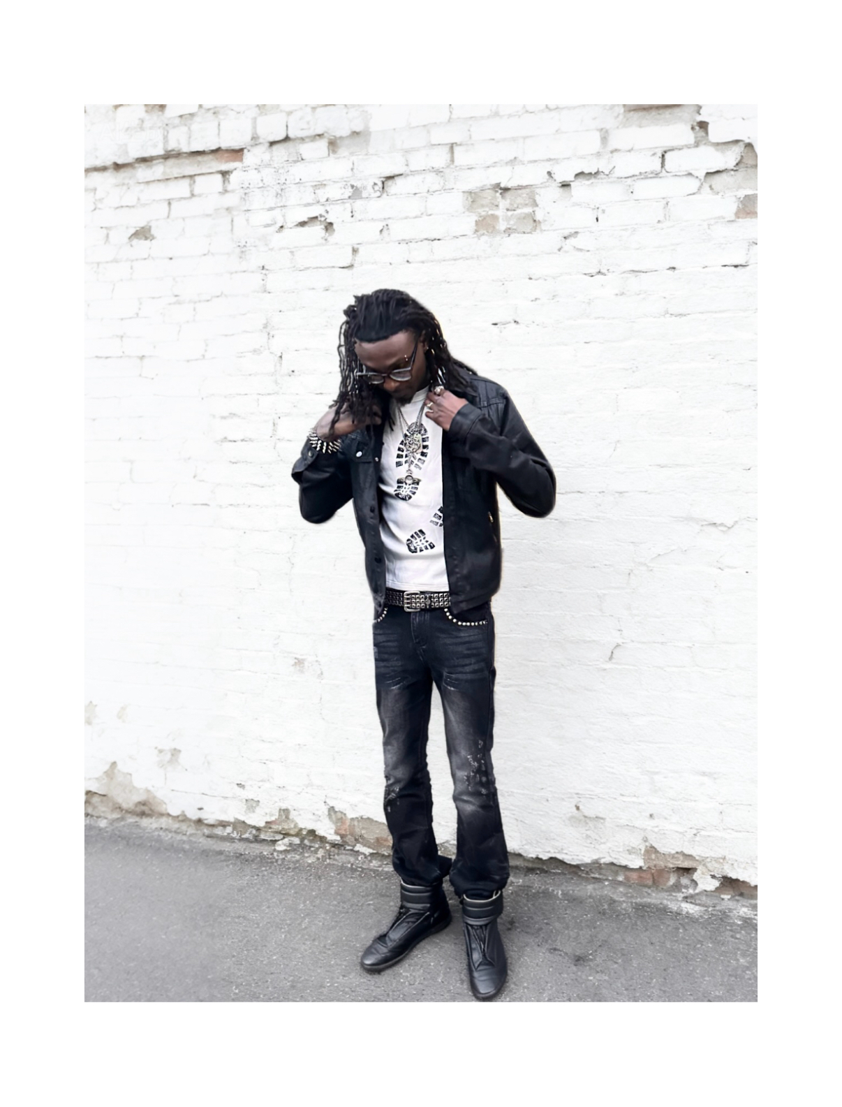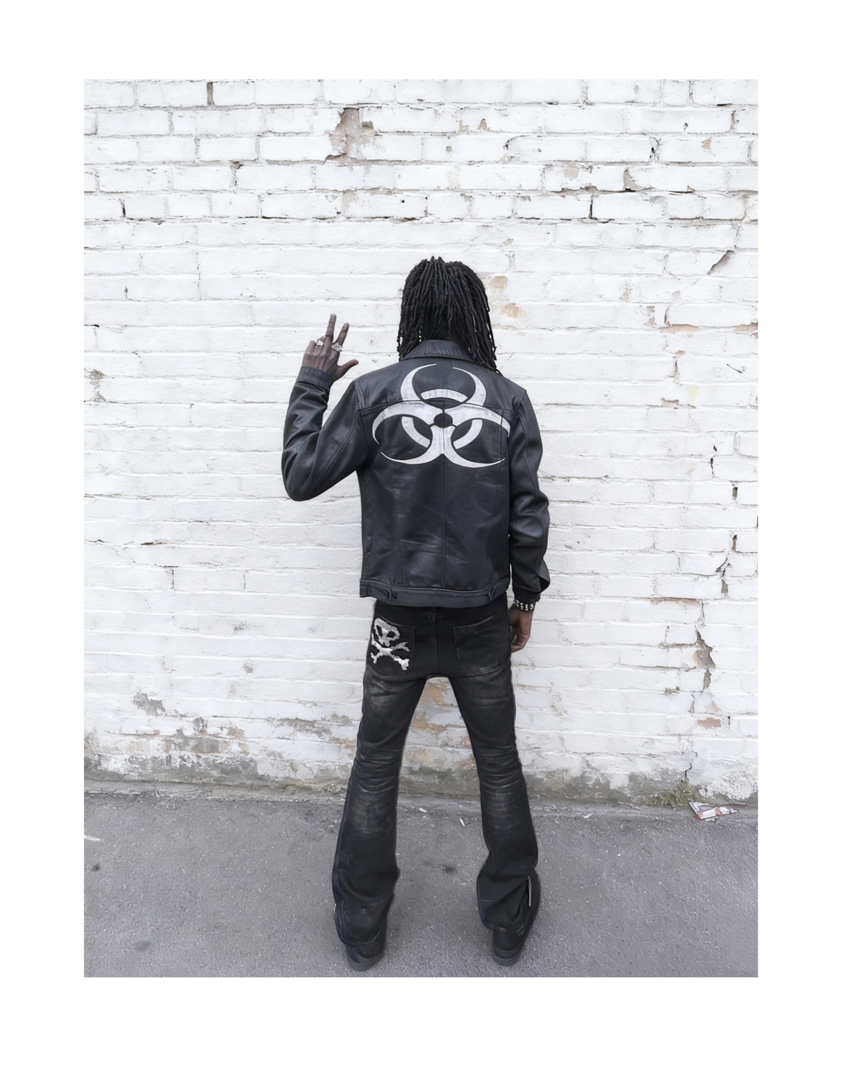 3grepublic Australia Genuine Brush Wax Heavy weight Print Denim Leather Jacket type3 jacket Trendy Visual Street