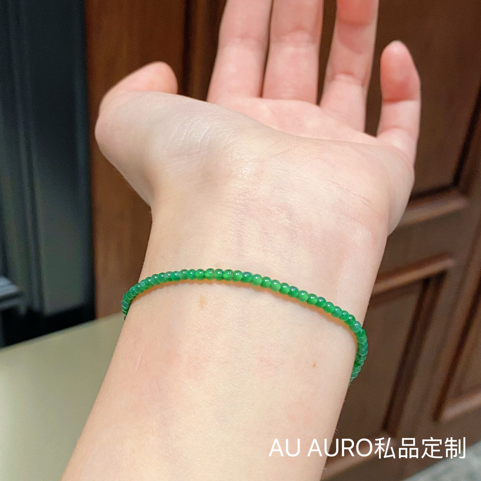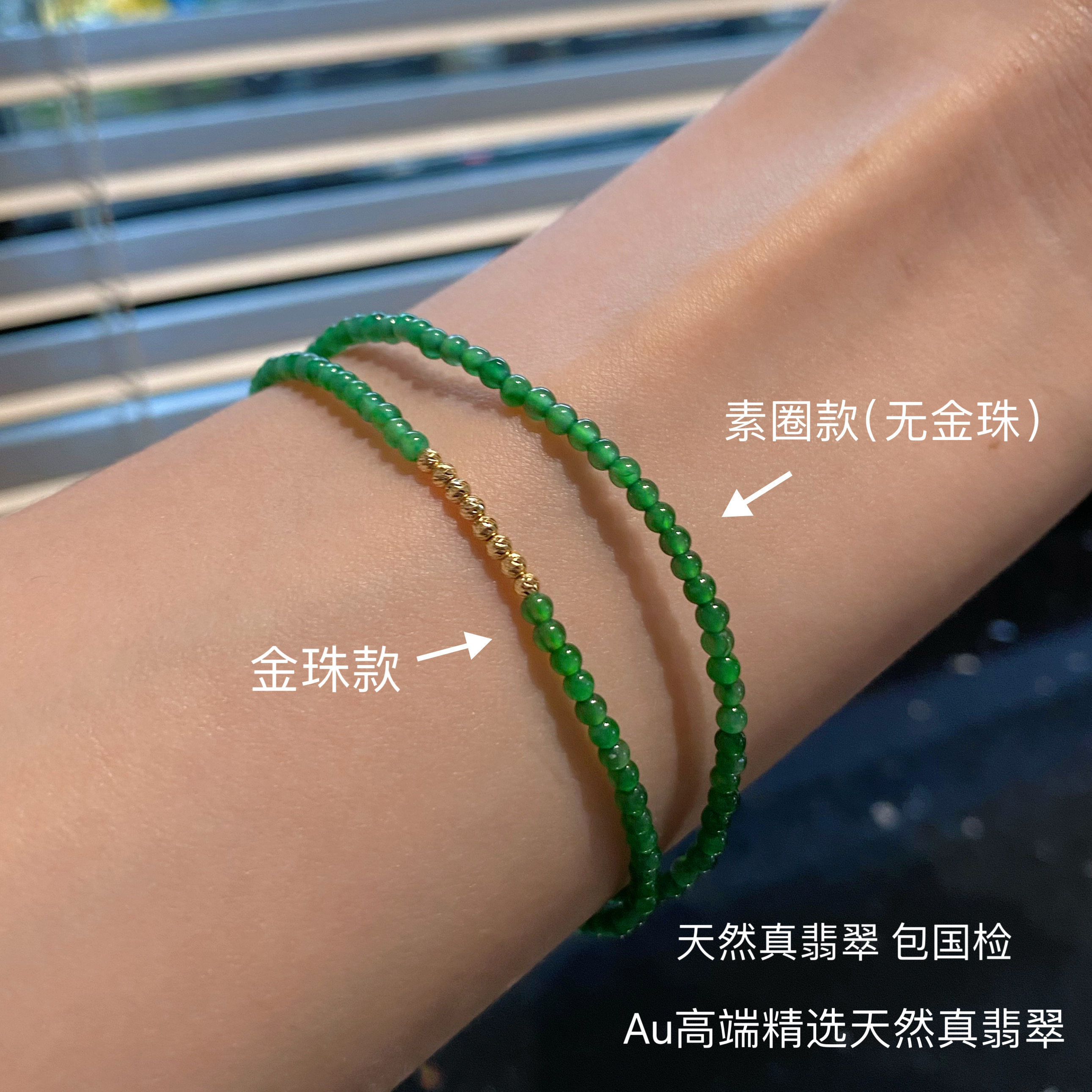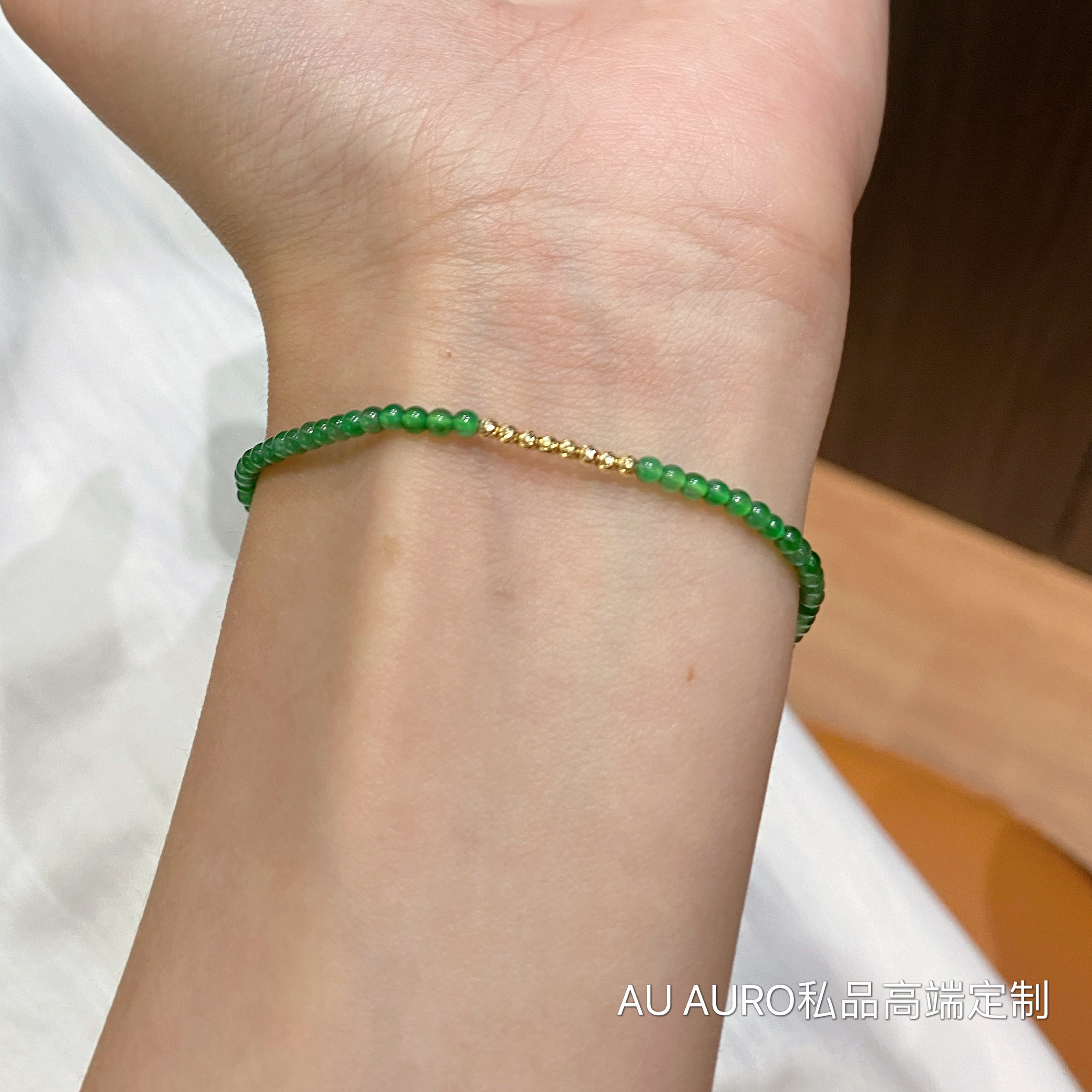 Au Natural Jadeite Hot Green Bracelet with 18K Real Gold Beads, High-End Jewelry