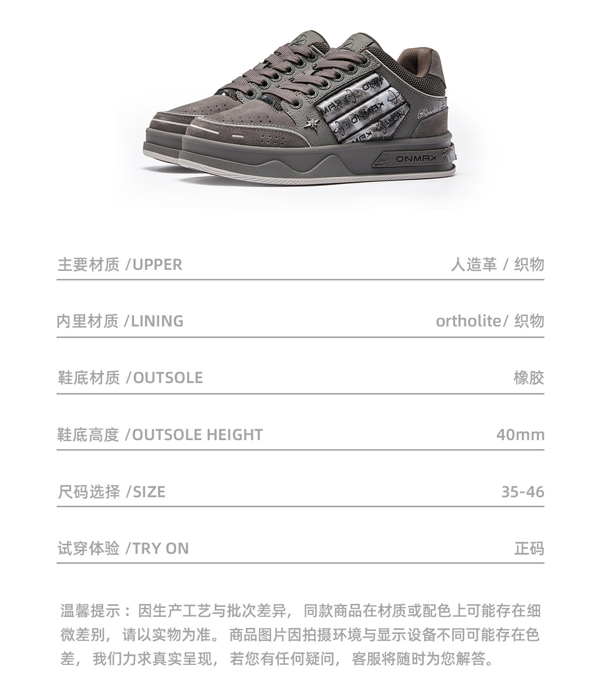 Fan Chengcheng's Same Style 2026 New Model Onmax Small Sailboat Gray Pigeon Enhanced Brand Thick-Soled Sports Winter Sneakers for Men