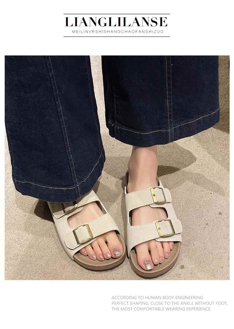 Retro Birkenstock Slippers for Women, Summer Outerwear, Pregnant Women, Fat Mm, Wide Feet, Soft Flat Soles, Large Size 41 to 43, Beach Sandals