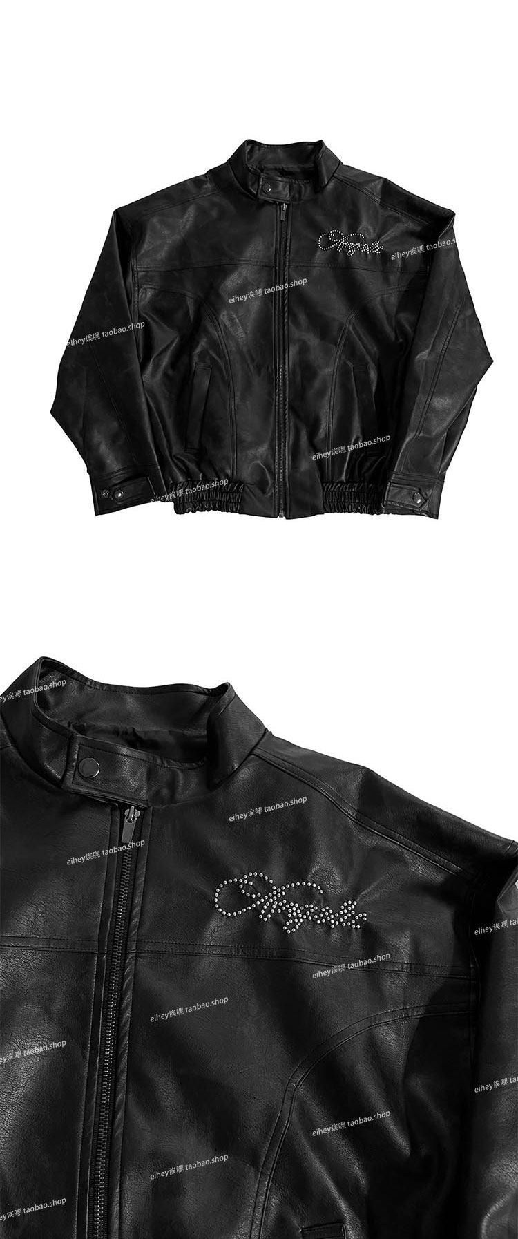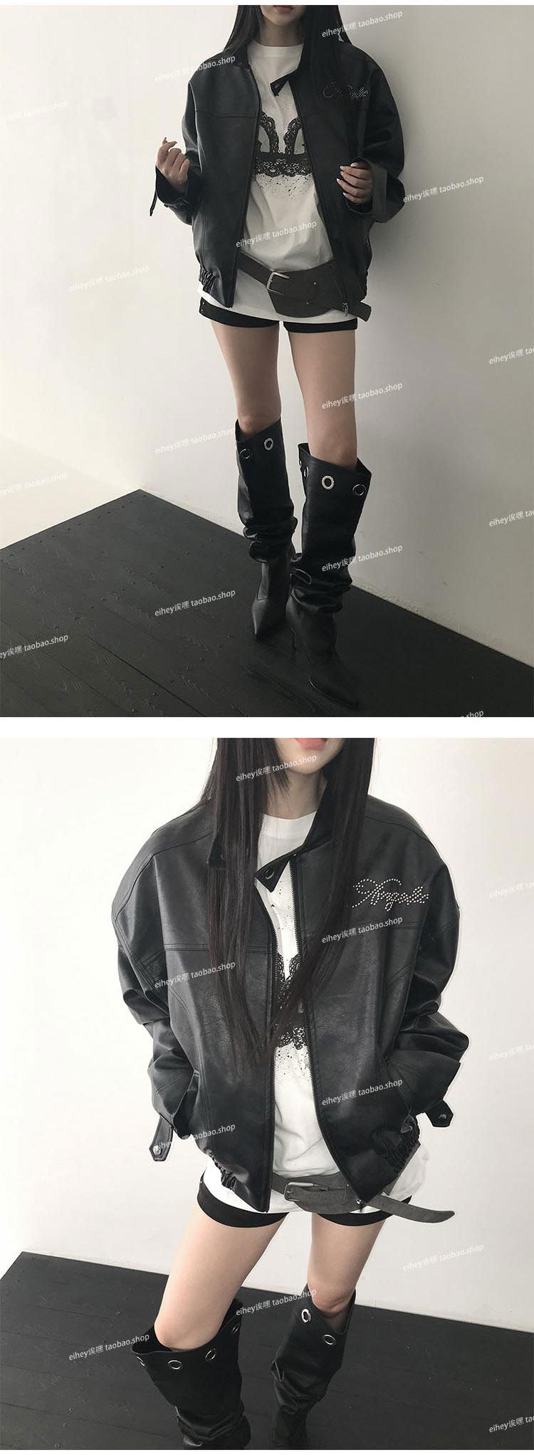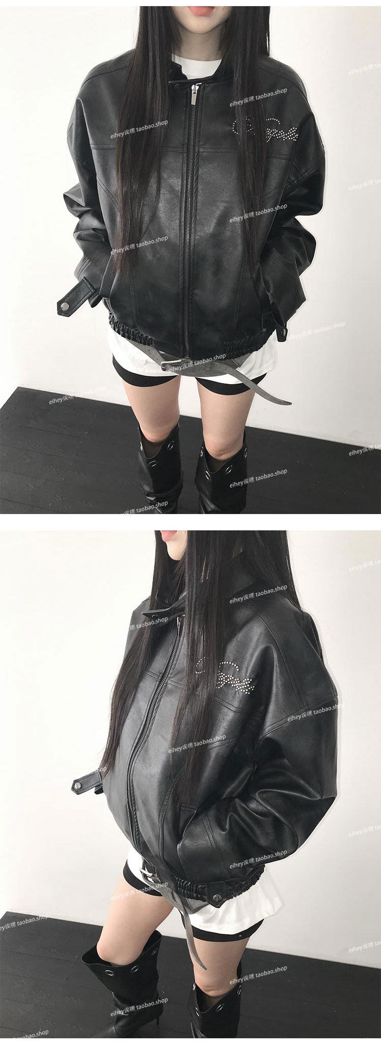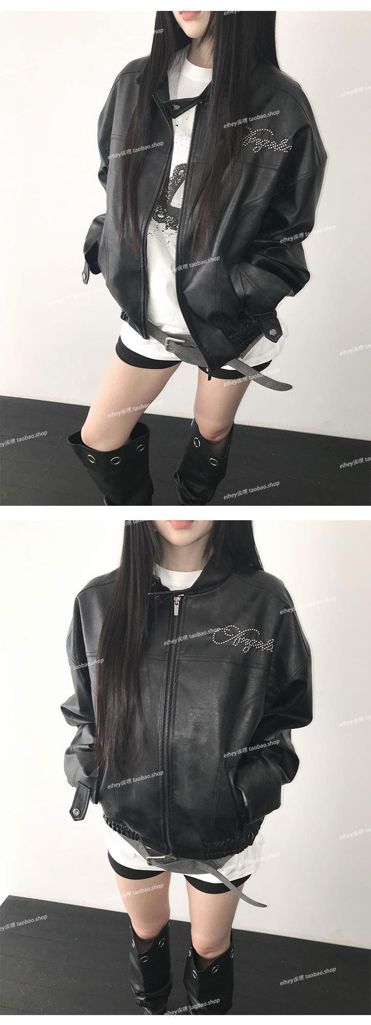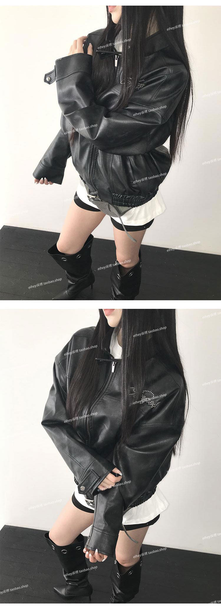 Eihey 2025 Autumn and Winter American Retro Distressed Studded Beaded Design Long-Sleeve Jacket Pu Leather Coat