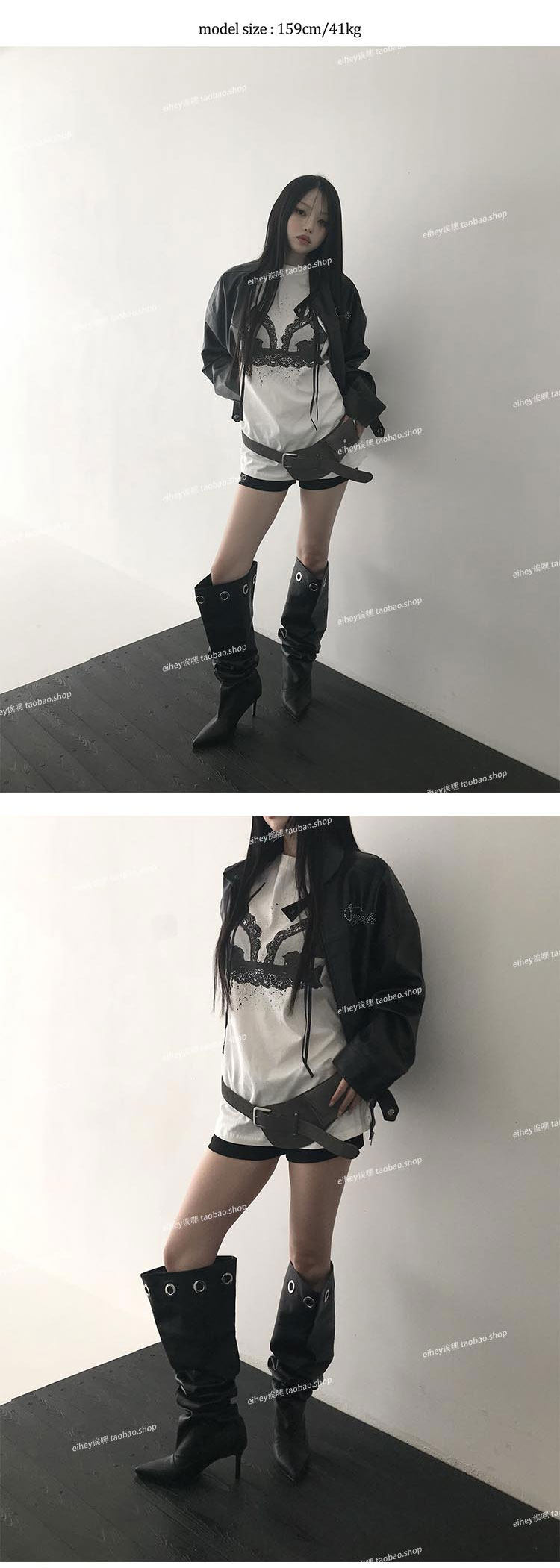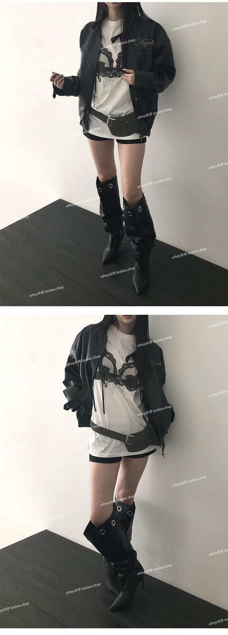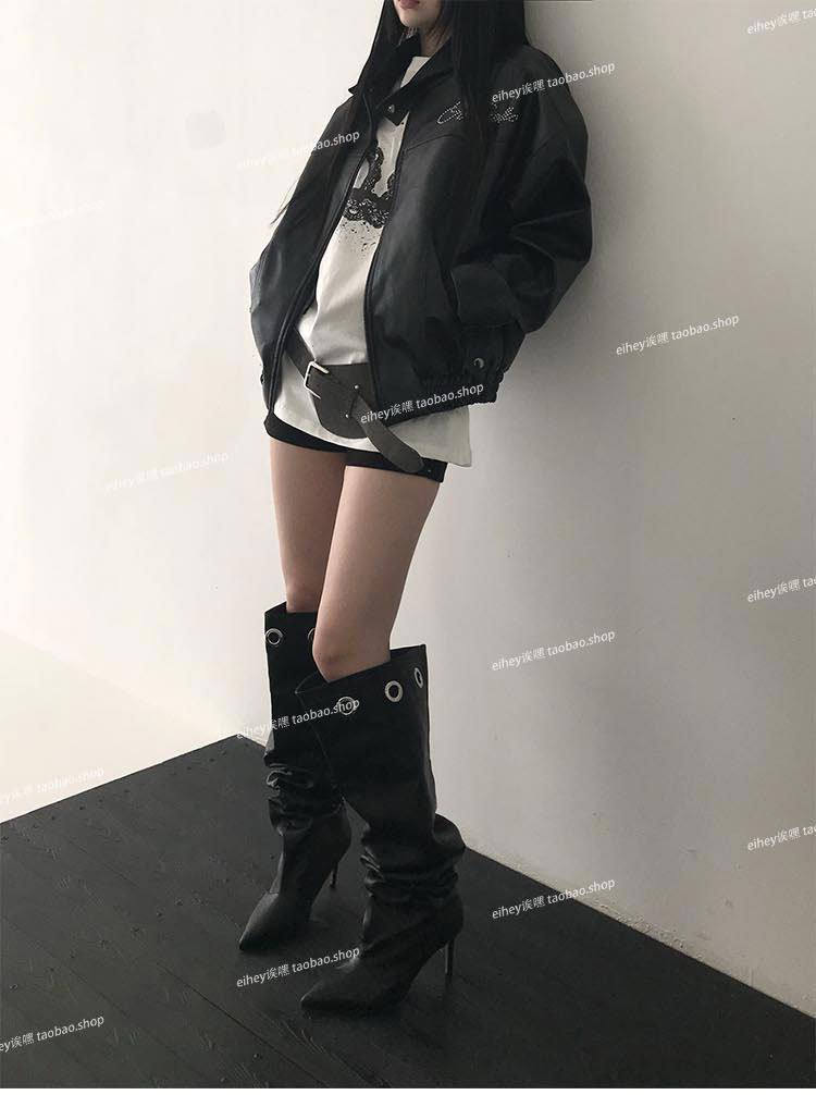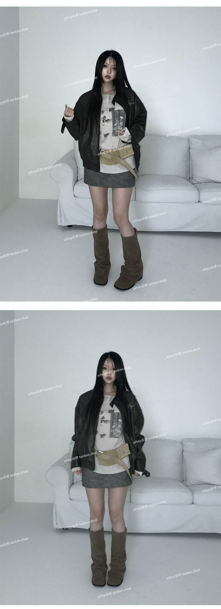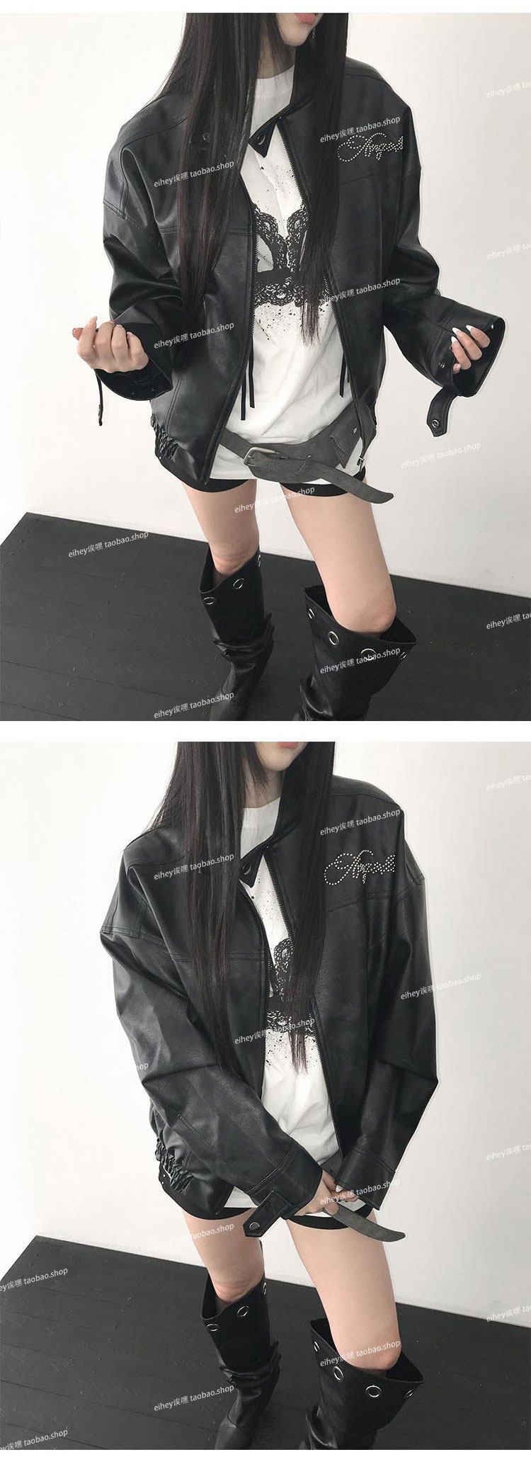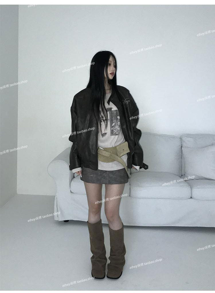 Eihey 2025 Autumn and Winter American Retro Distressed Studded Beaded Design Long-Sleeve Jacket Pu Leather Coat