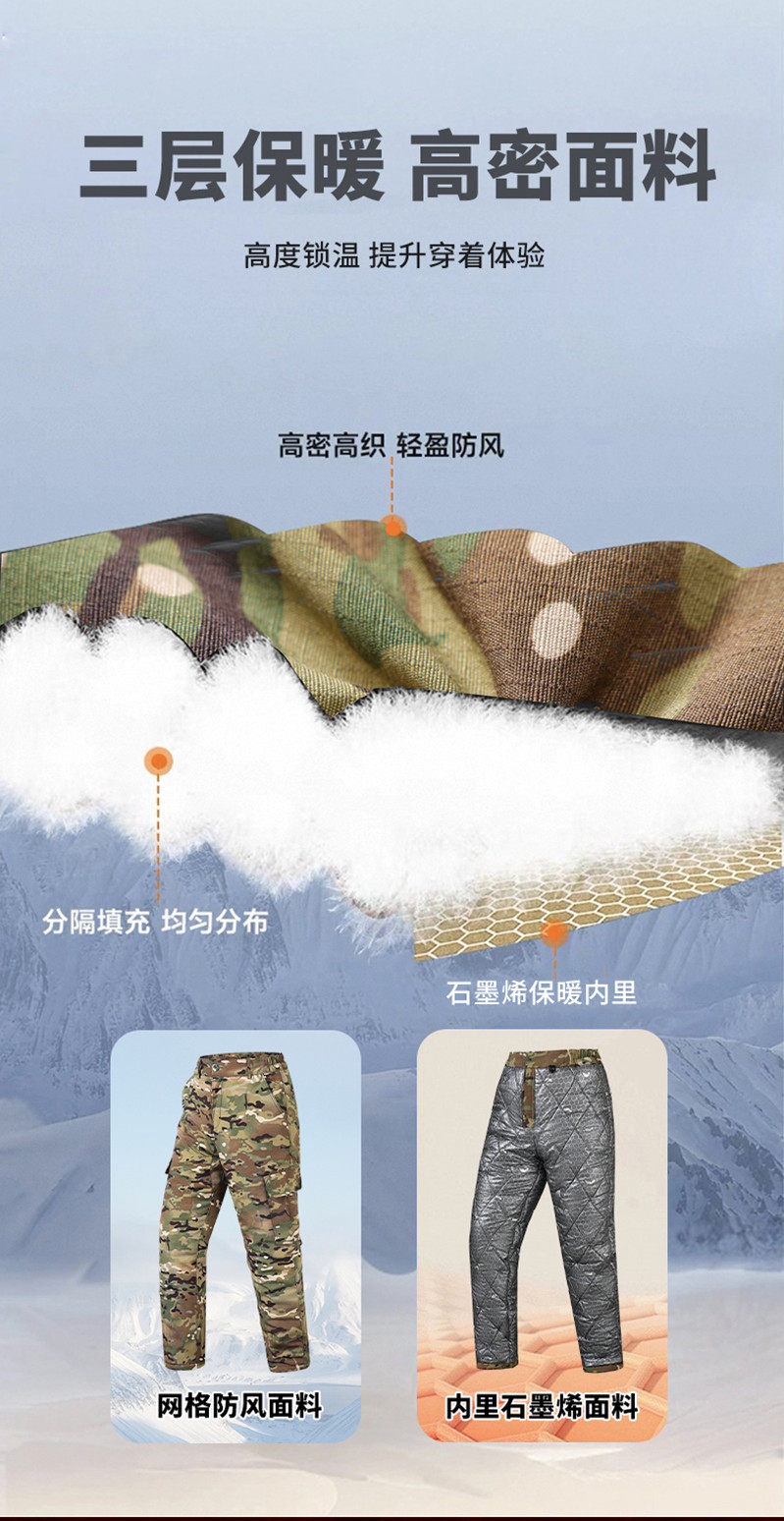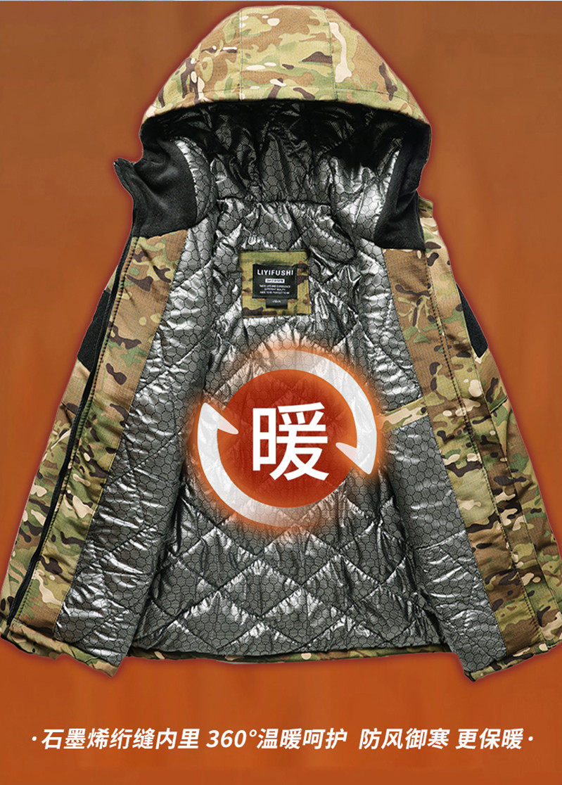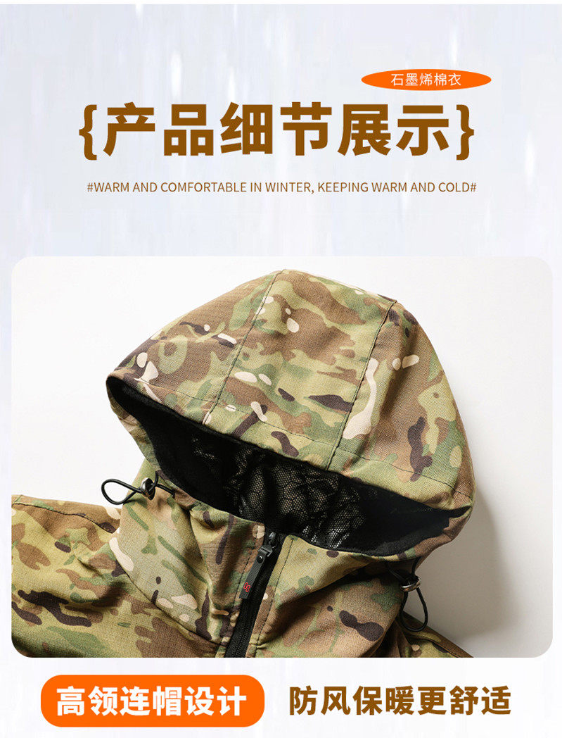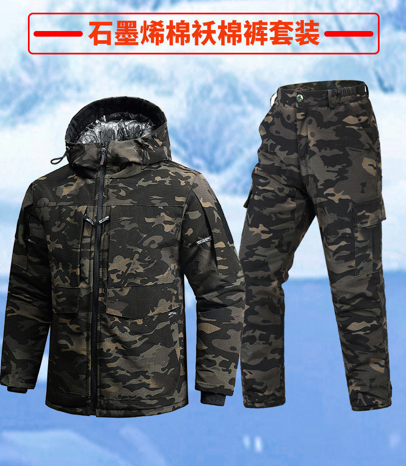 Graphene Thickened Cotton Jacket and Pants Set for Men, Winter Waterproof and Cold-Proof Warm Cotton Clothing, New Multi-Pocket Military Coat