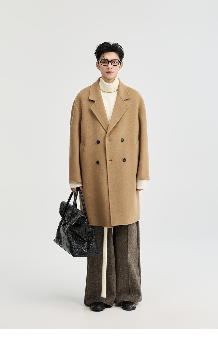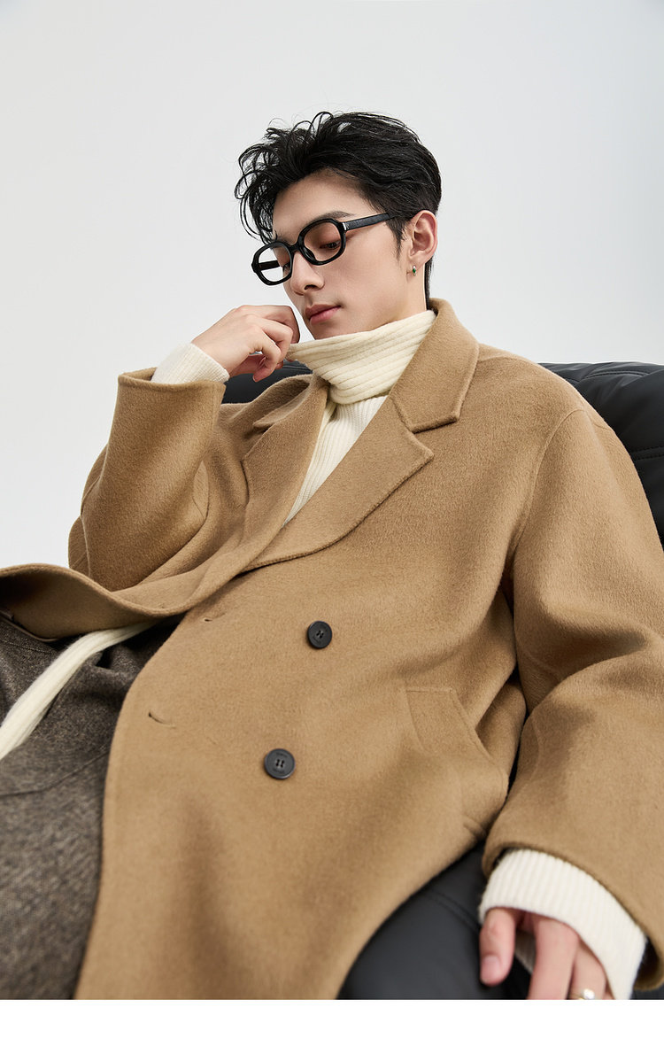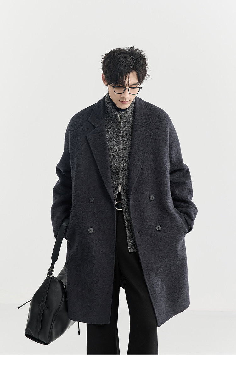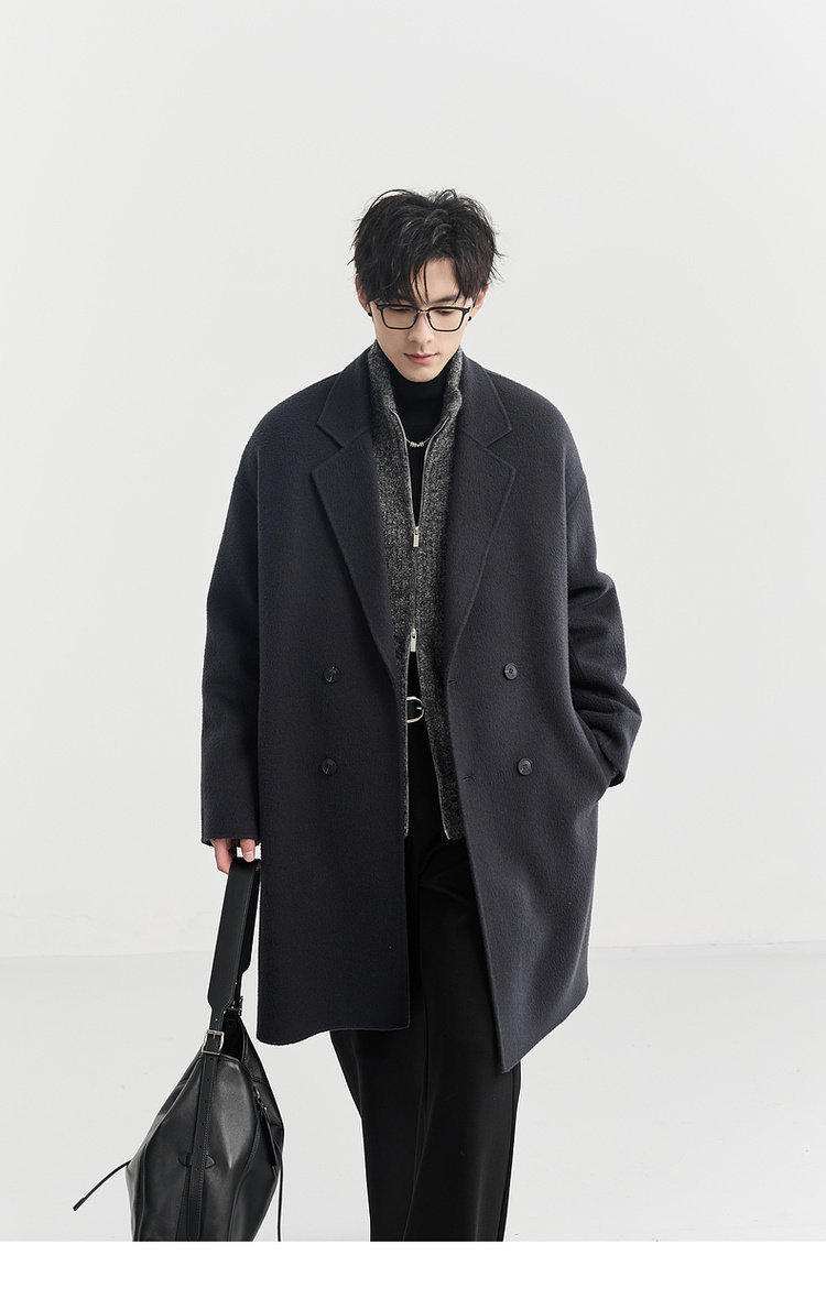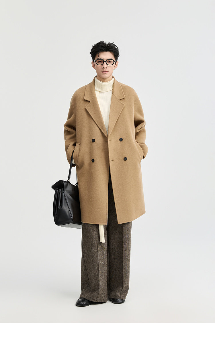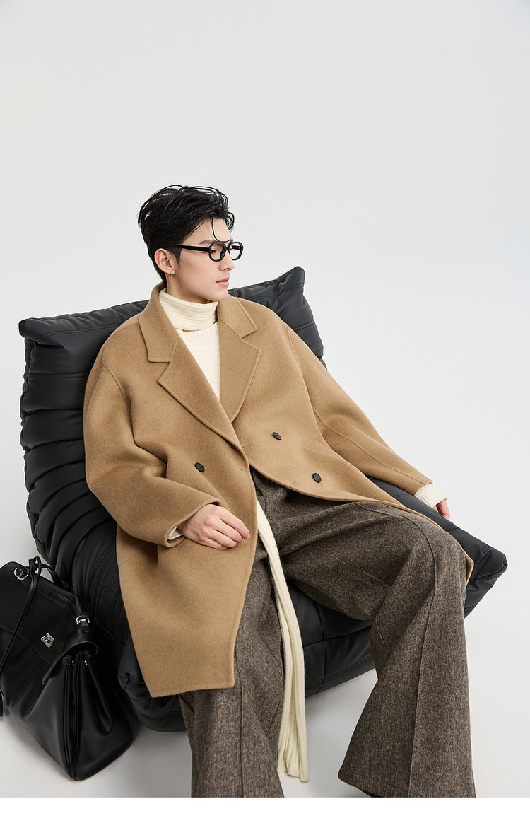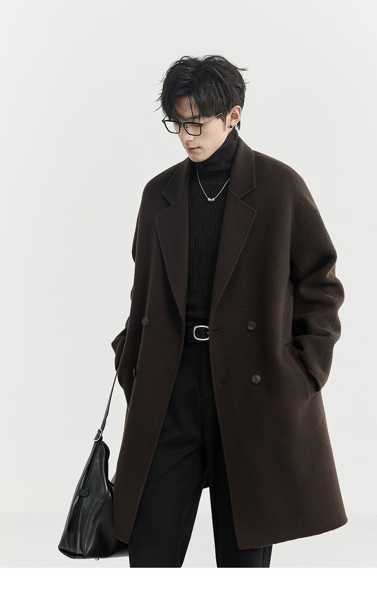 Earl Zhuoer 2025 Autumn/Winter New High-End Double-Sided Wool Coat for Men, Mid-Length Korean Style Sheep Wool Jacket