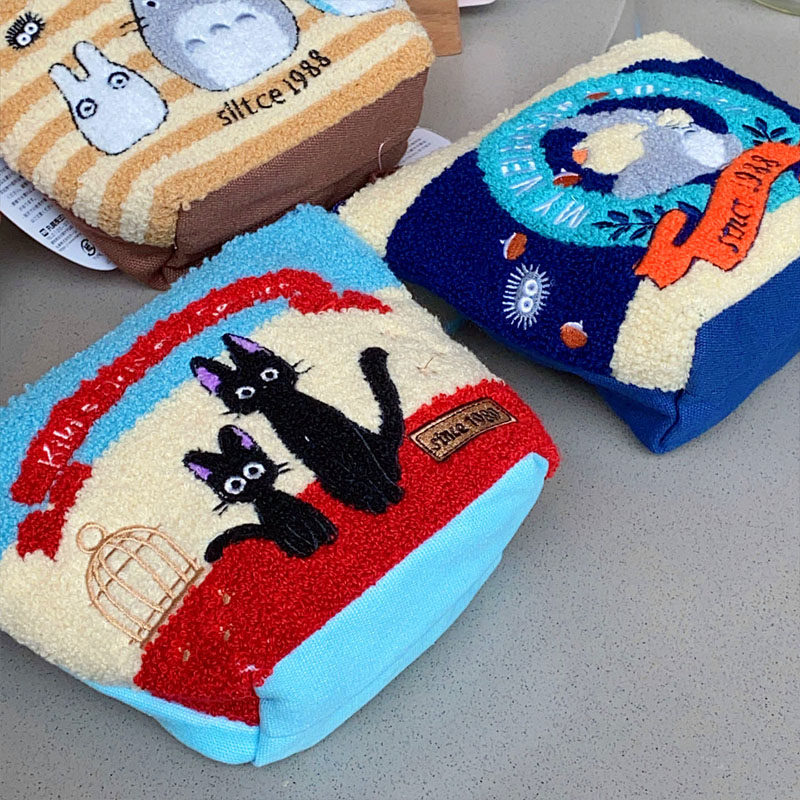 Japanese-Style Cartoon Cat Series Kiki's Delivery Service Clutch Bag Plush Embroidery Cute Totoro Storage Bag Cosmetic Bag