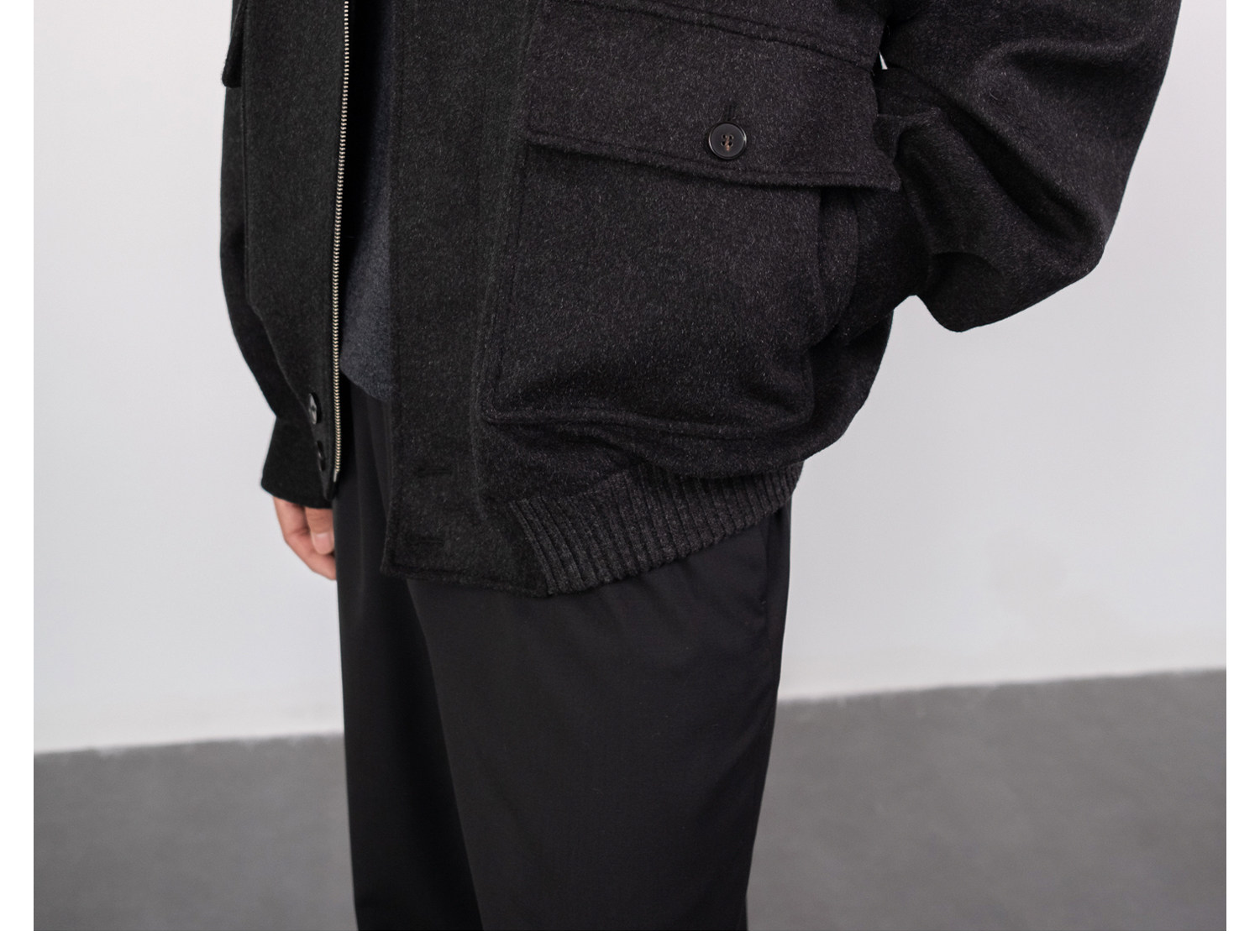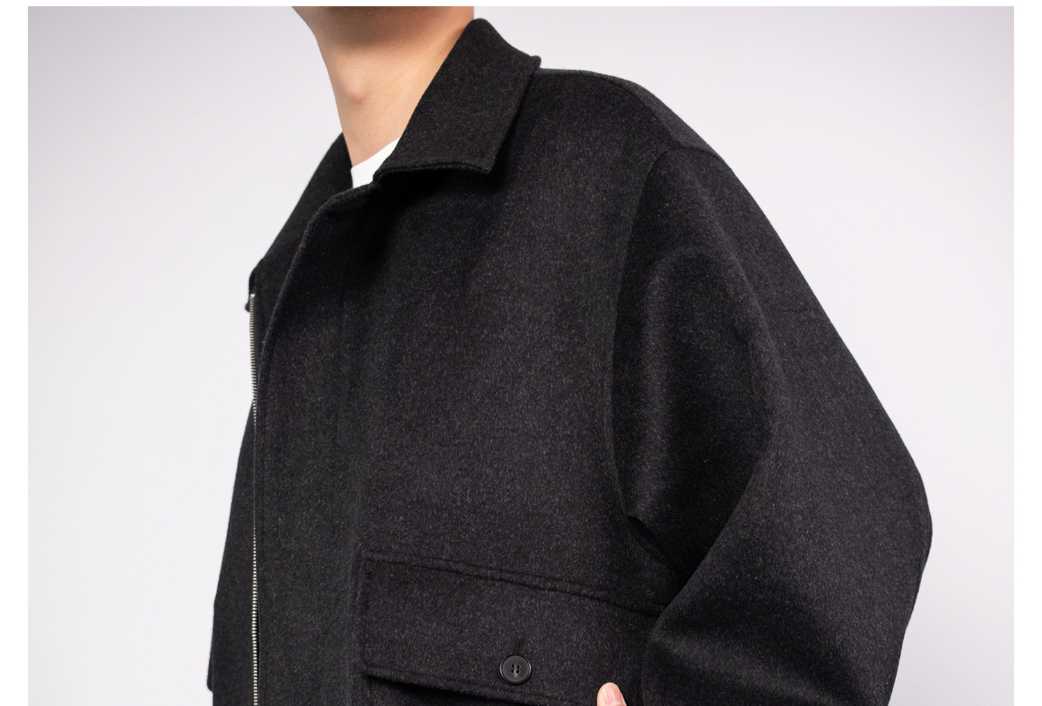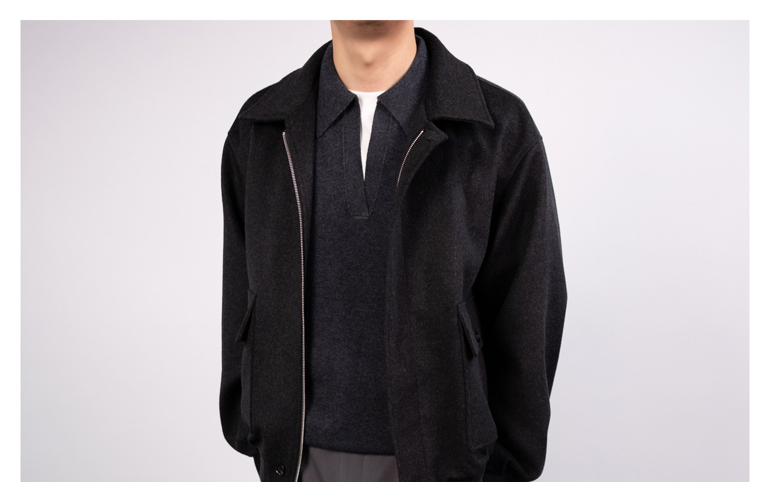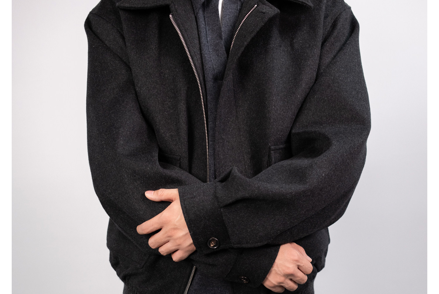 Arcmix Cashmere Blend Single-Sided Wool Carbon Black Mole Leather Jacket Auralee Style Military Flight Jacket