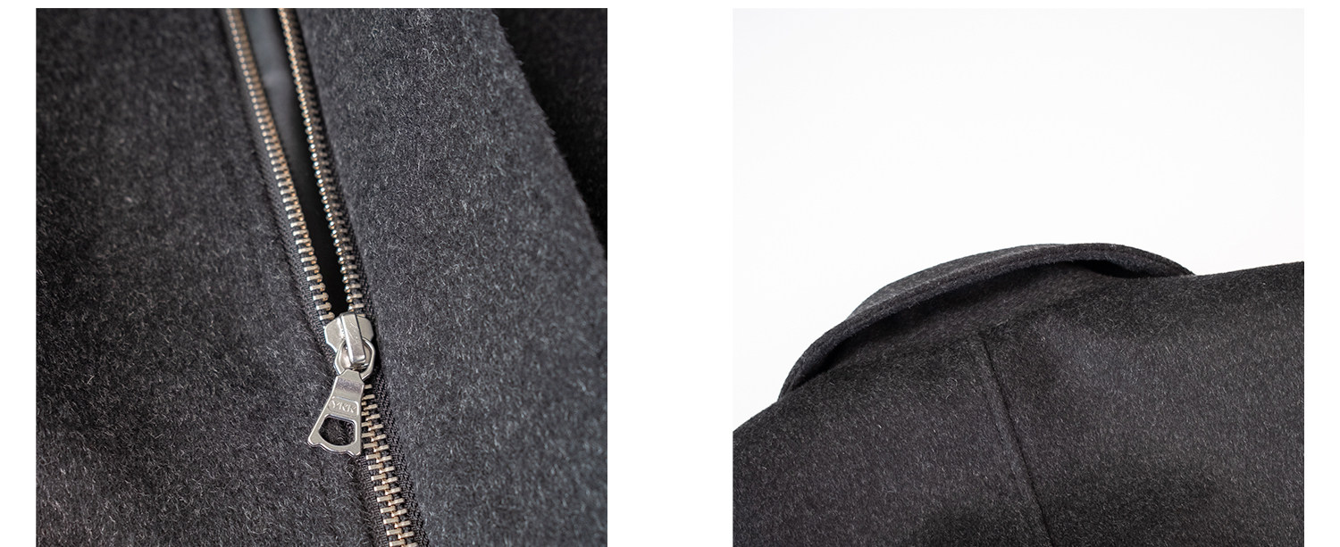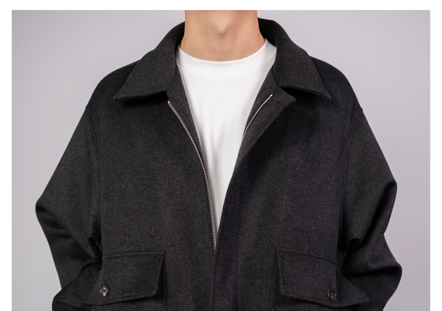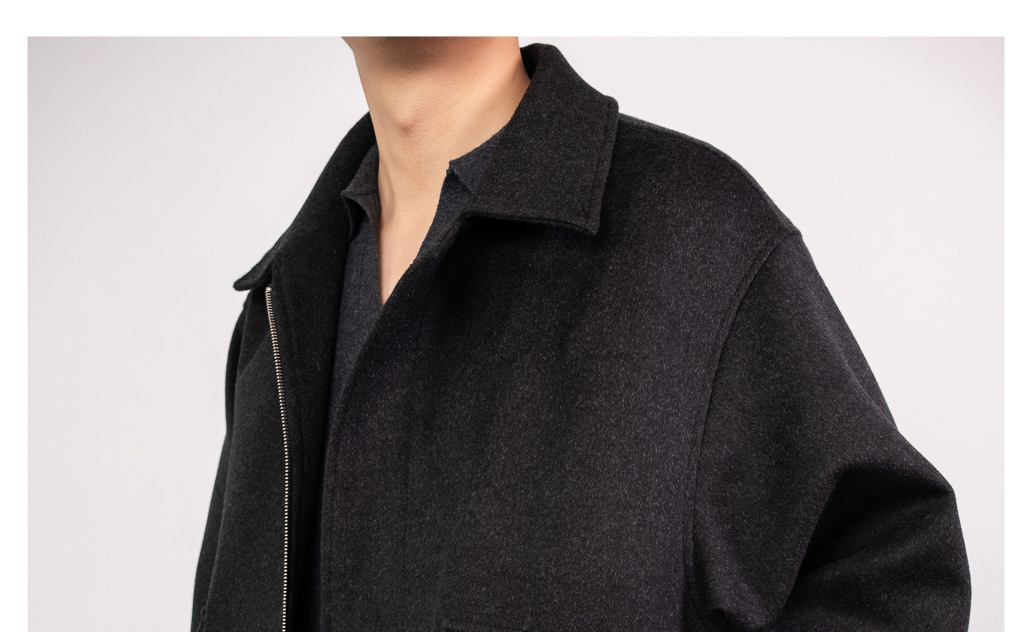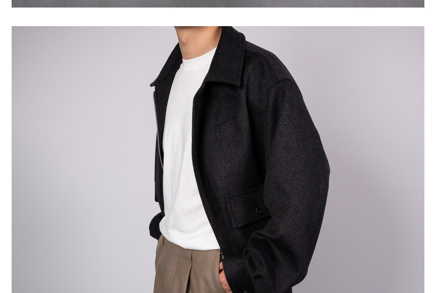 Arcmix Cashmere Blend Single-Sided Wool Carbon Black Mole Leather Jacket Auralee Style Military Flight Jacket