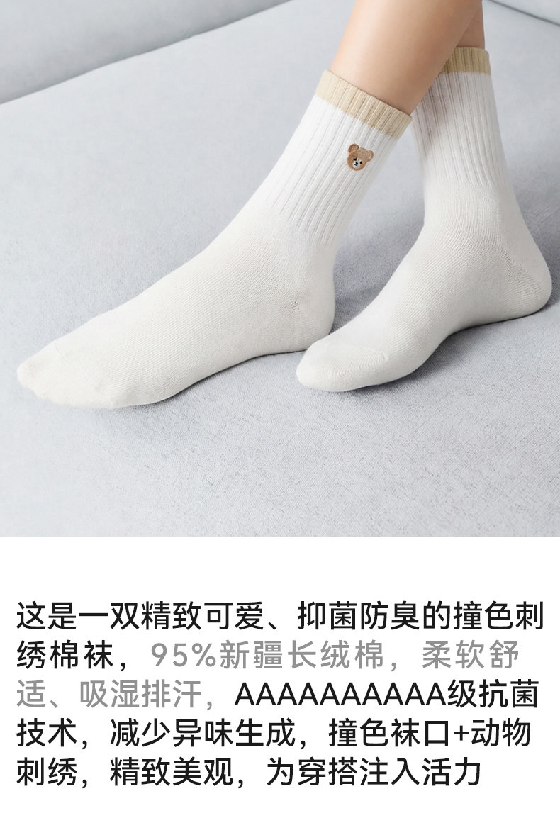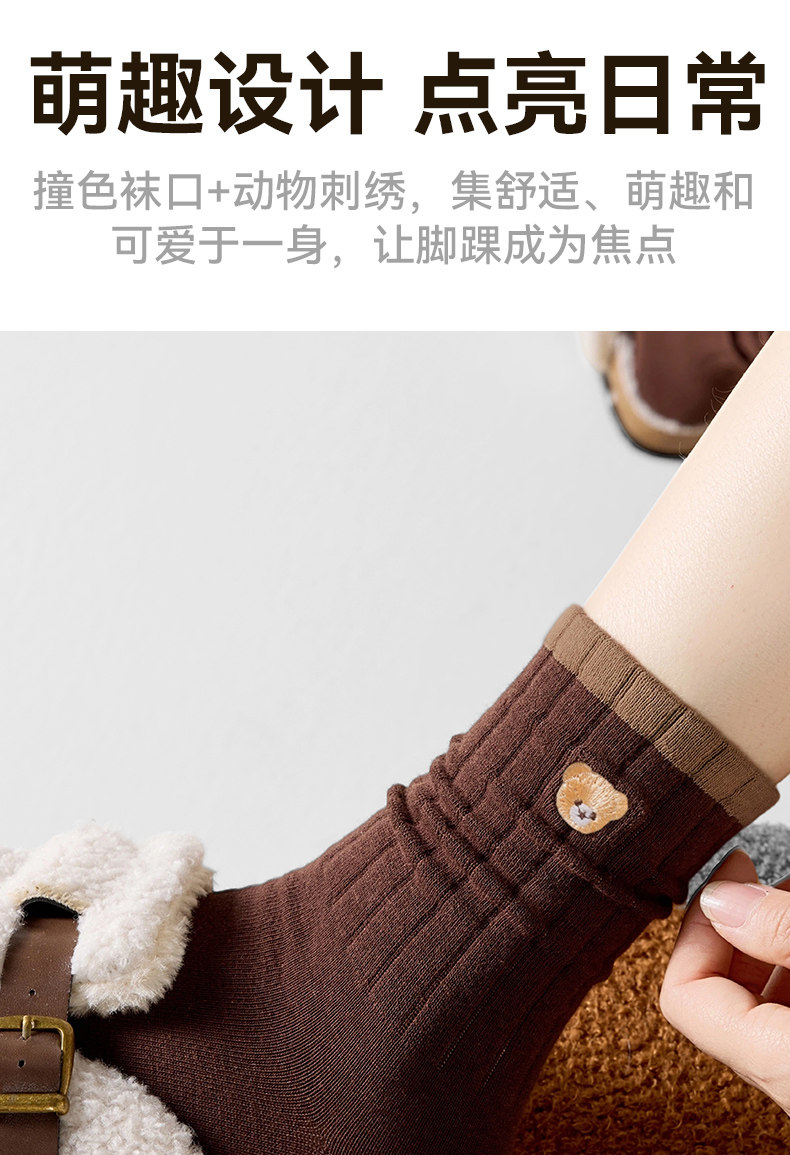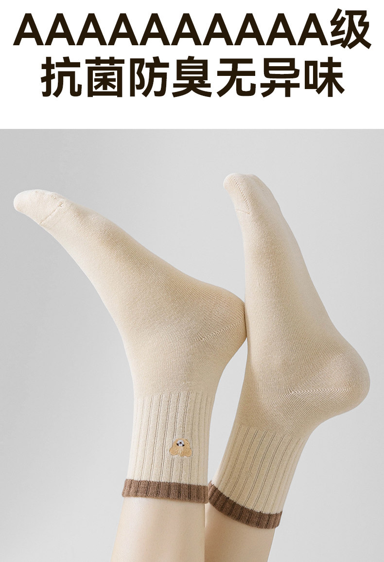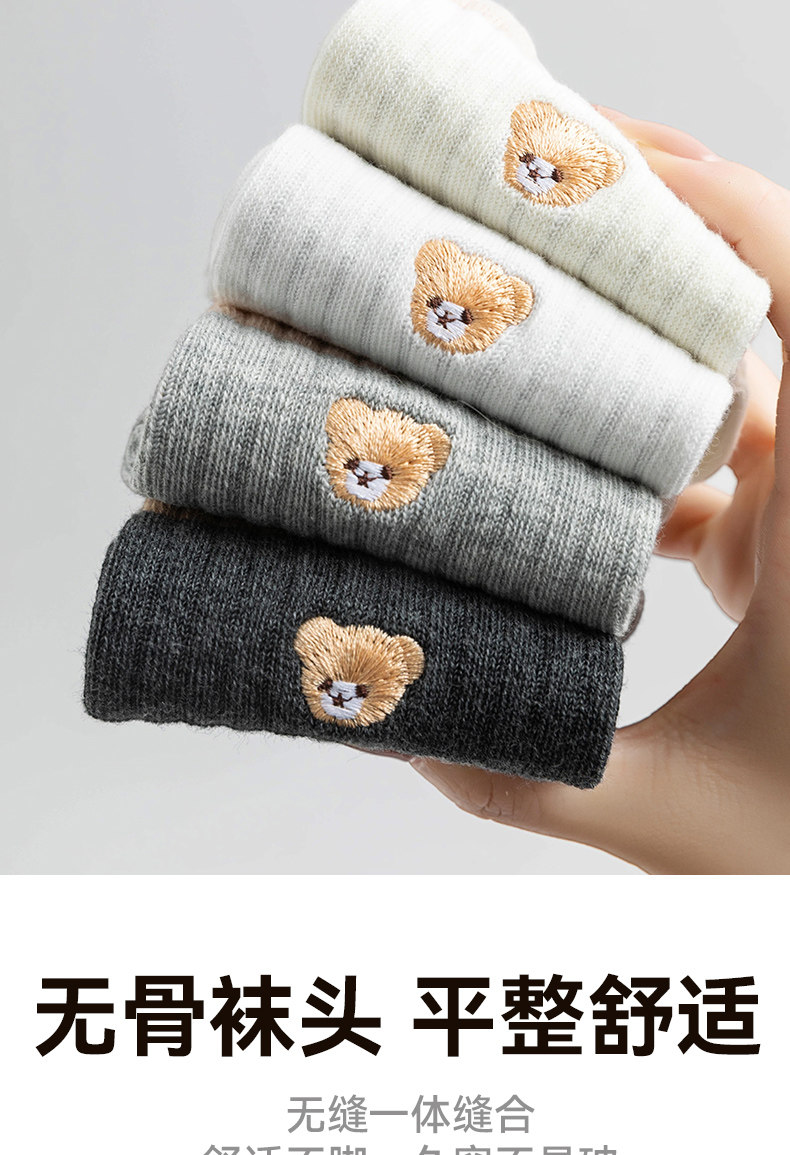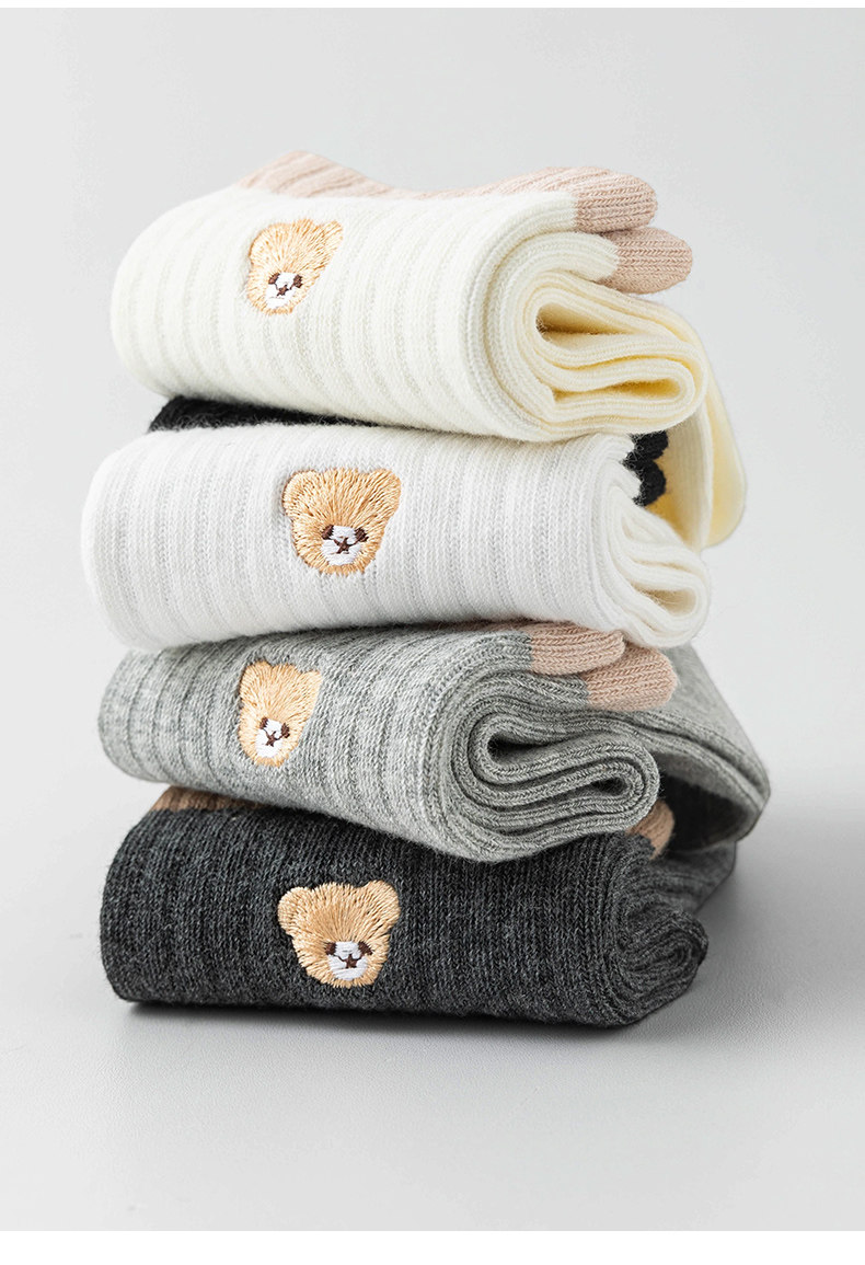 Cat People Women's Socks Spring/Summer Pure Cotton Mid-Calf Socks 2026 New Popular Anti-Odor Bear Embroidery Maternity Long Socks