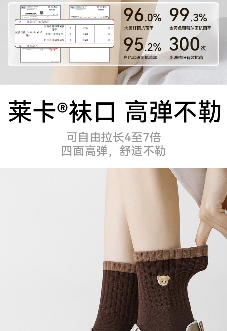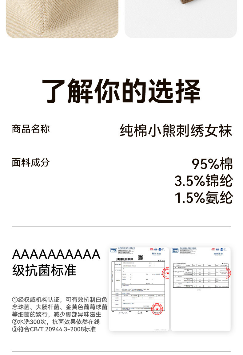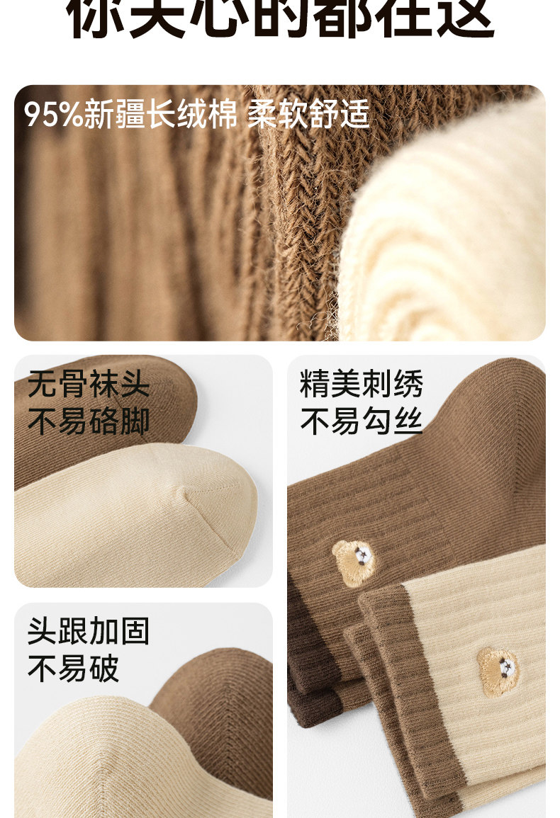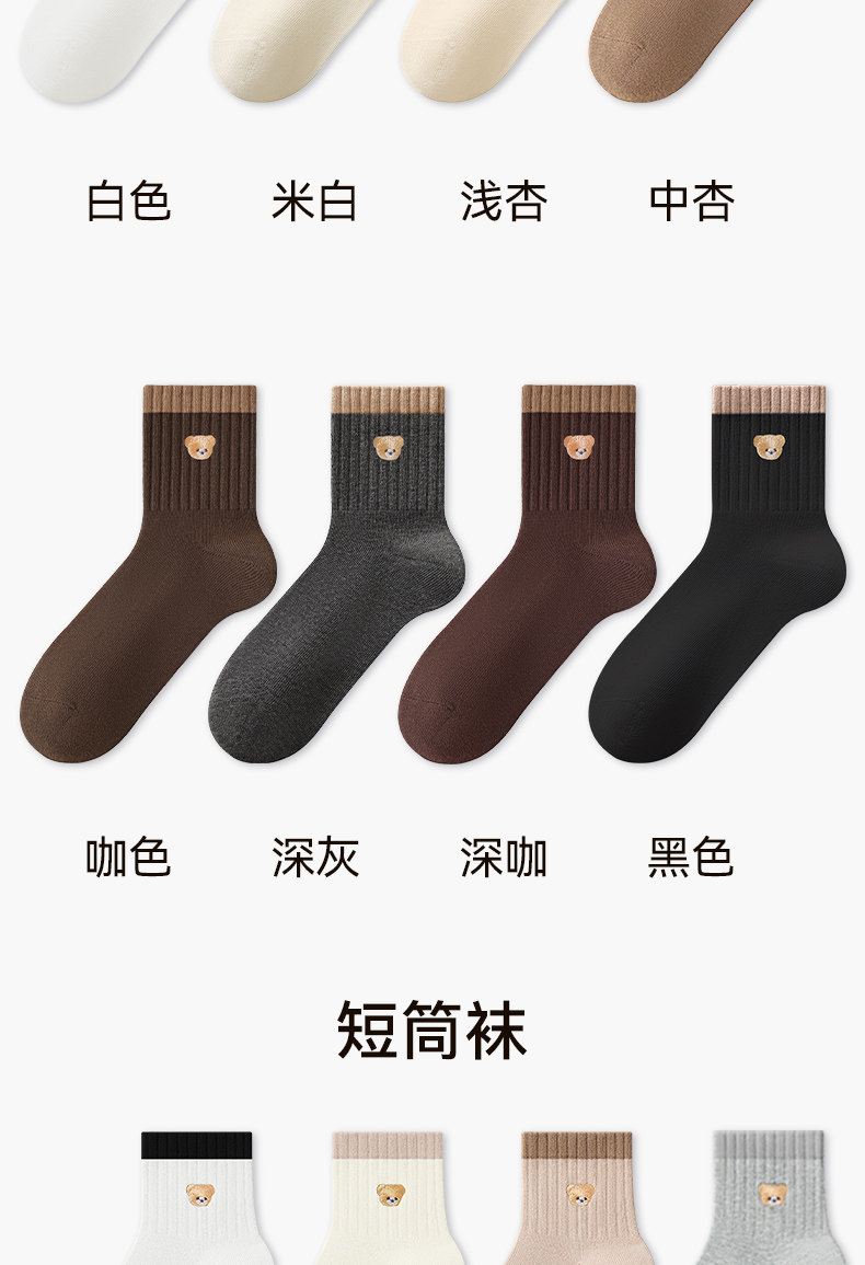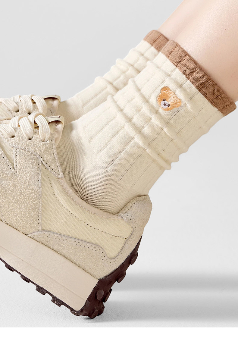 Cat People Women's Socks Spring/Summer Pure Cotton Mid-Calf Socks 2026 New Popular Anti-Odor Bear Embroidery Maternity Long Socks