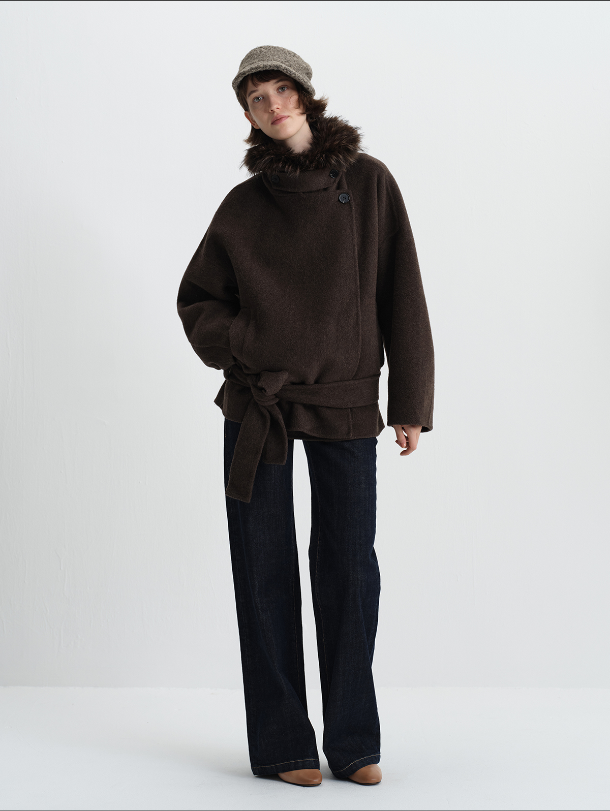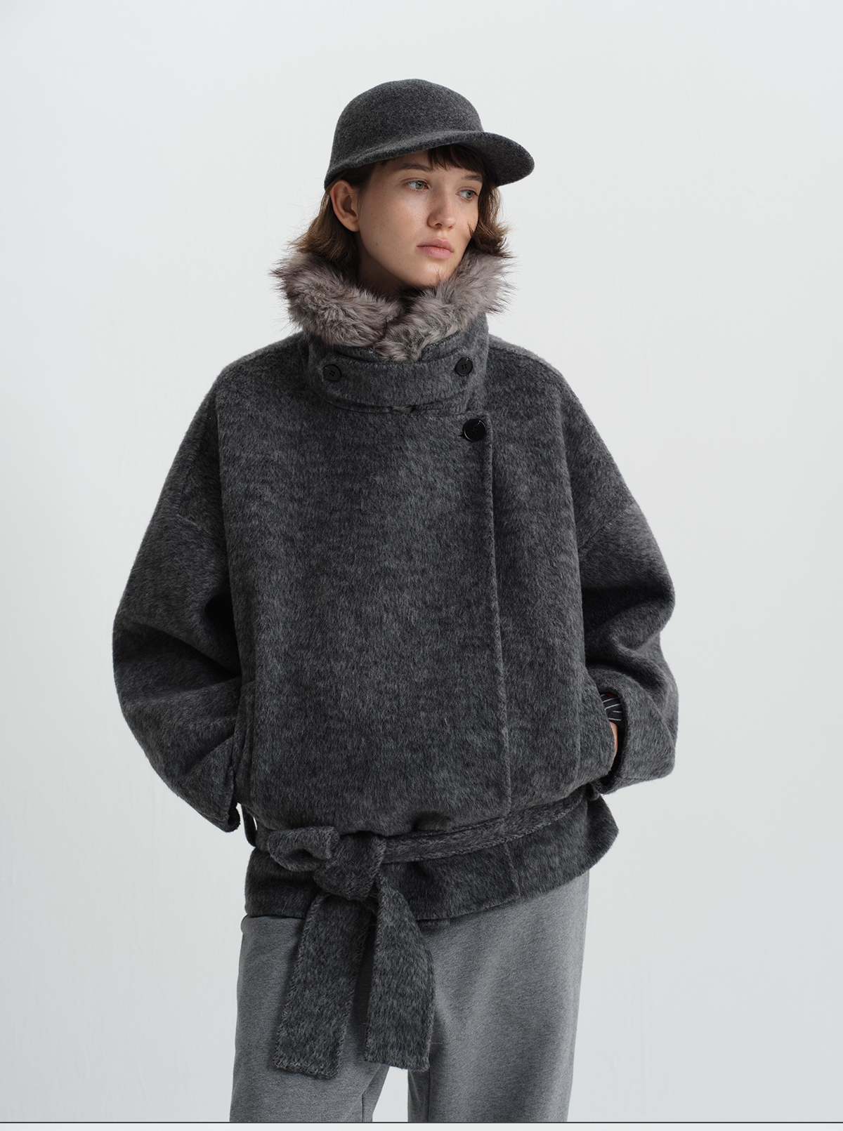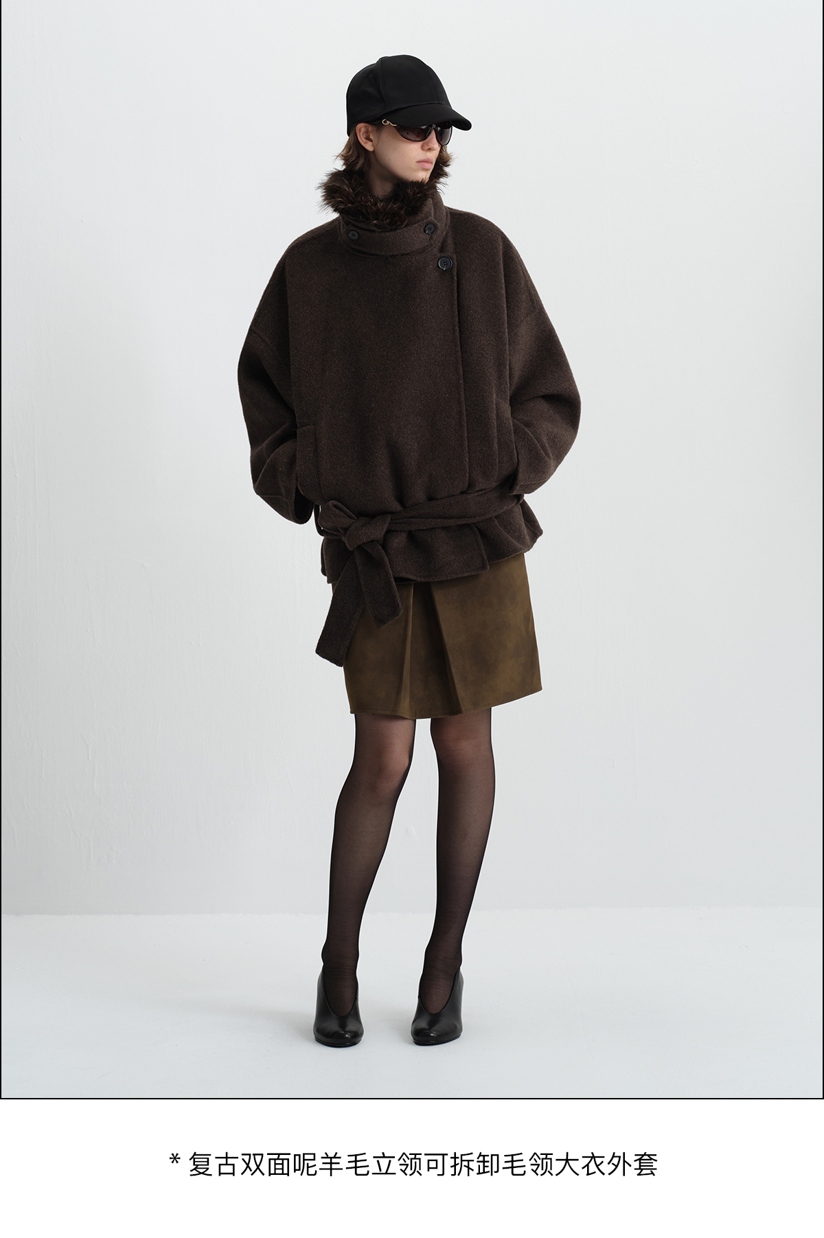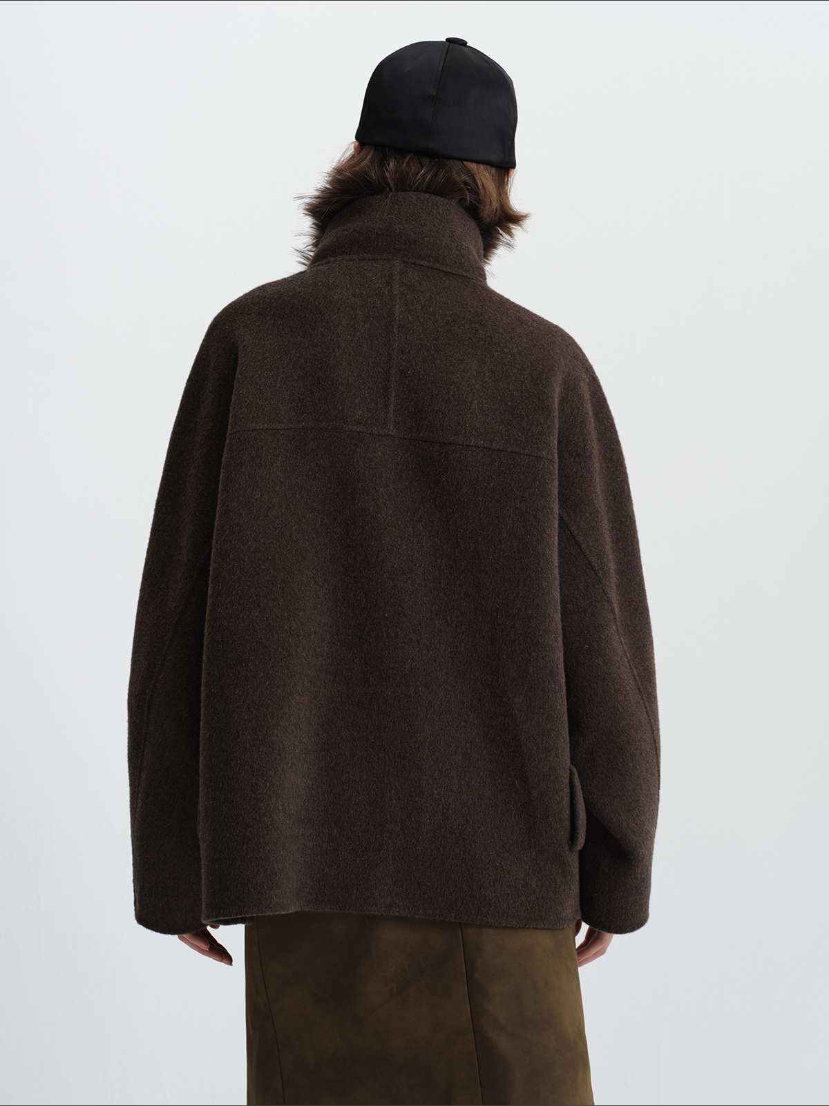 True by Nature 70% Wool Vintage Double-Sided Woolen Detachable Fur Collar Short Woolen Coat Jacket