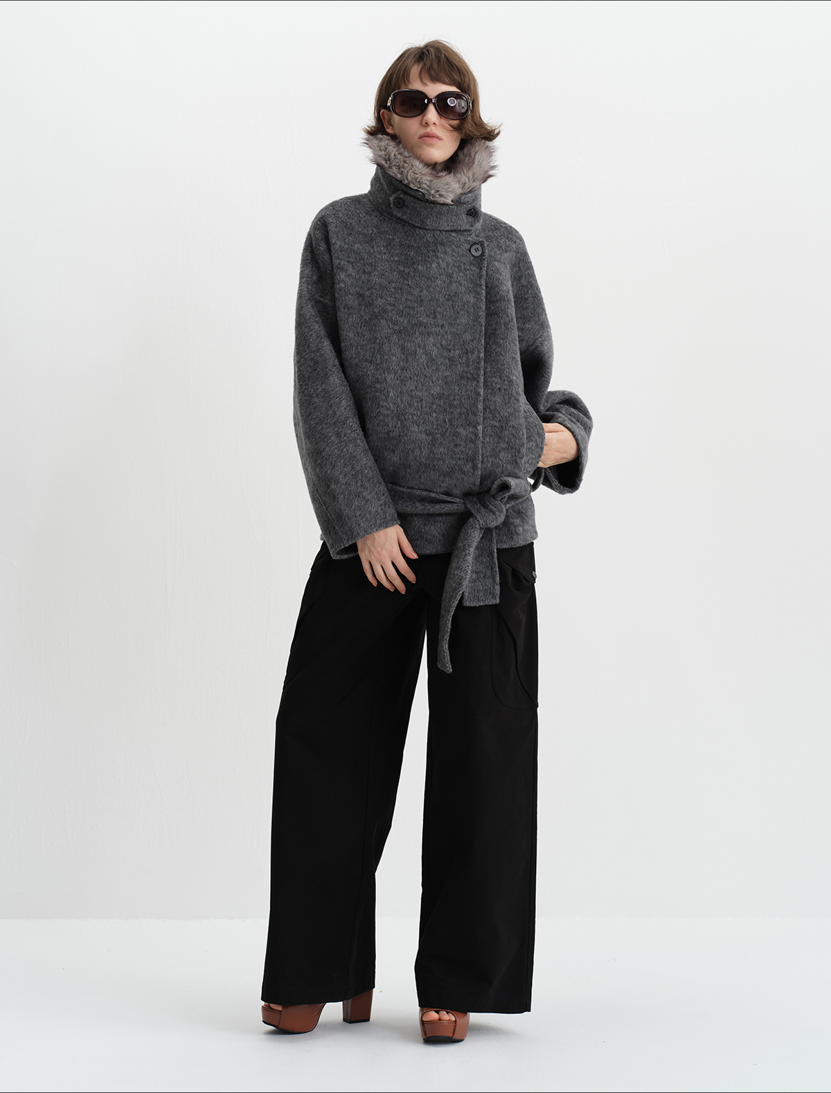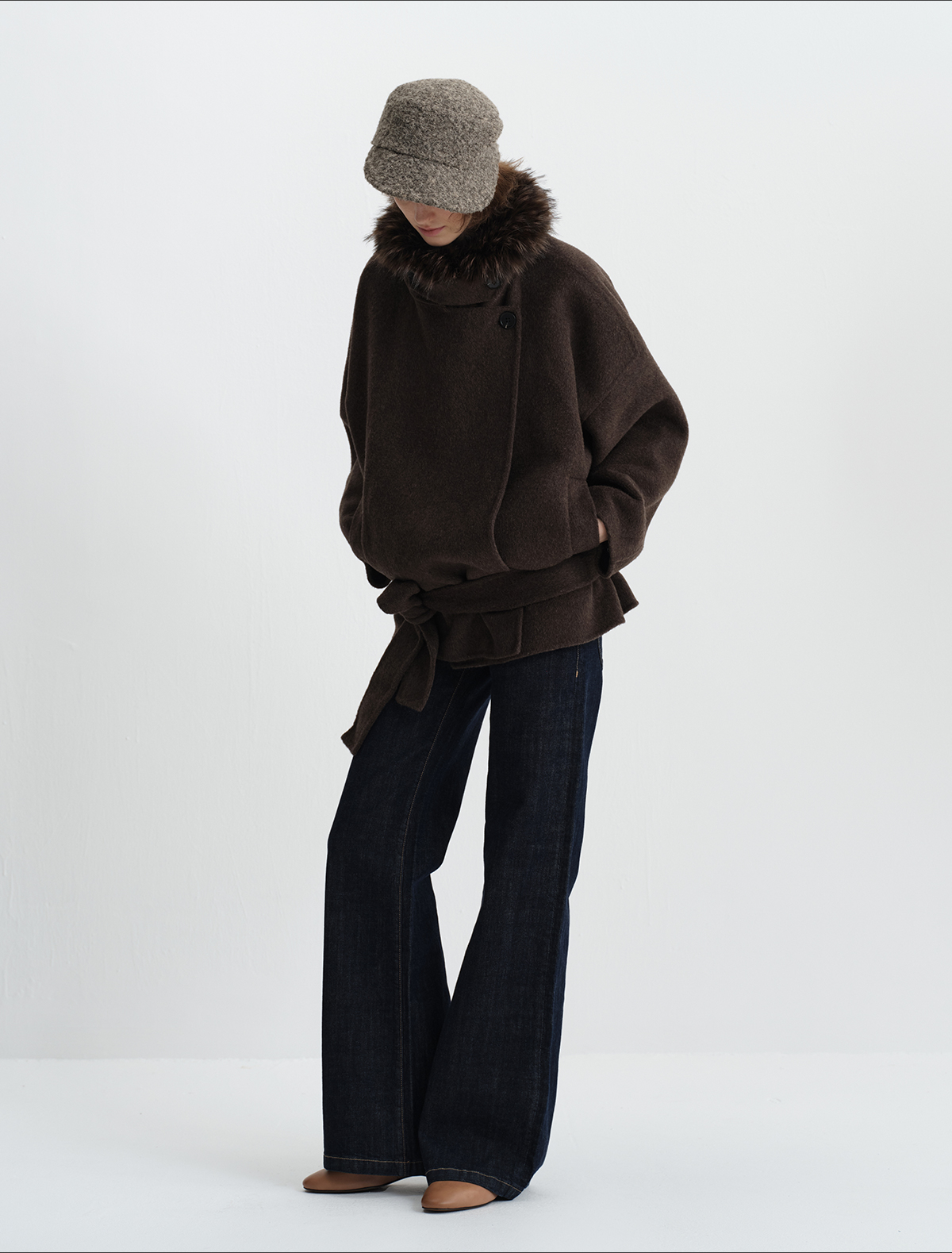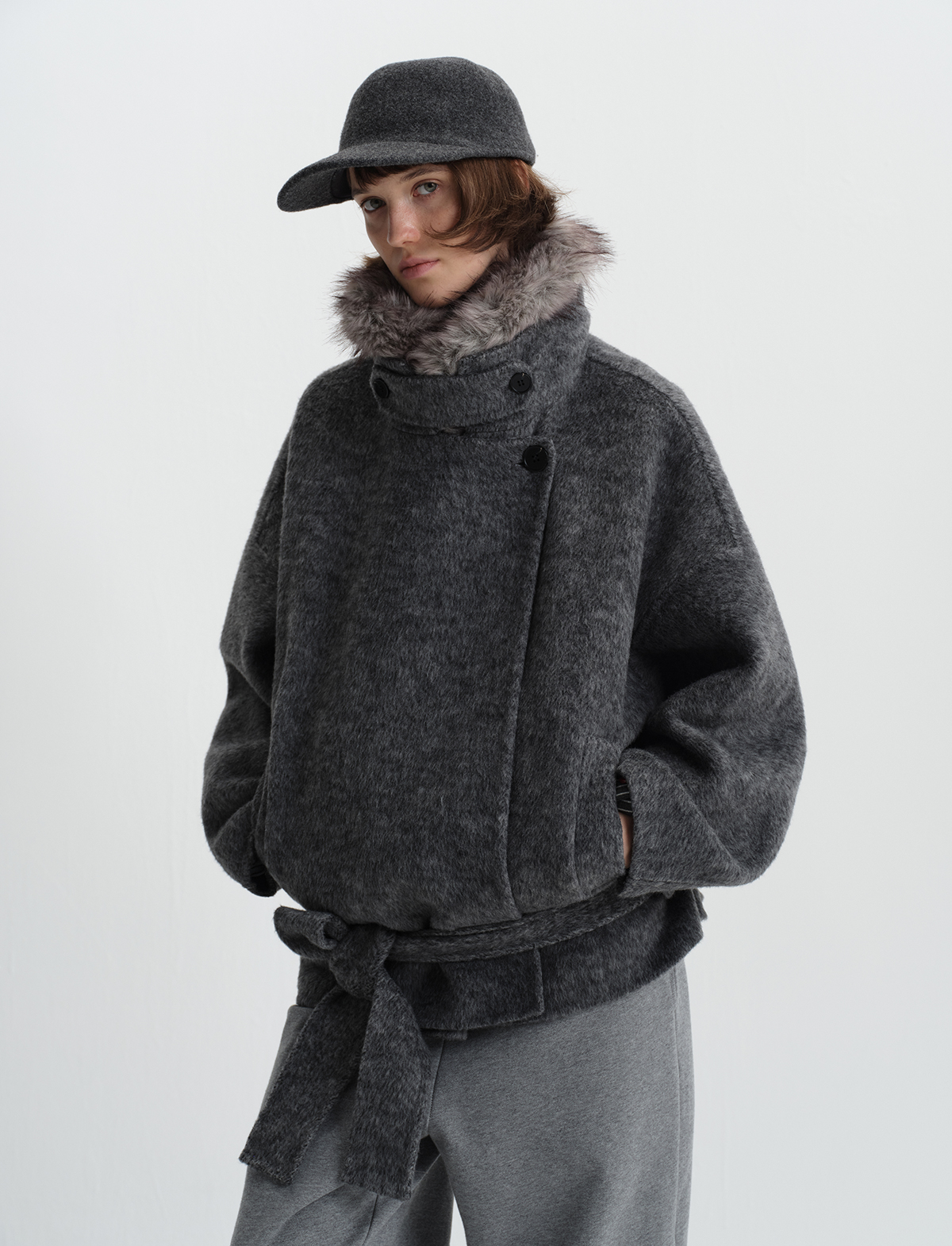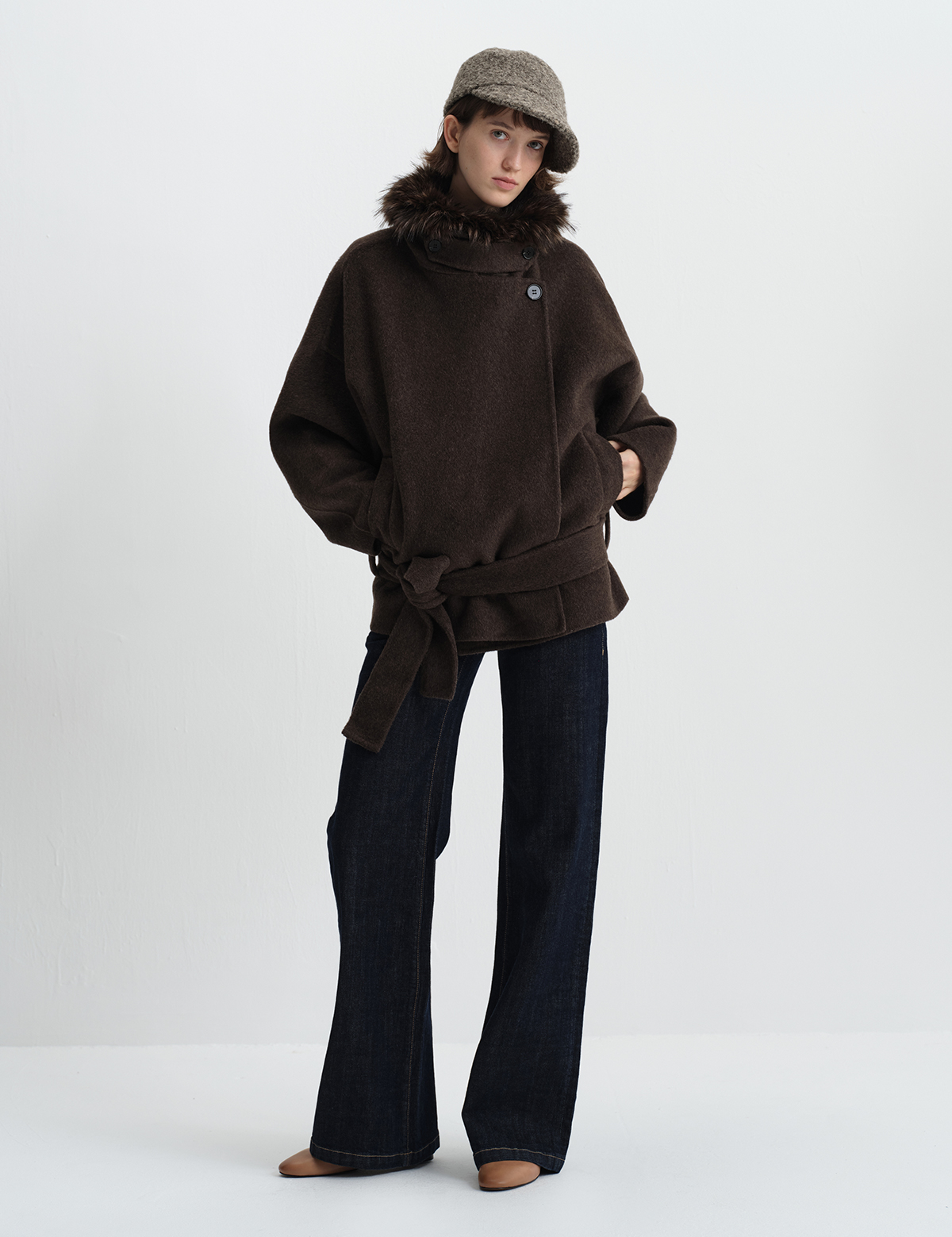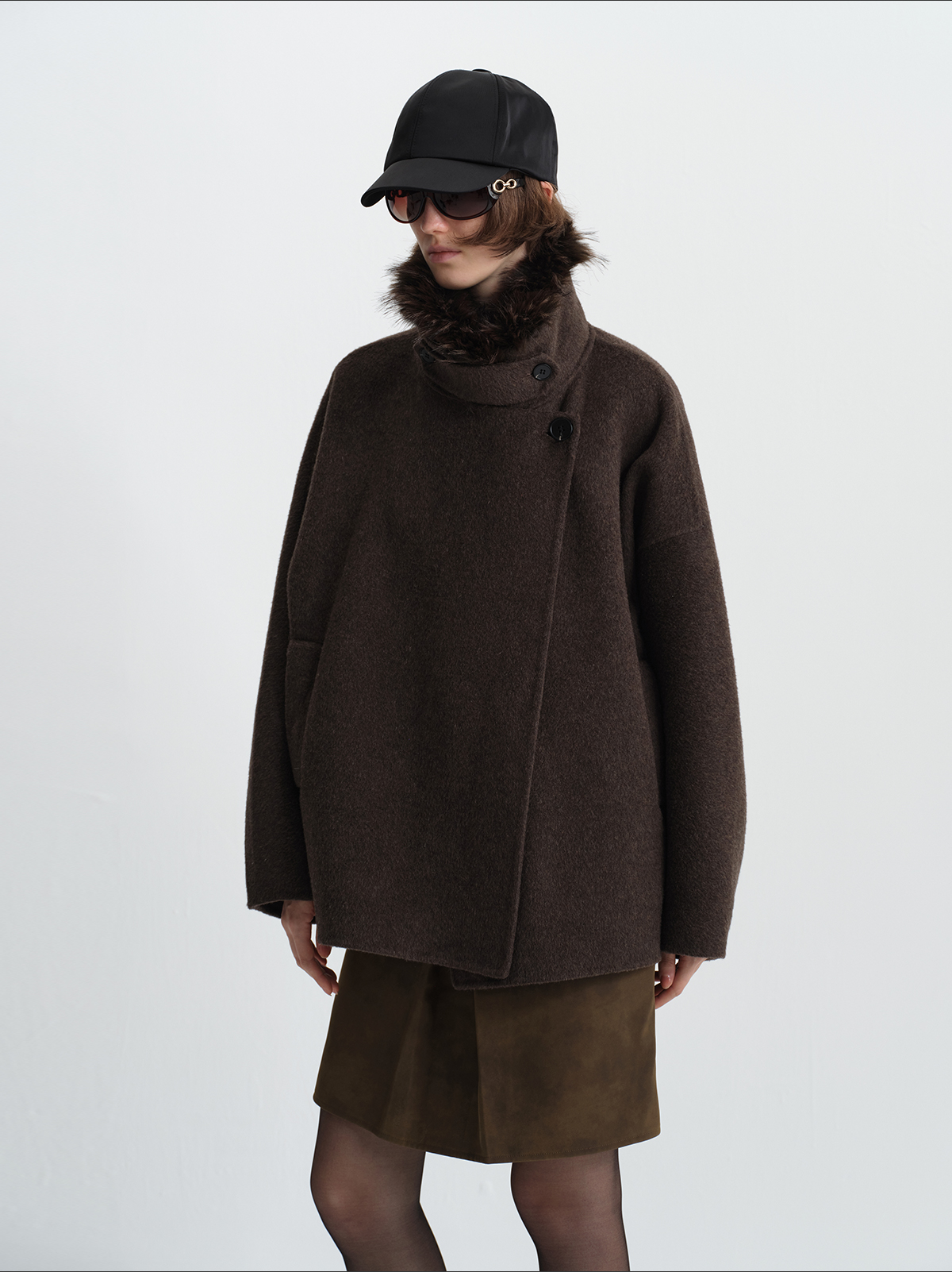 True by Nature 70% Wool Vintage Double-Sided Woolen Detachable Fur Collar Short Woolen Coat Jacket
