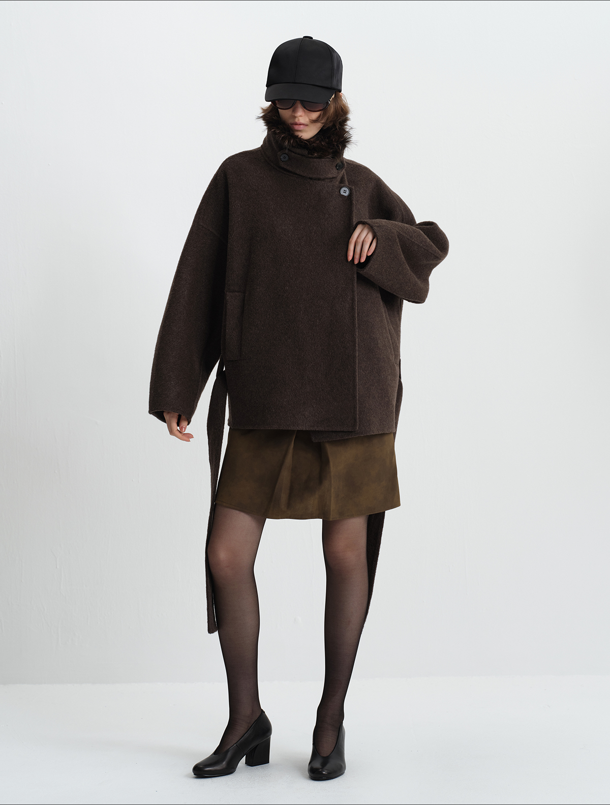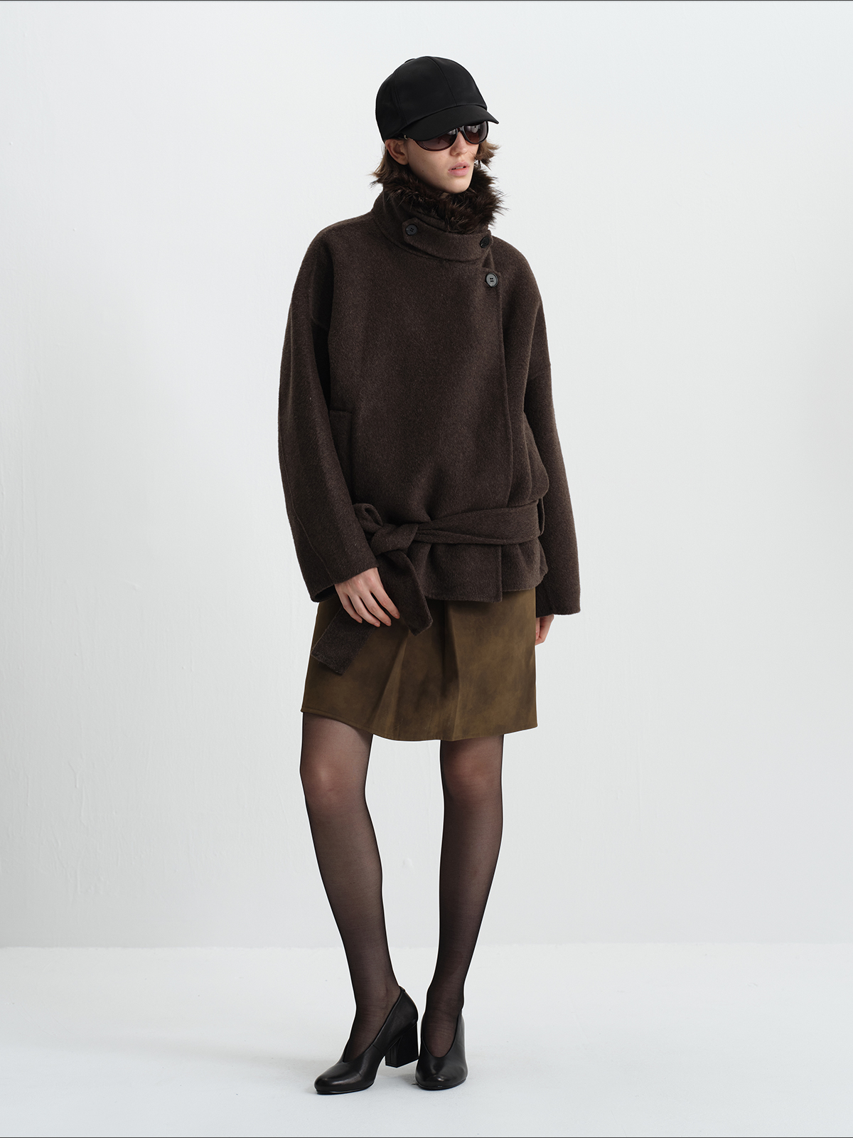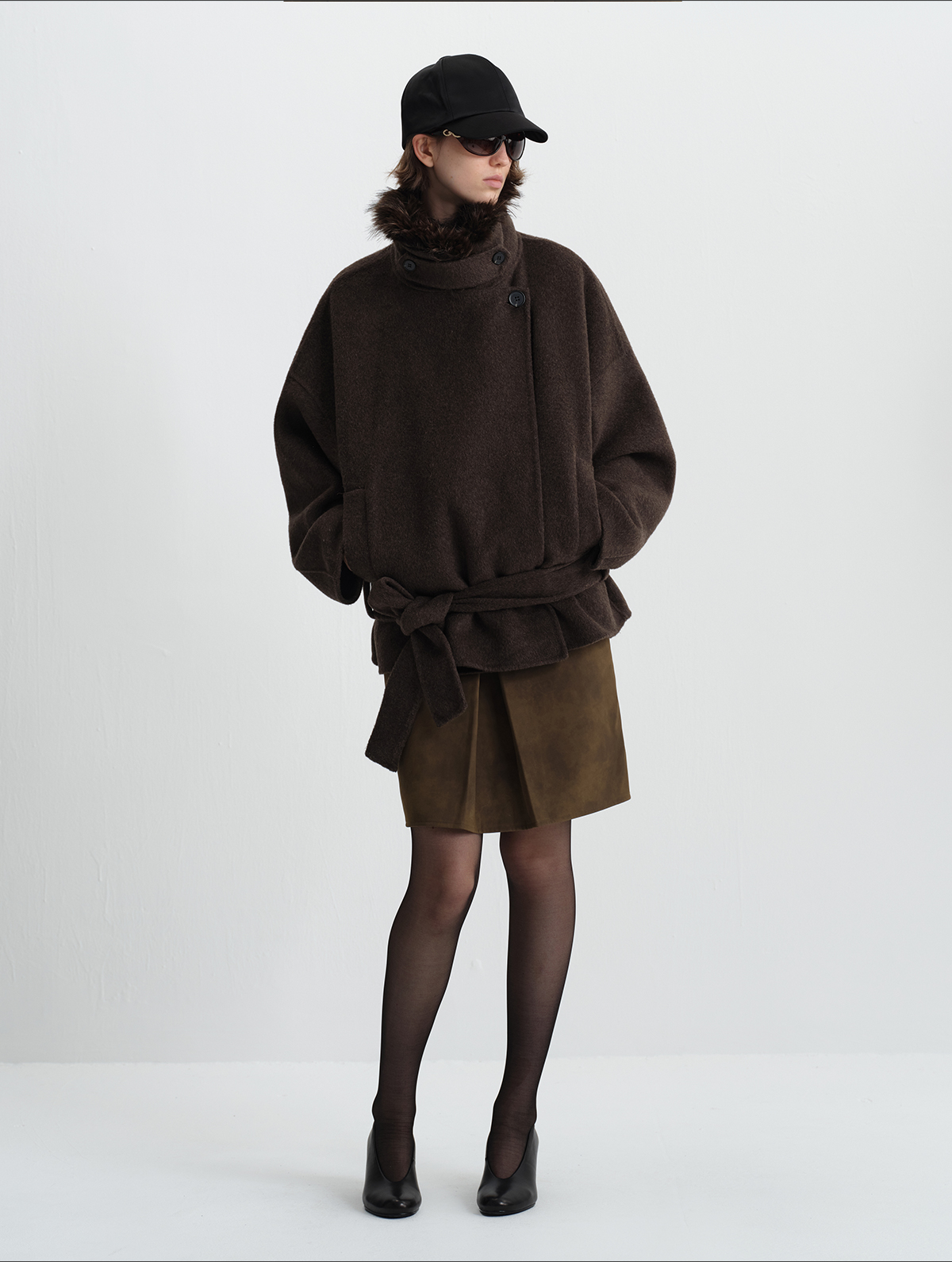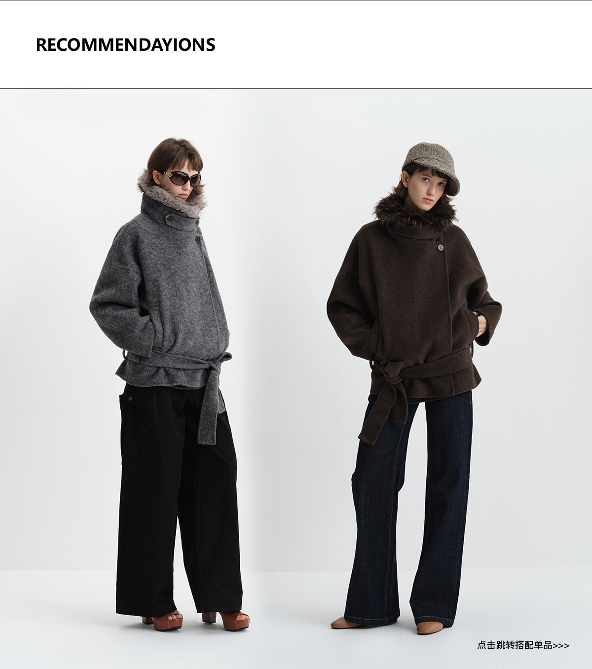 True by Nature 70% Wool Vintage Double-Sided Woolen Detachable Fur Collar Short Woolen Coat Jacket