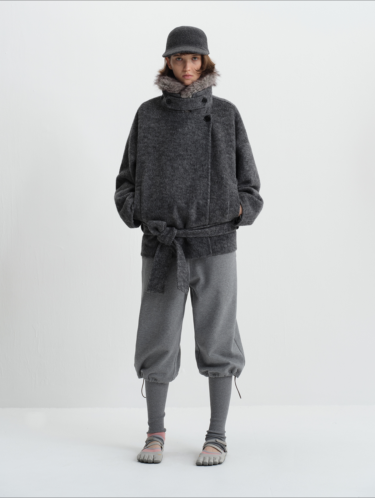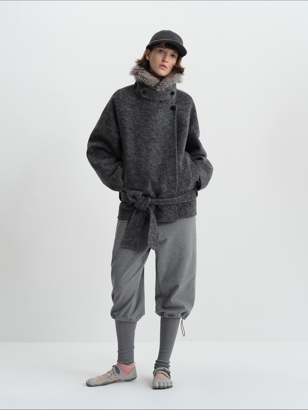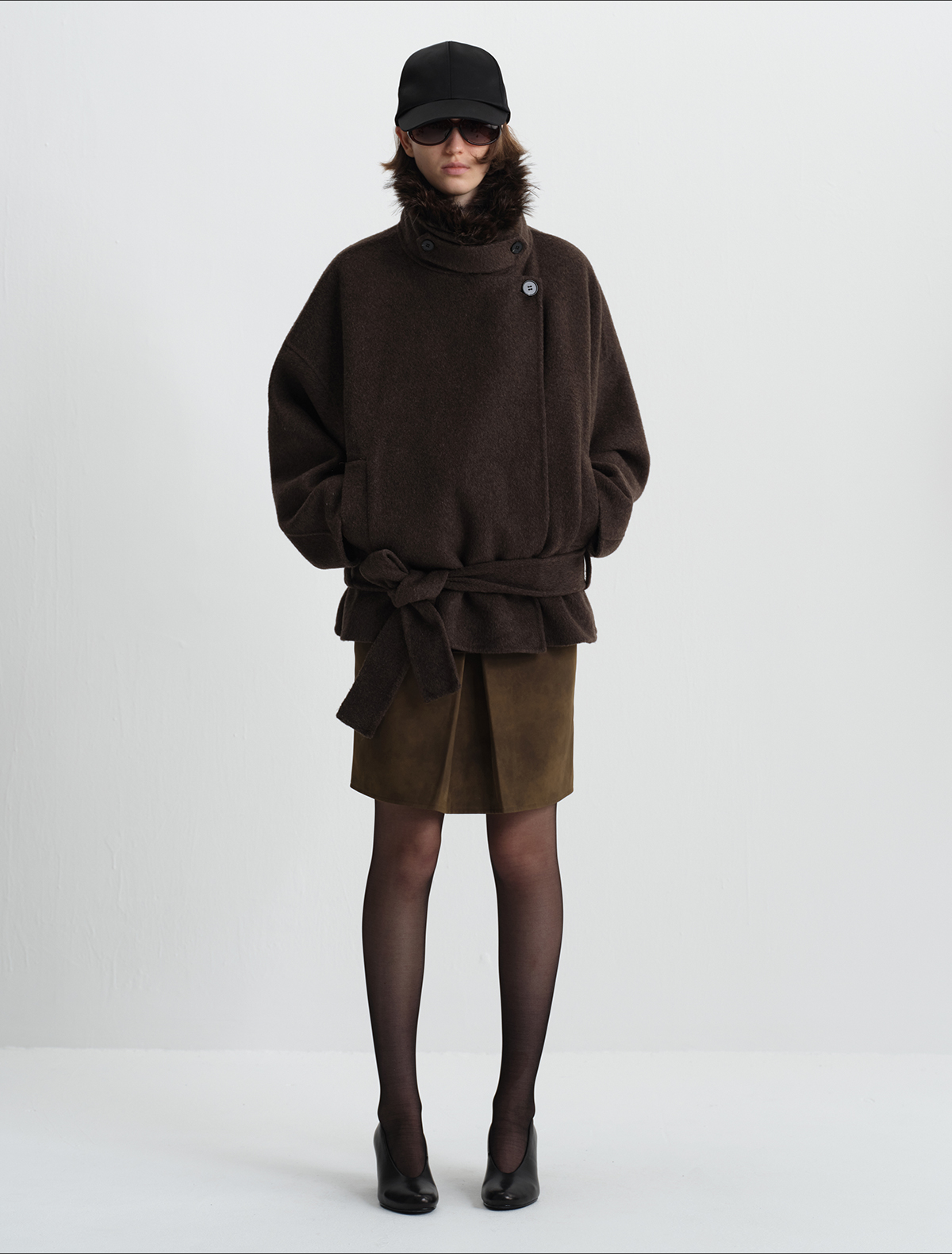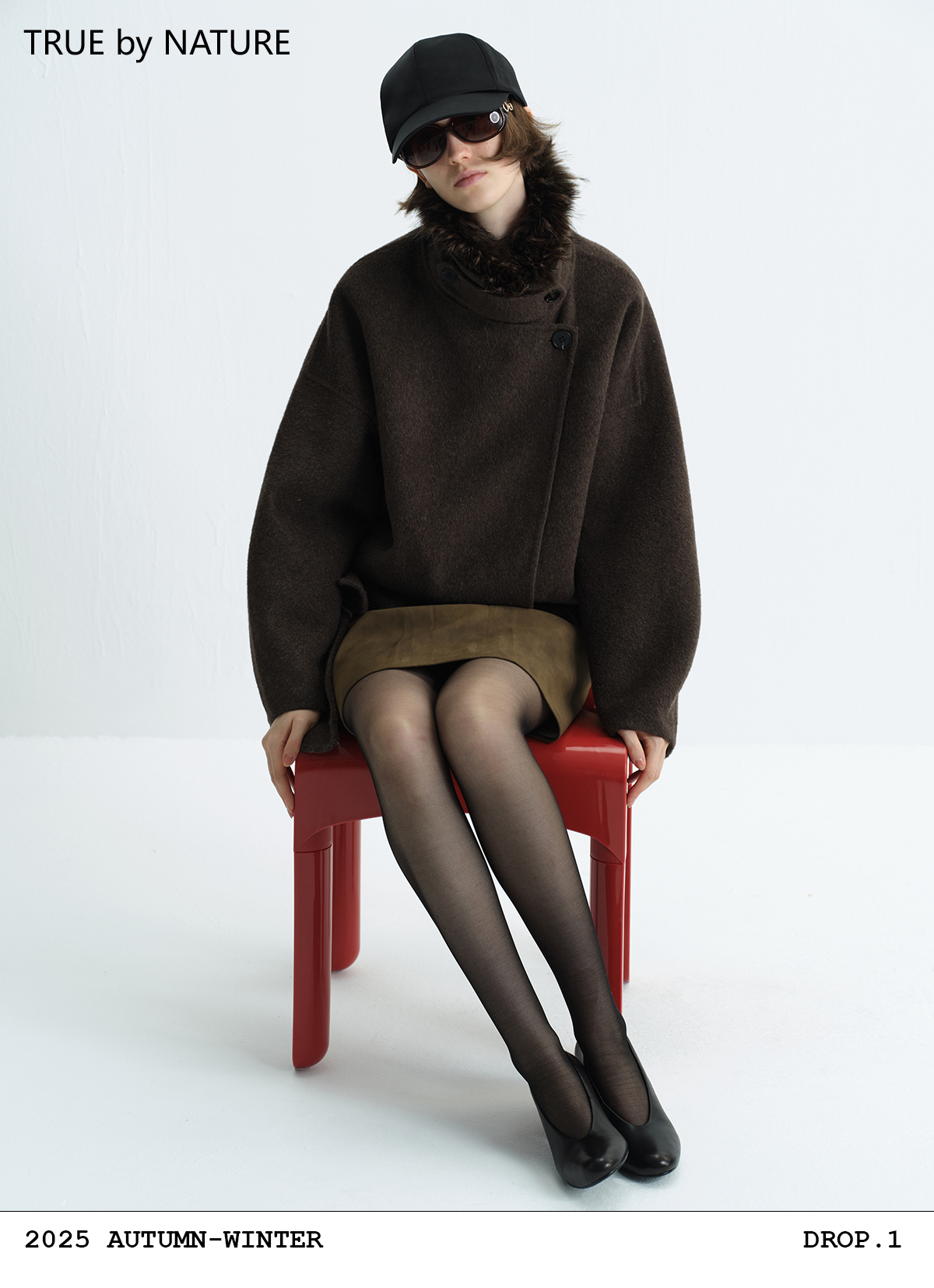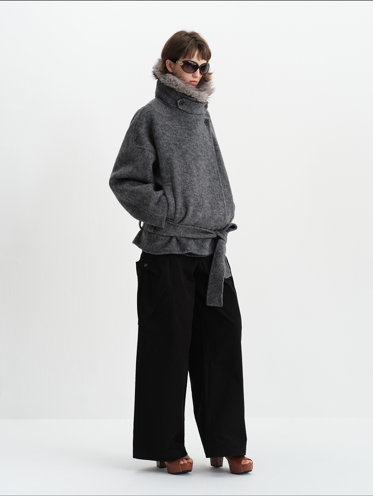True by Nature 70% Wool Vintage Double-Sided Woolen Detachable Fur Collar Short Woolen Coat Jacket