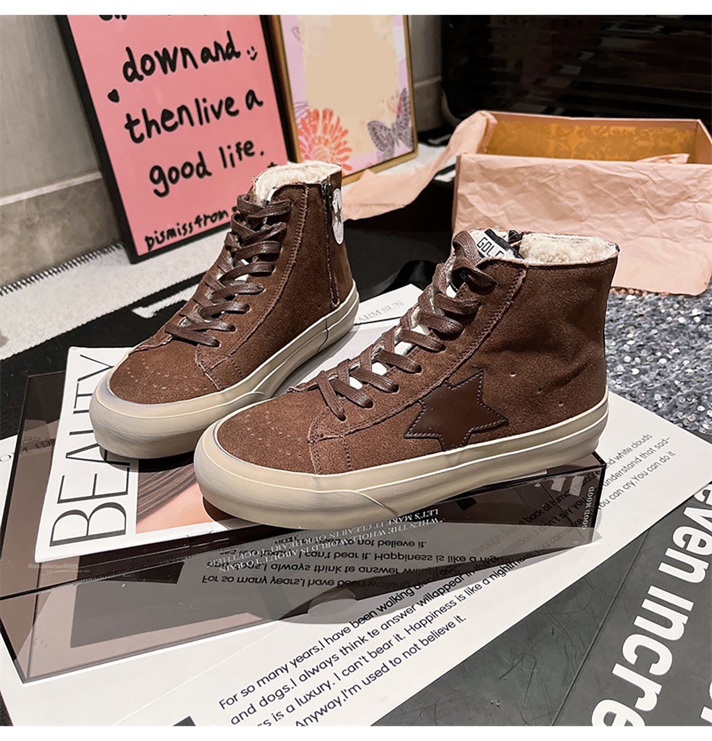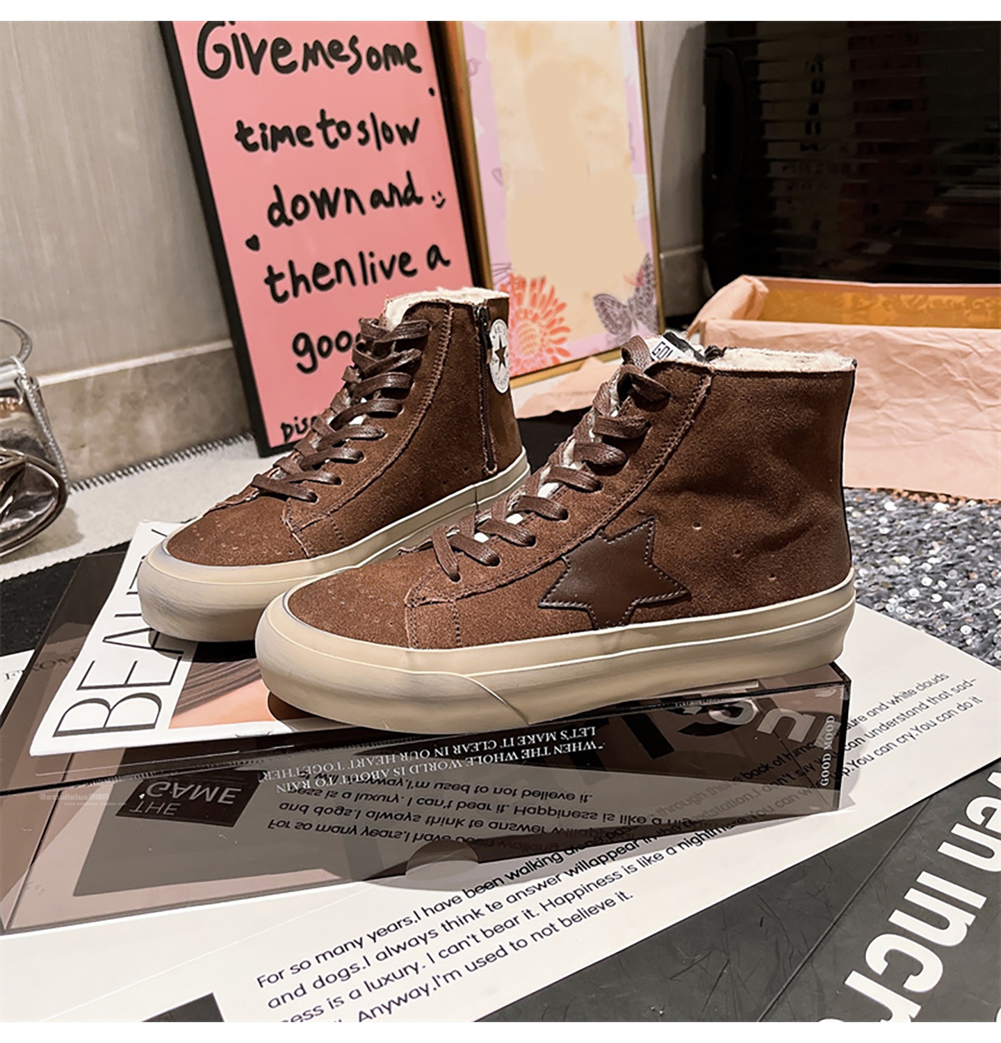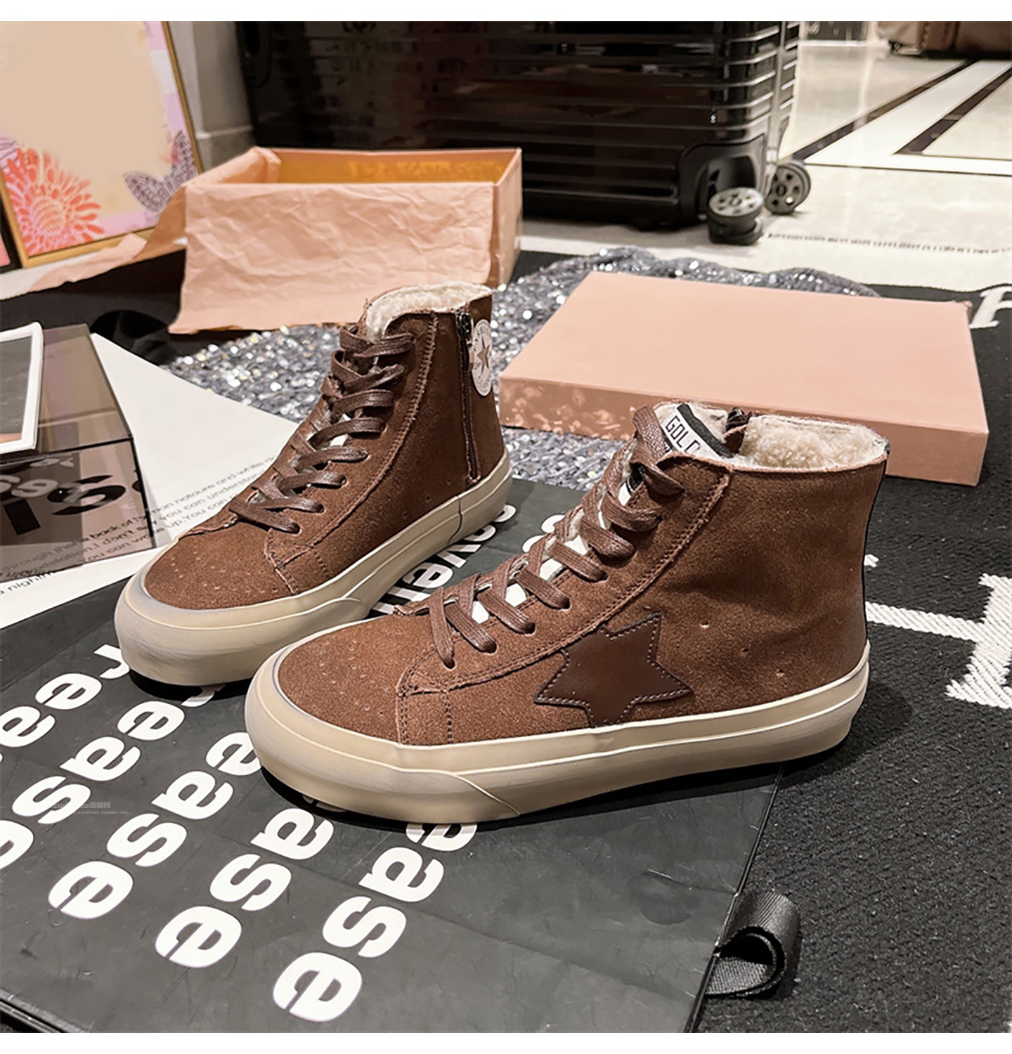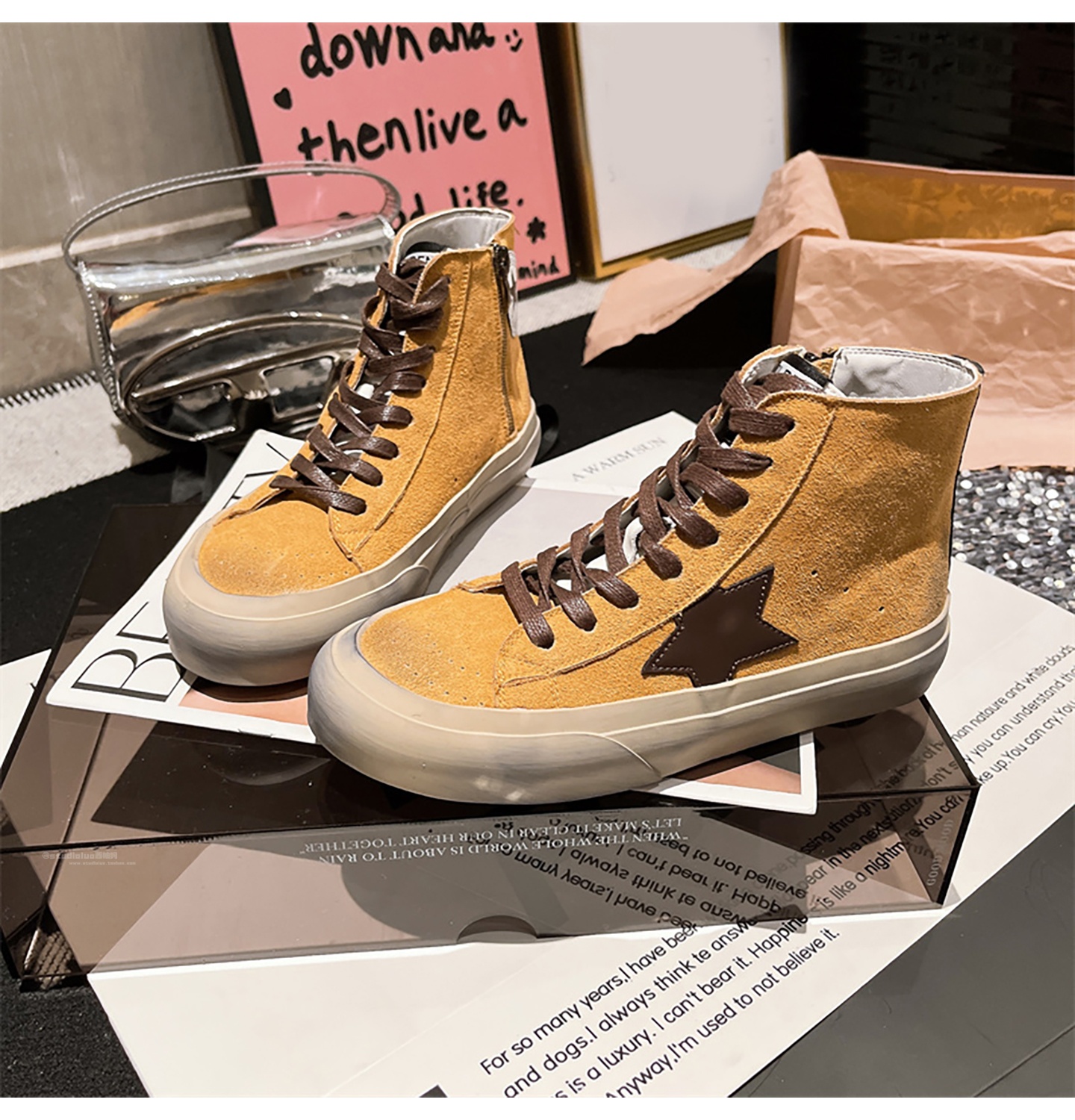 Hong Kong Retro Style Genuine Leather Lace-Up Casual High-Top Shoes for Women 2025 Autumn and Winter New Star Distressed Fleece-Lined Dirty Shoes