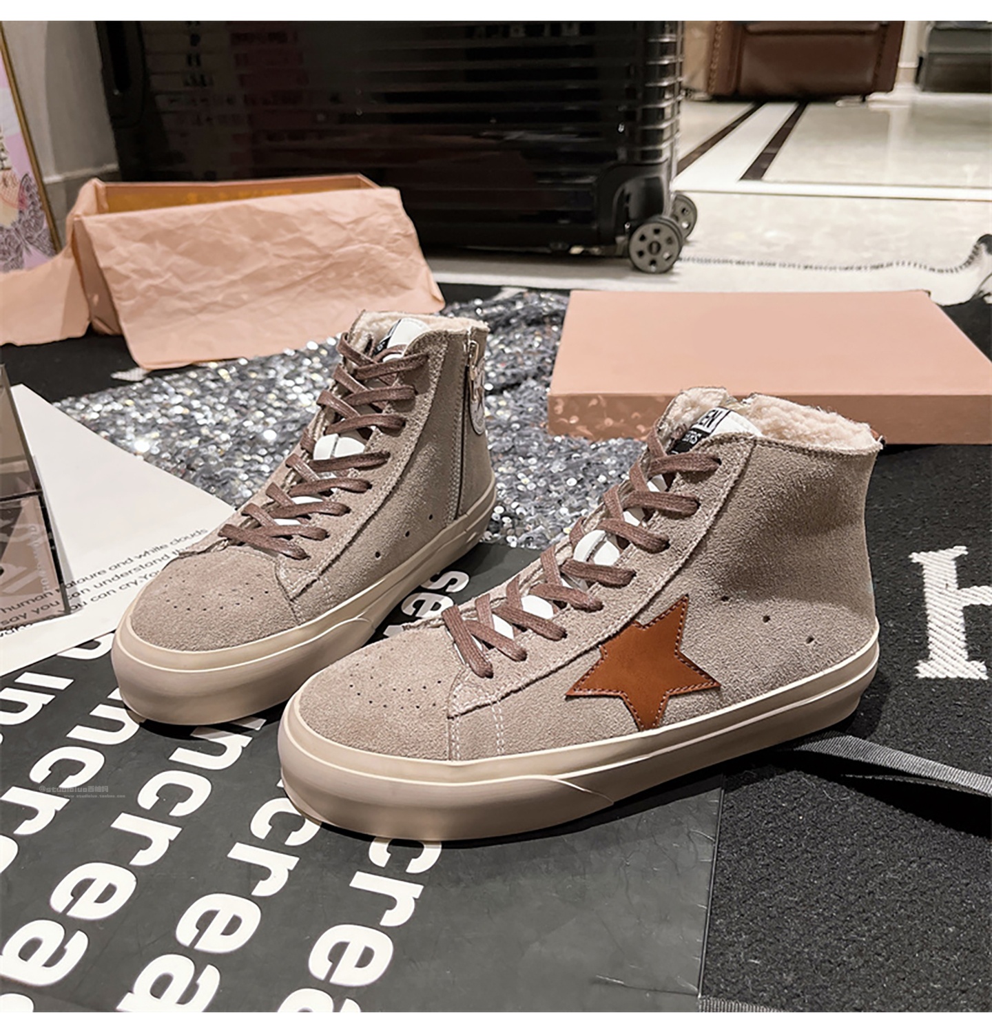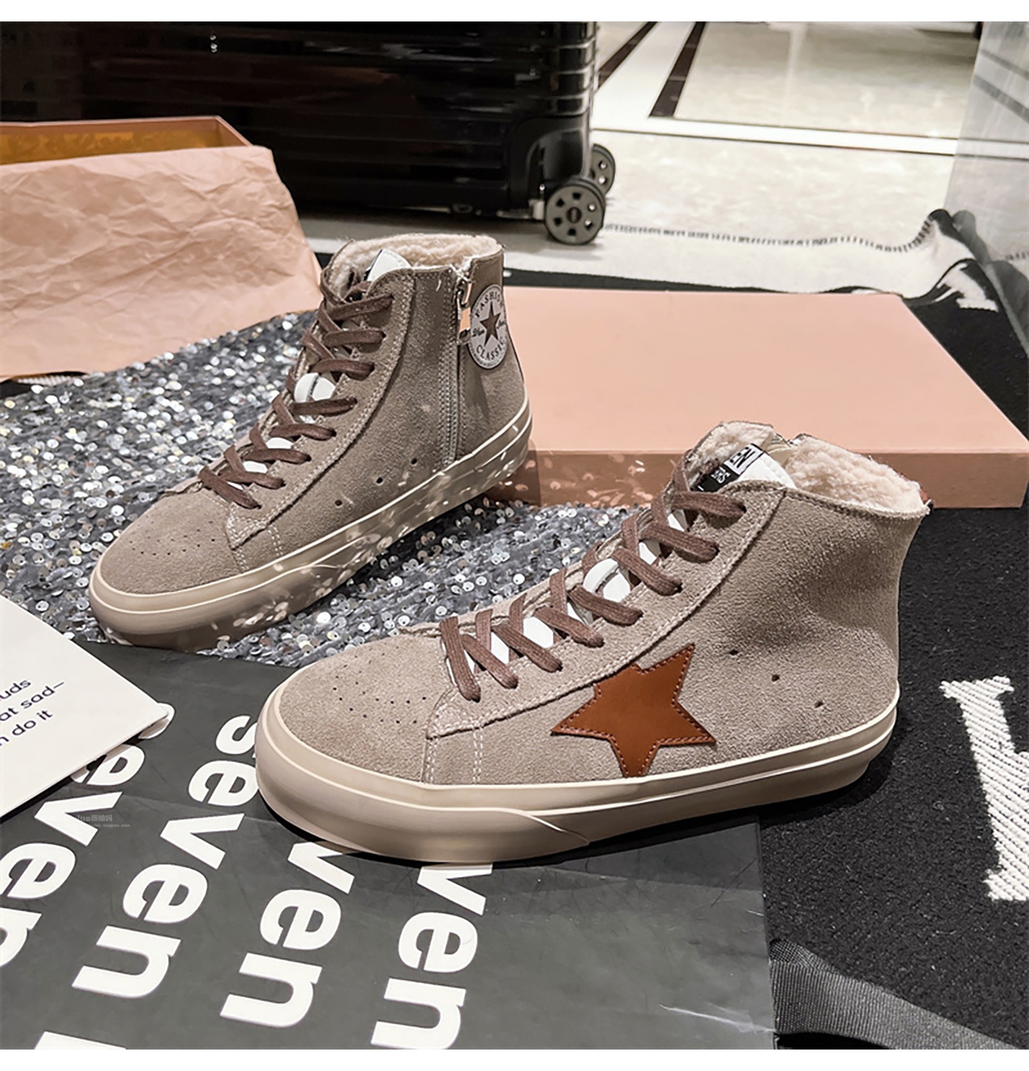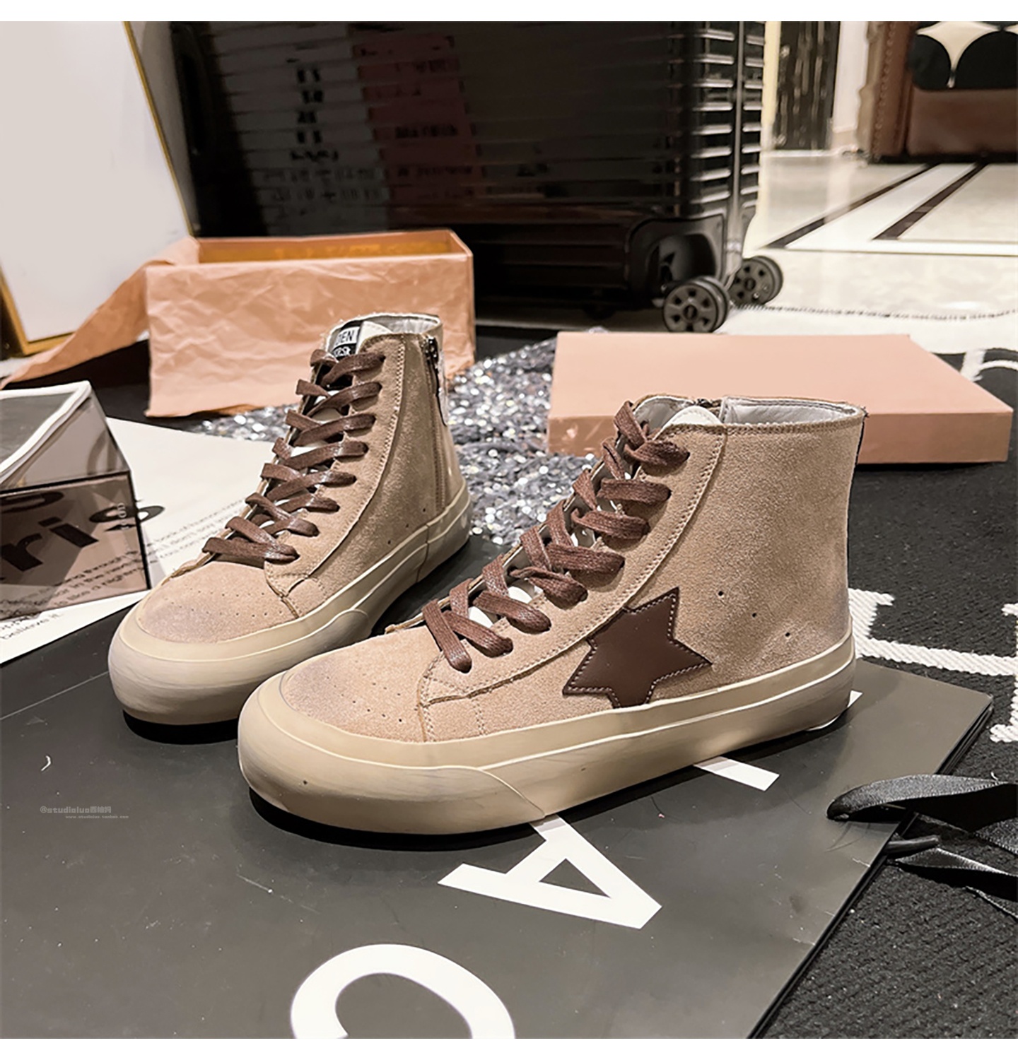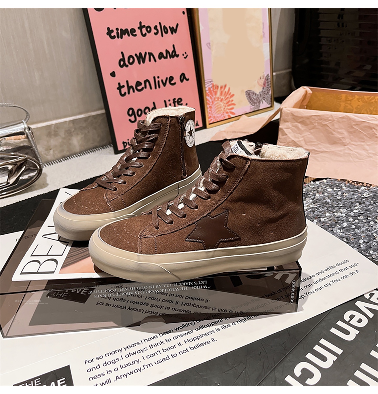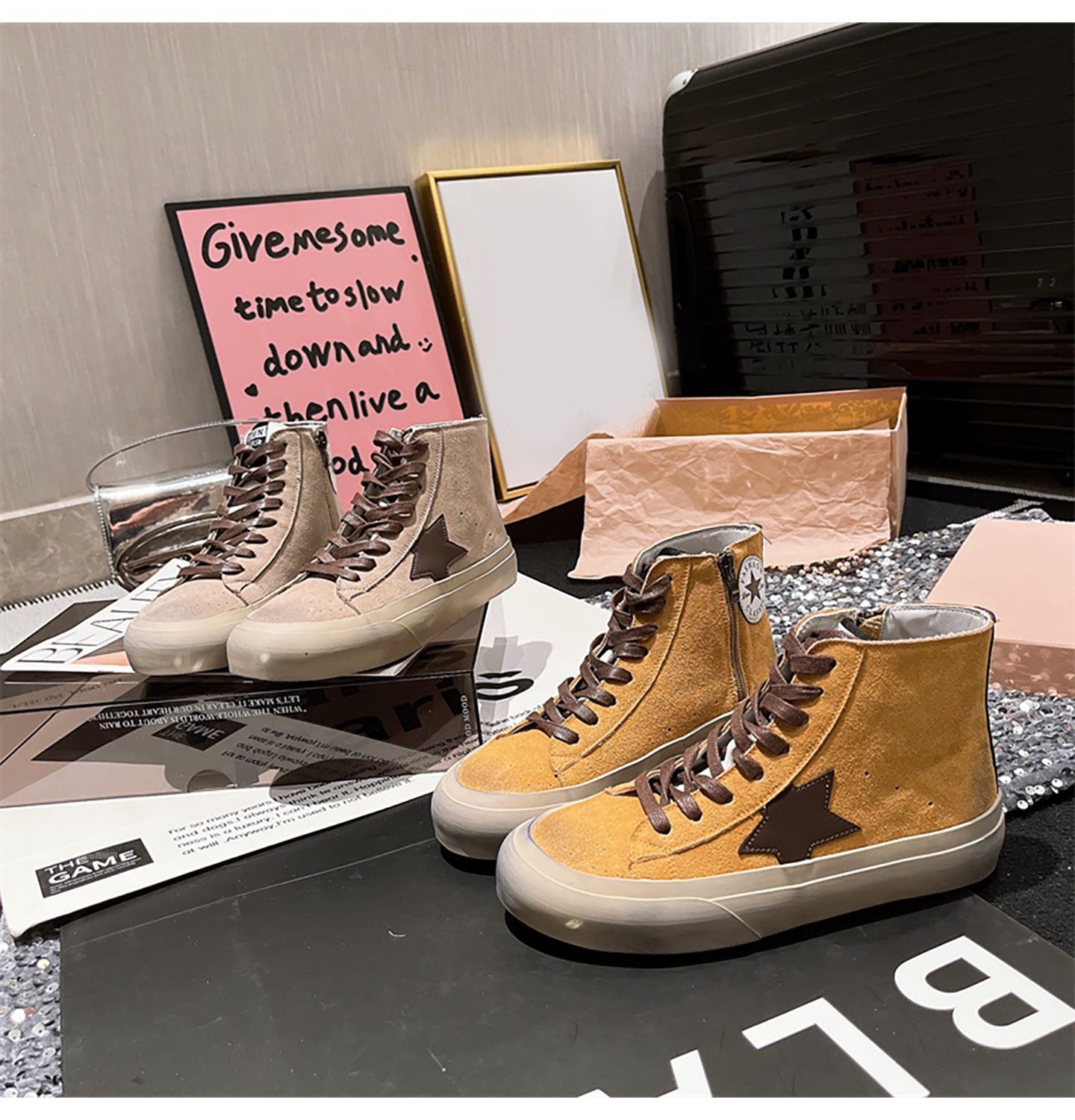 Hong Kong Retro Style Genuine Leather Lace-Up Casual High-Top Shoes for Women 2025 Autumn and Winter New Star Distressed Fleece-Lined Dirty Shoes