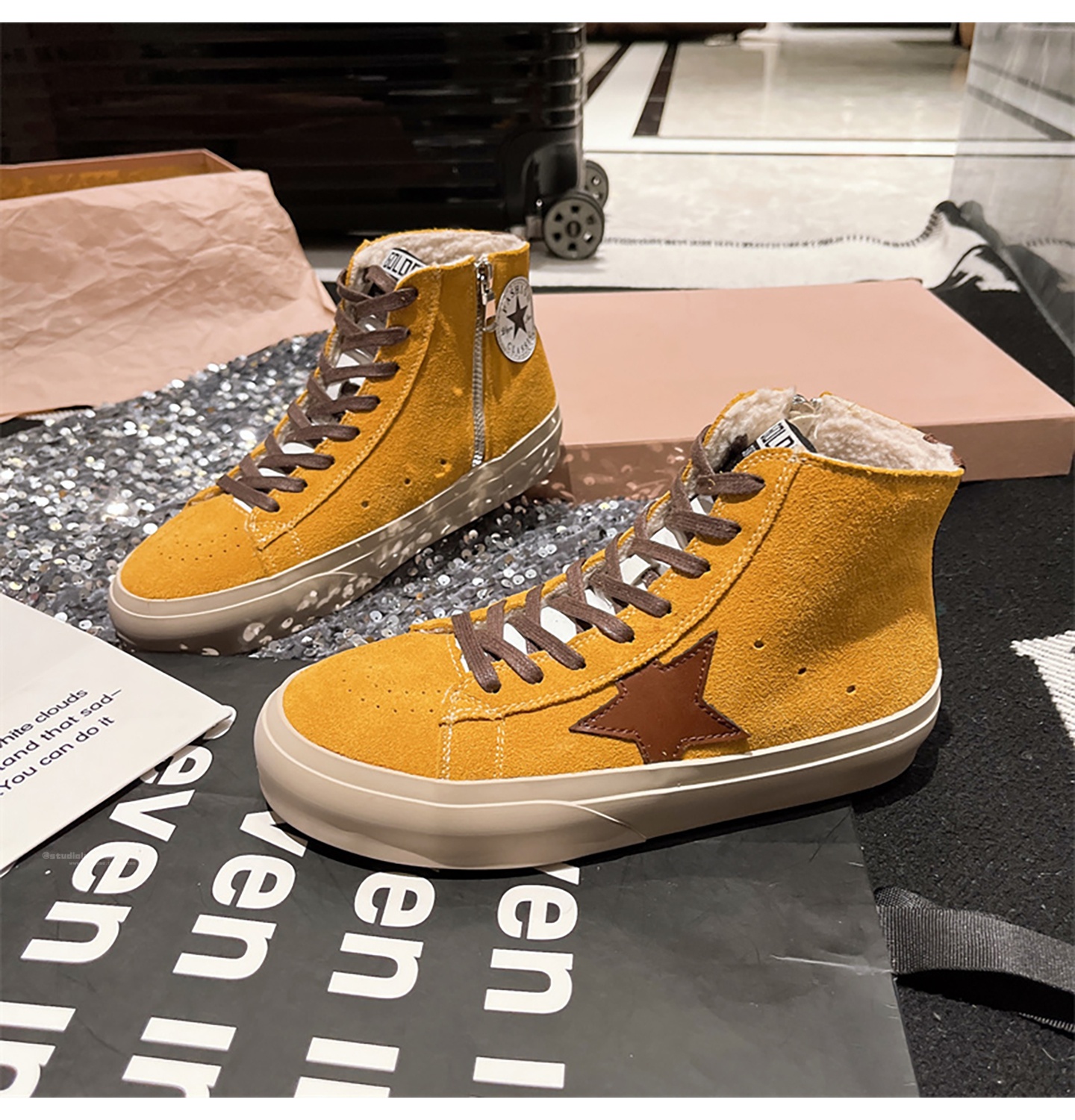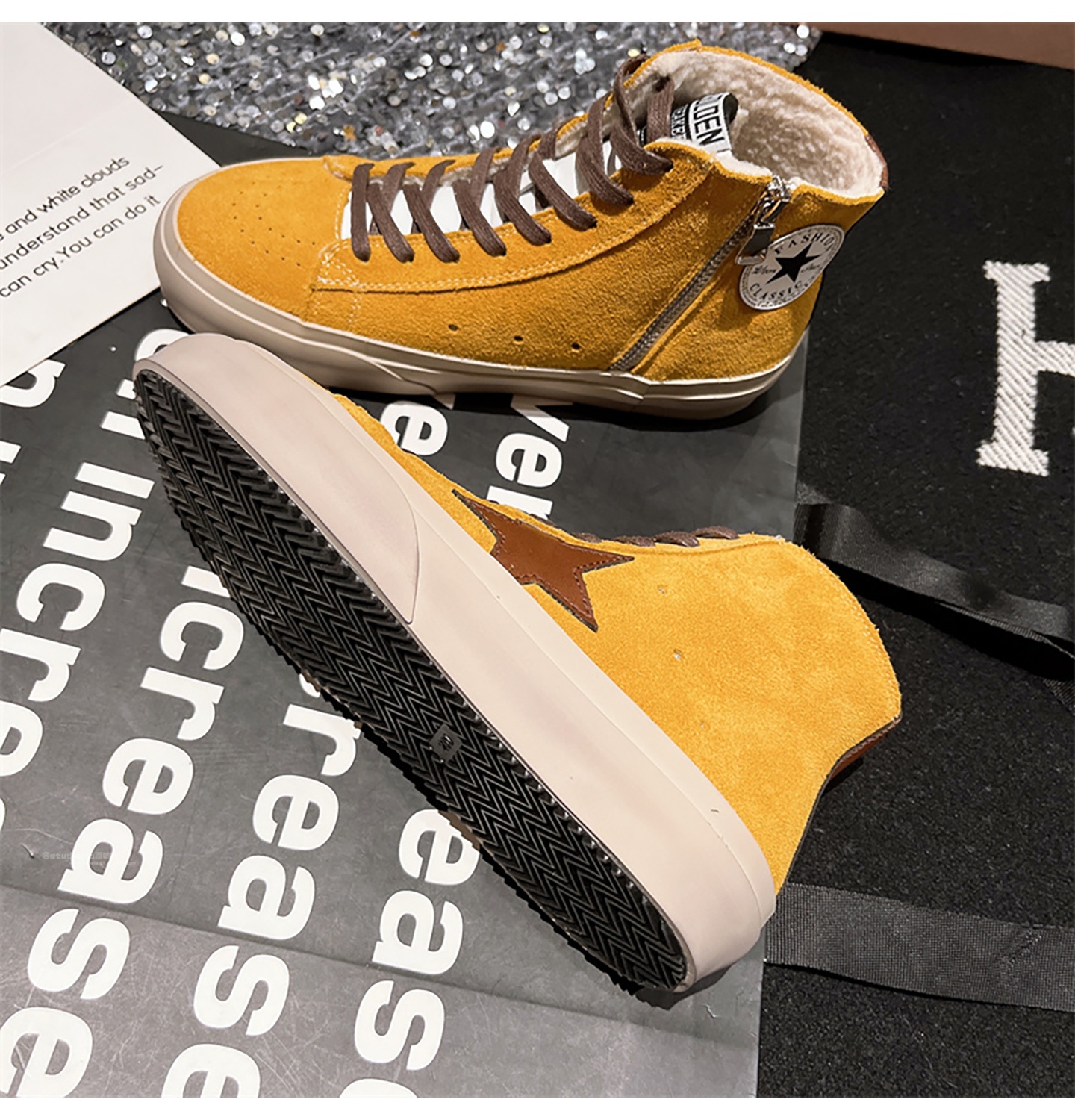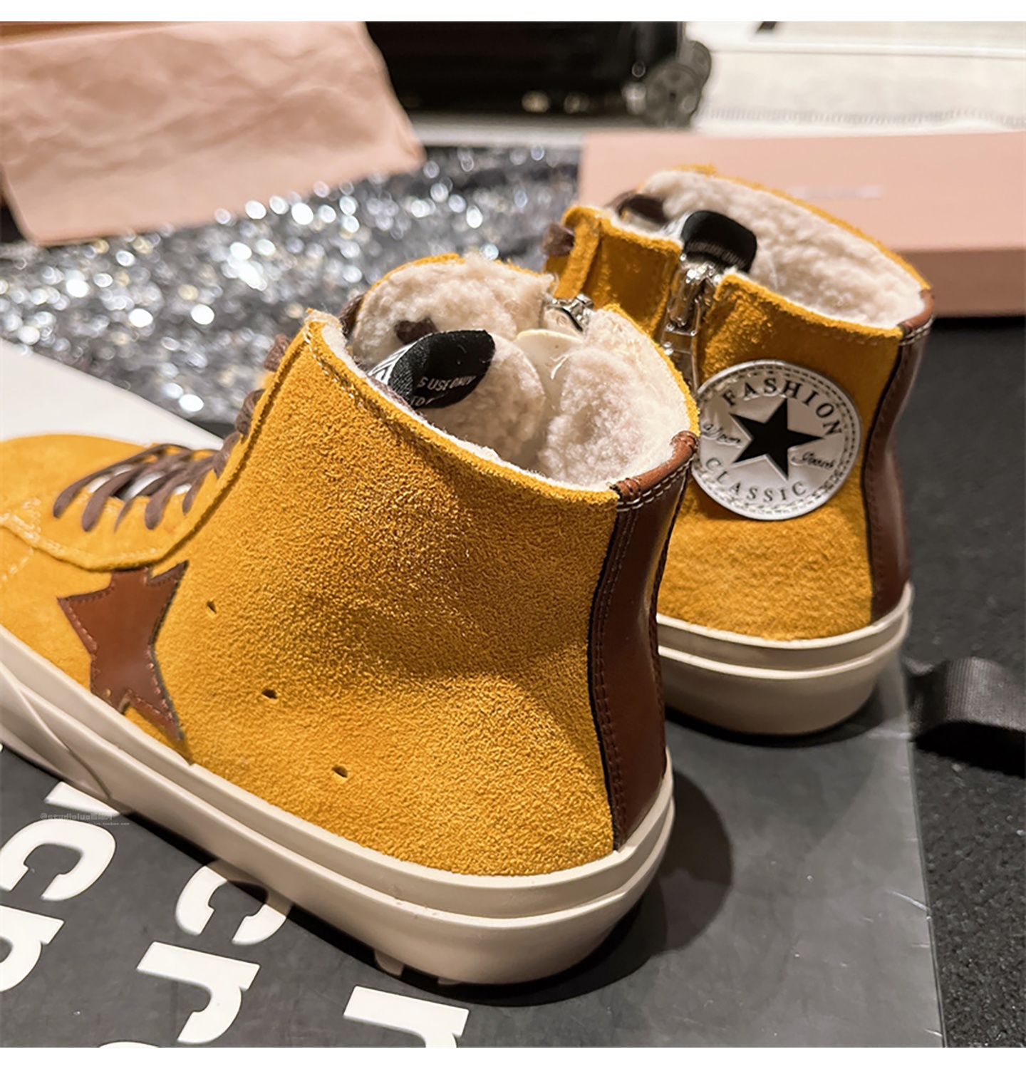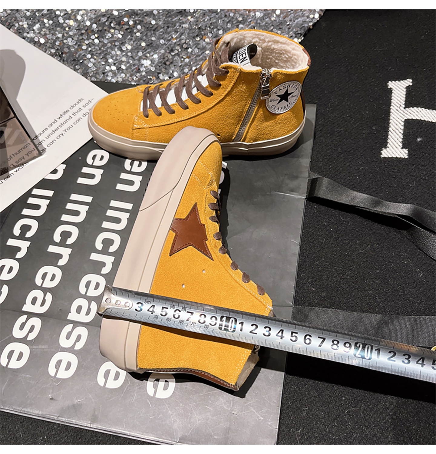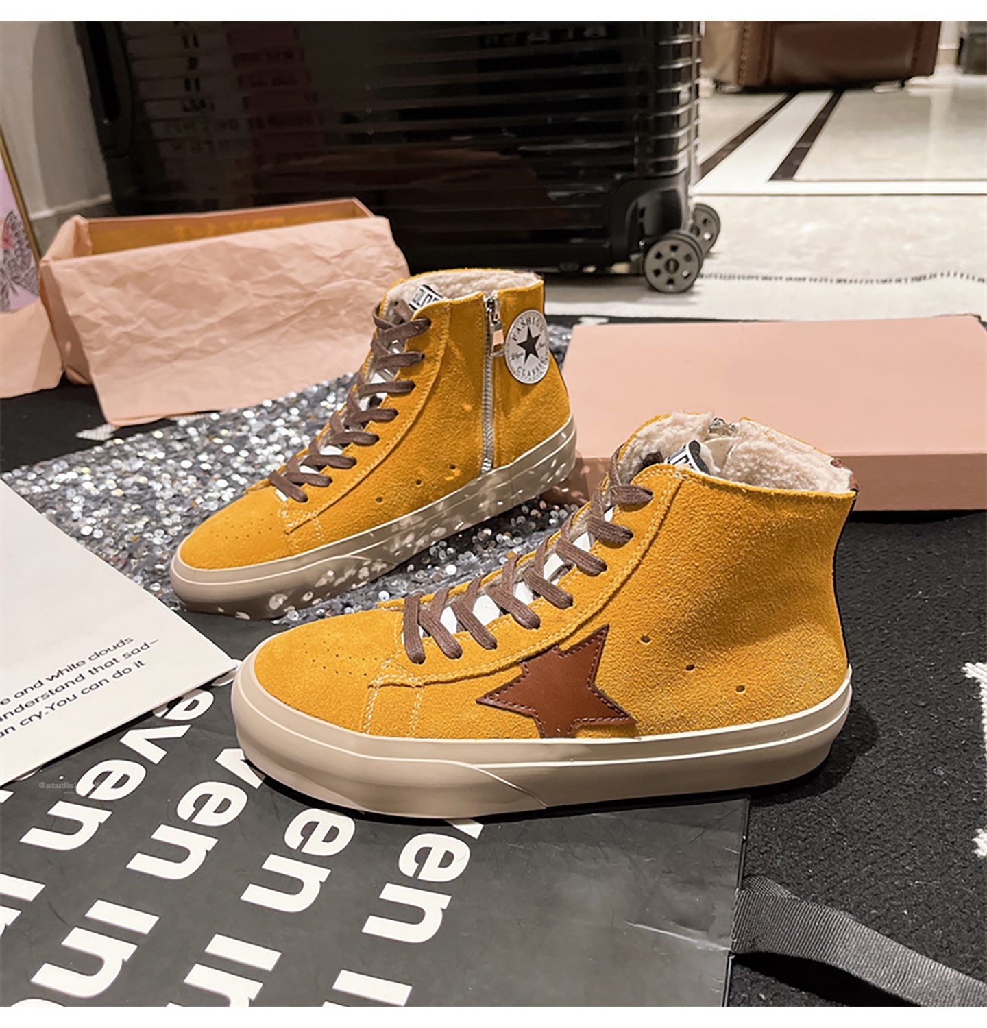 Hong Kong Retro Style Genuine Leather Lace-Up Casual High-Top Shoes for Women 2025 Autumn and Winter New Star Distressed Fleece-Lined Dirty Shoes