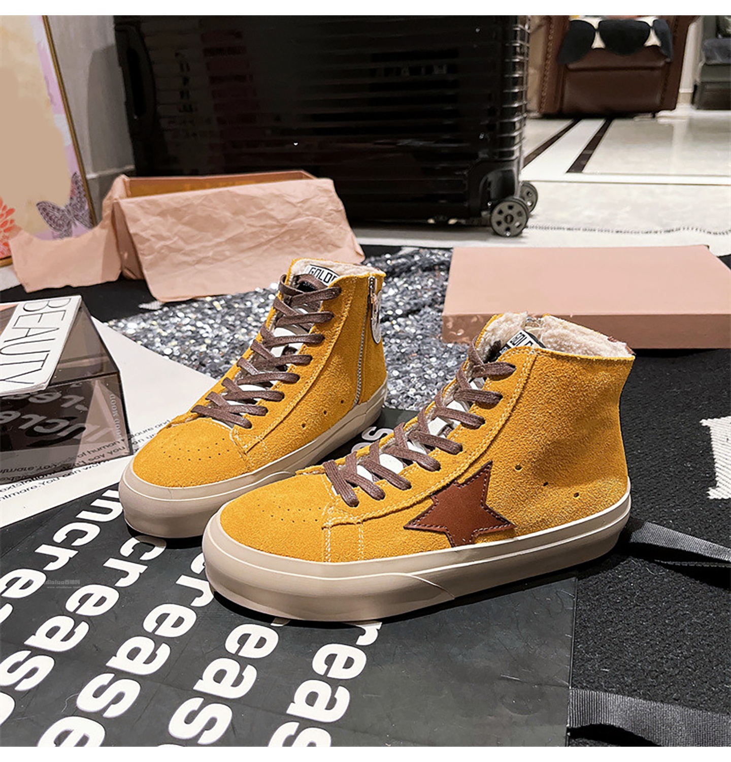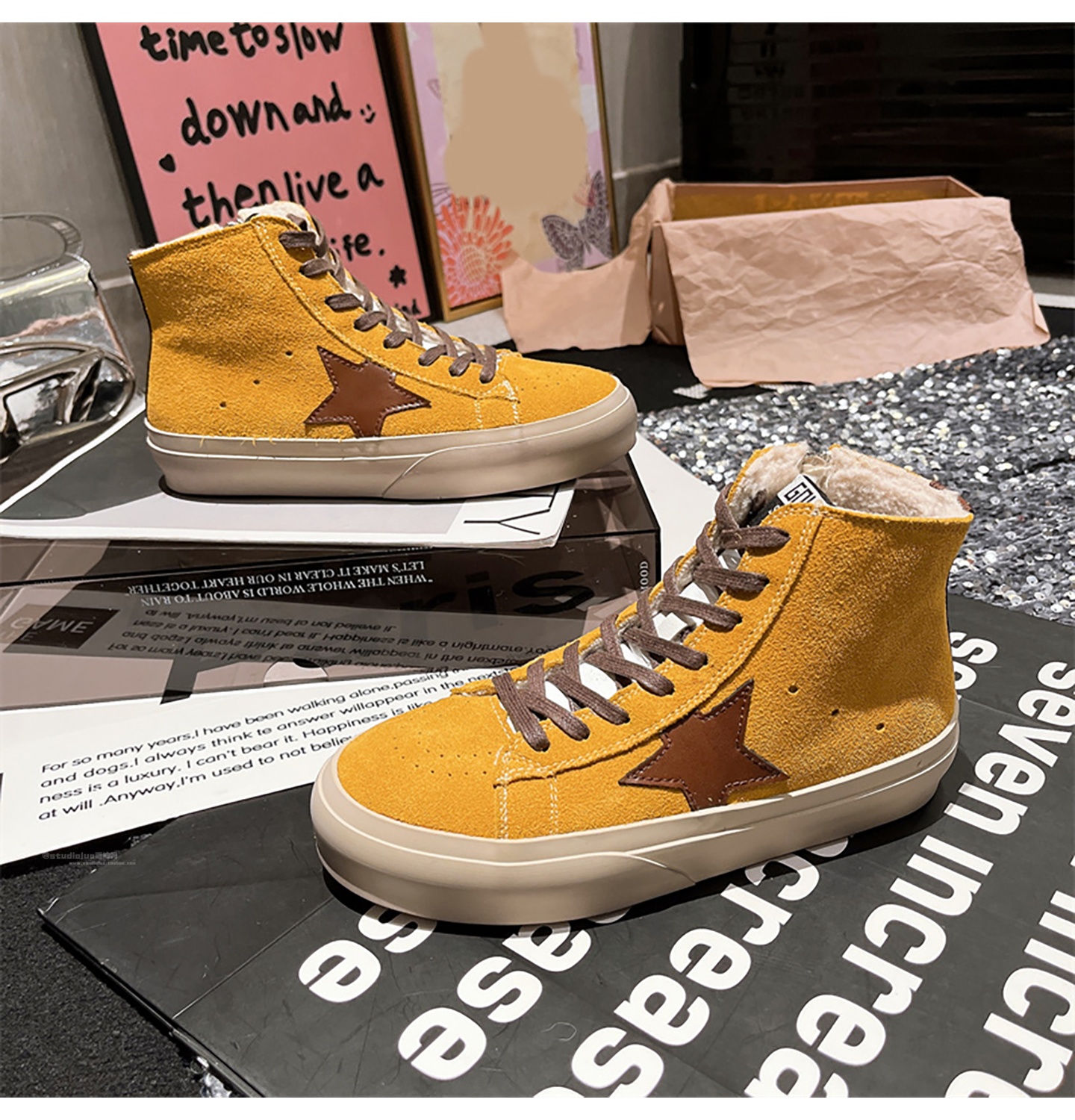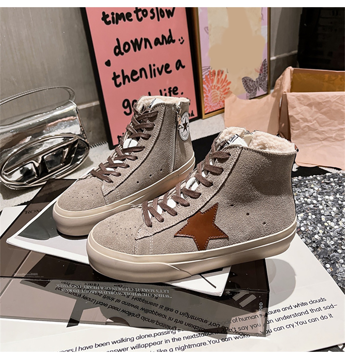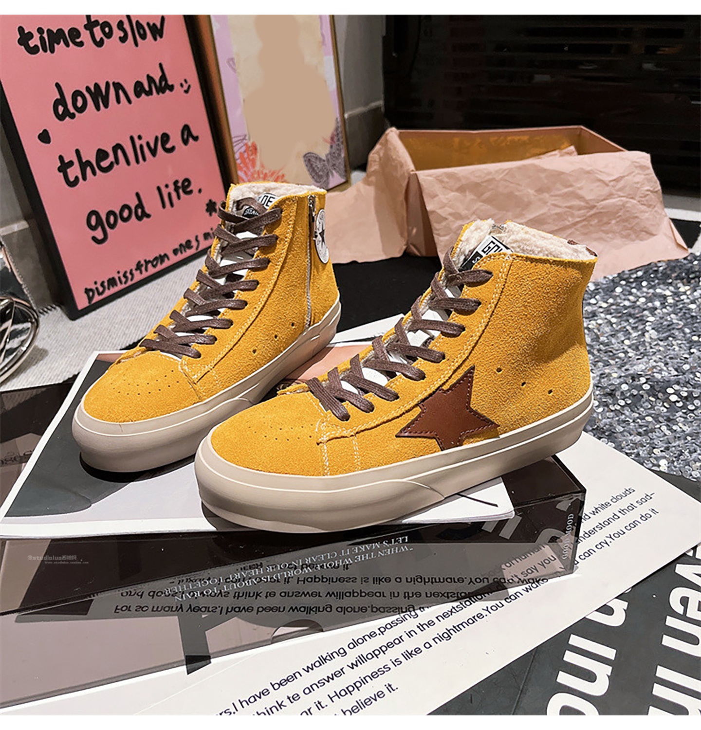 Hong Kong Retro Style Genuine Leather Lace-Up Casual High-Top Shoes for Women 2025 Autumn and Winter New Star Distressed Fleece-Lined Dirty Shoes