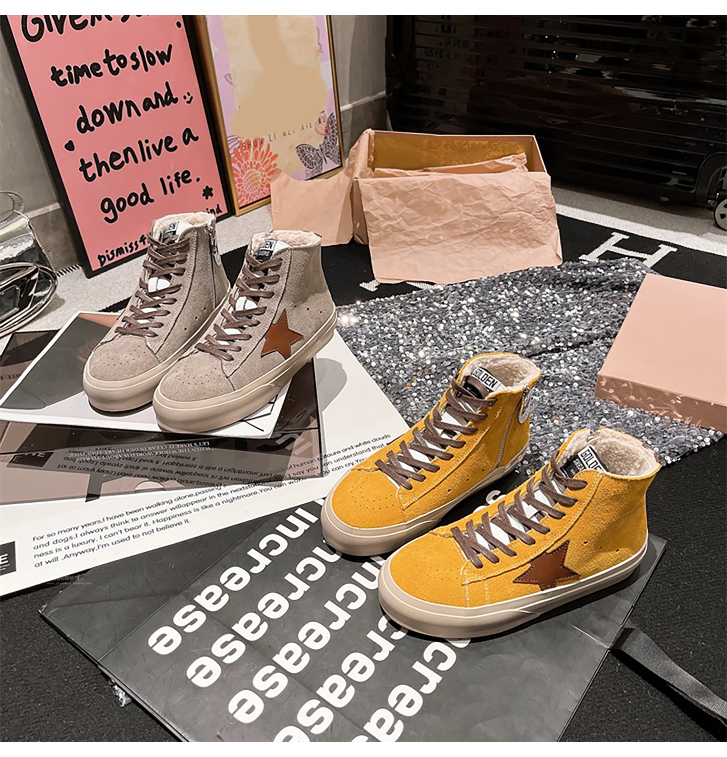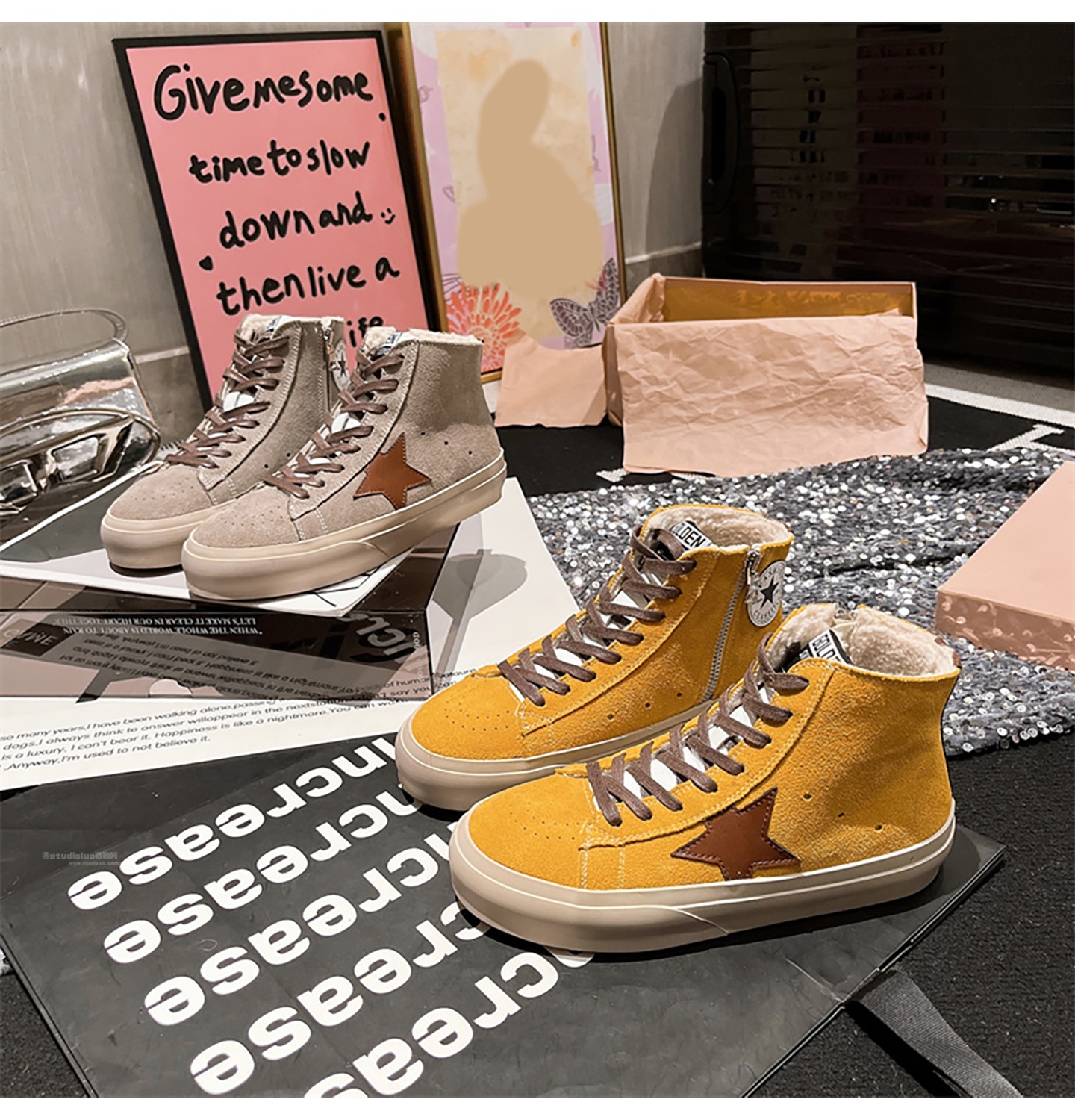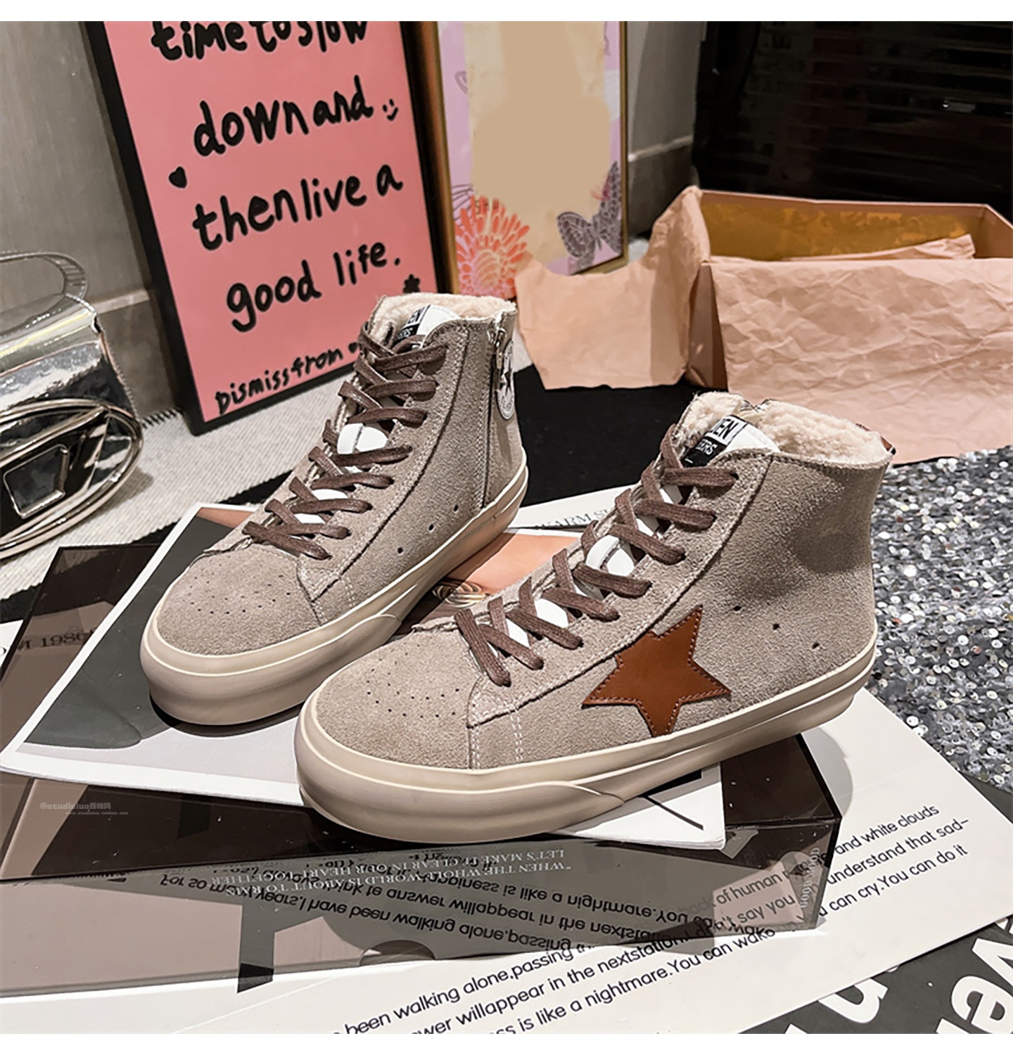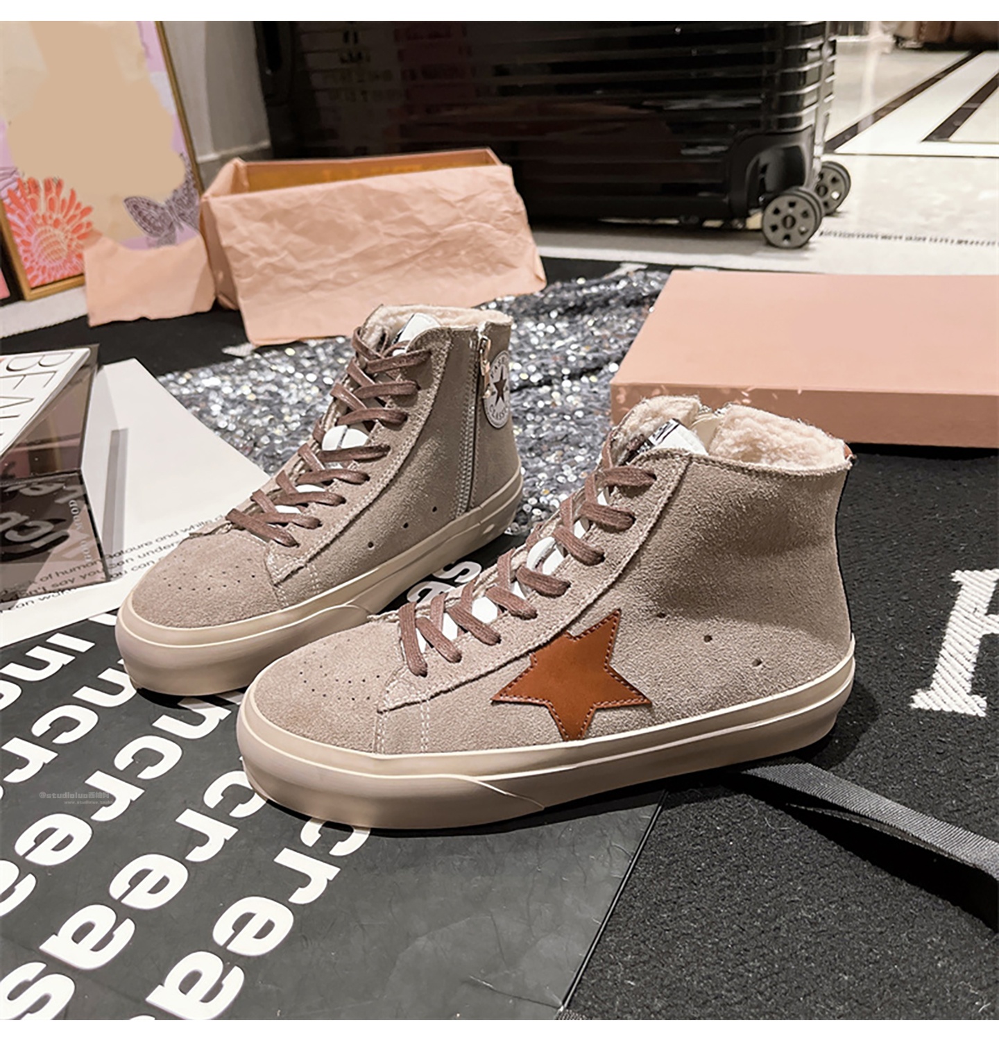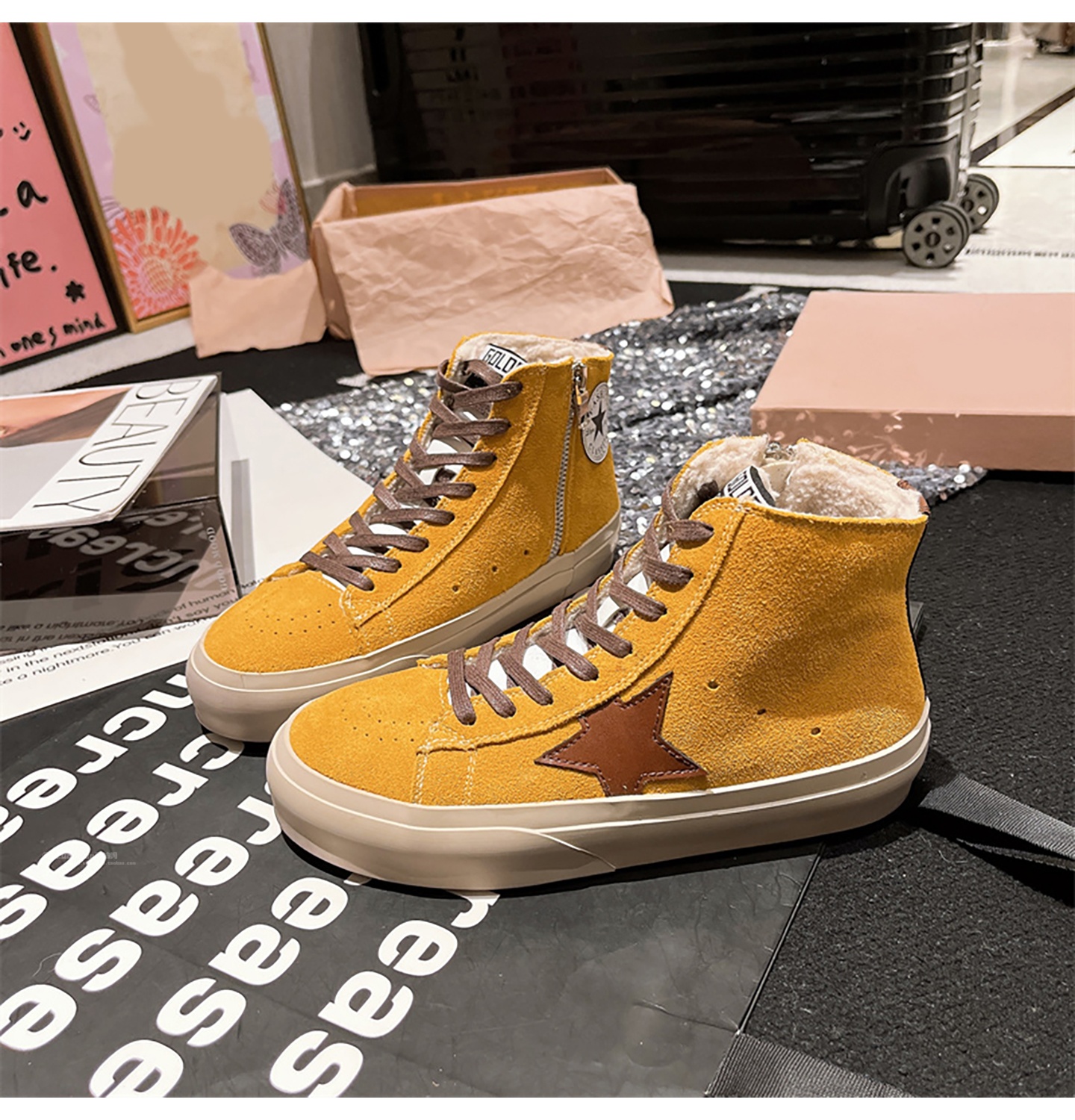 Hong Kong Retro Style Genuine Leather Lace-Up Casual High-Top Shoes for Women 2025 Autumn and Winter New Star Distressed Fleece-Lined Dirty Shoes