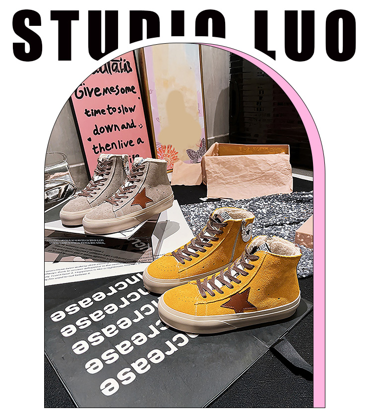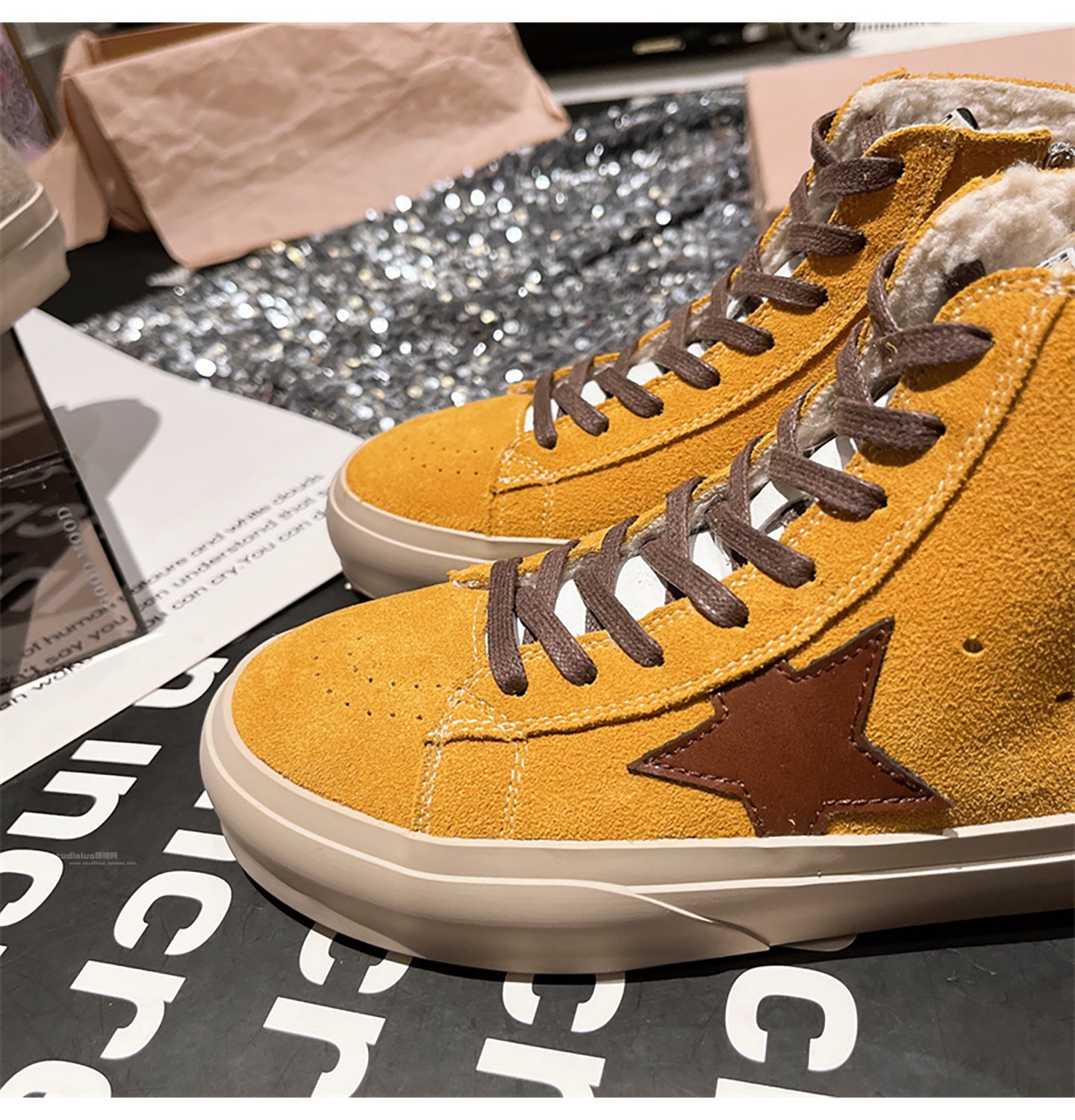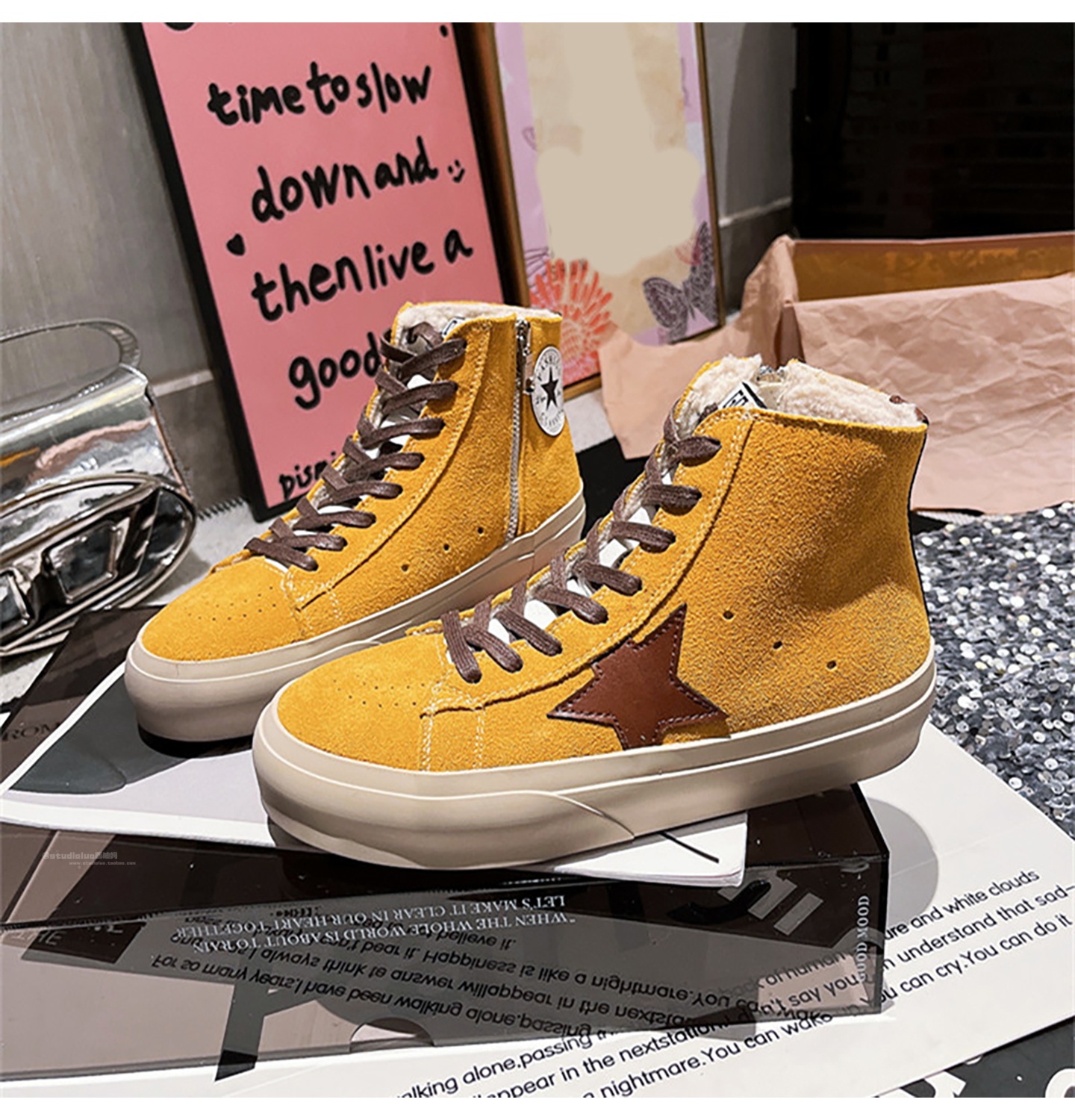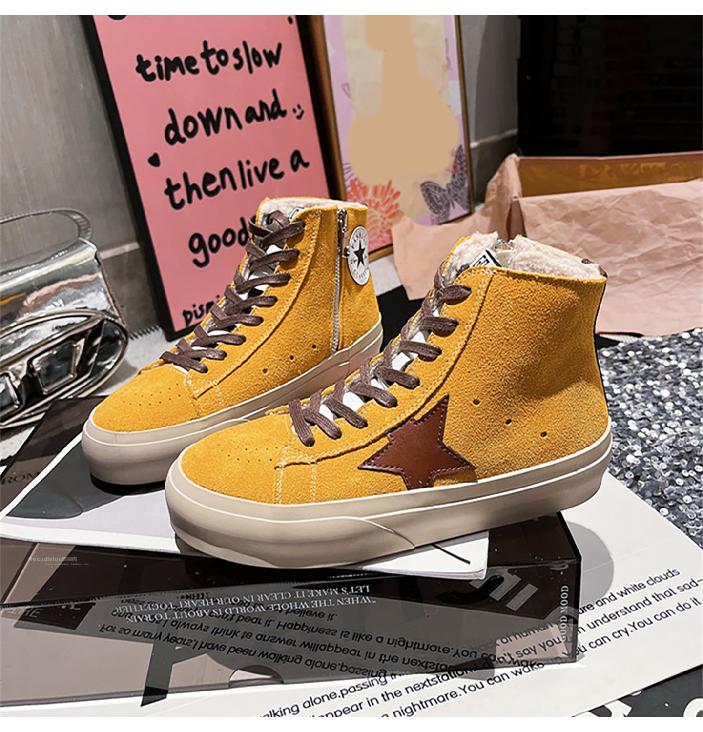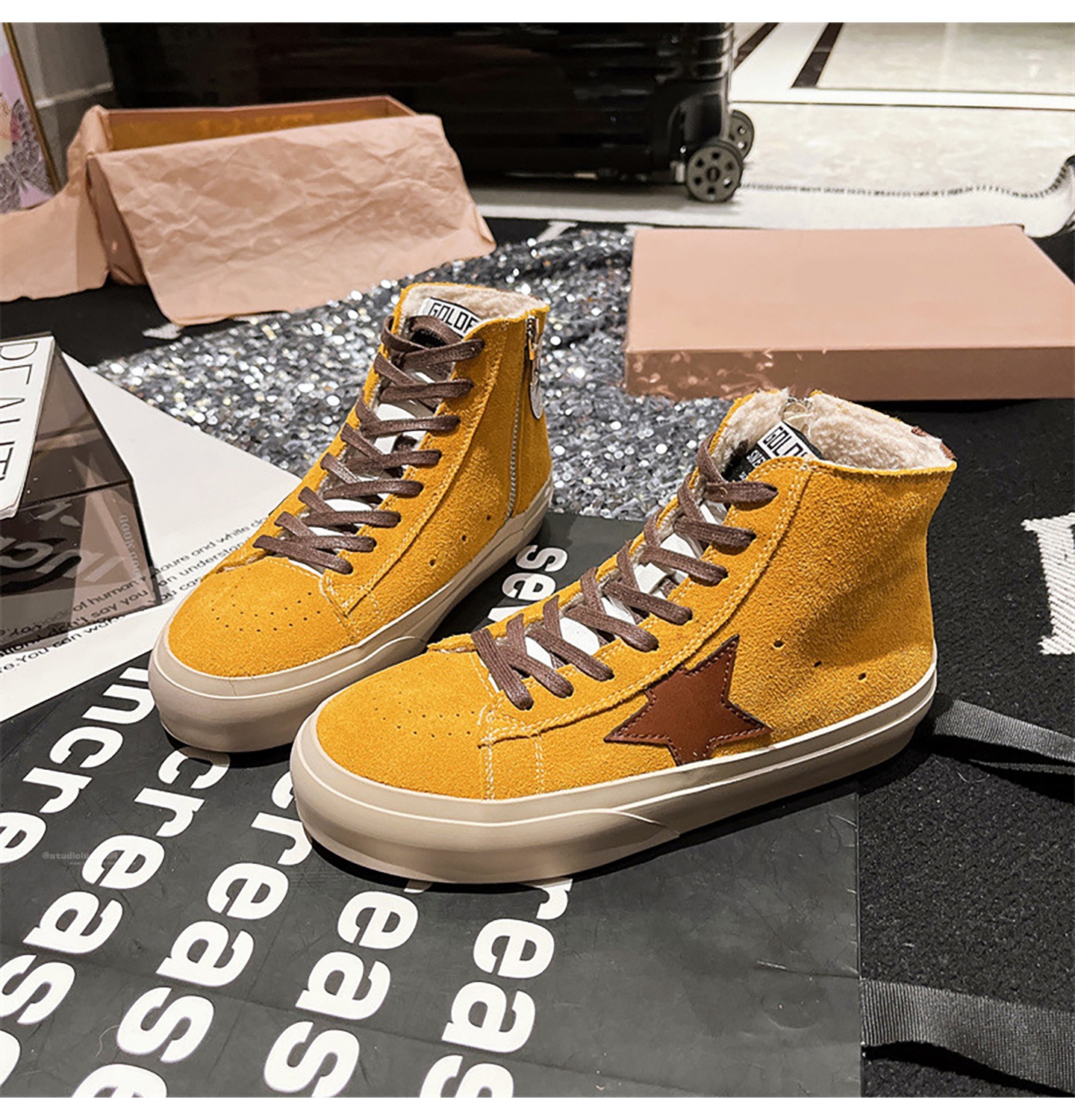 Hong Kong Retro Style Genuine Leather Lace-Up Casual High-Top Shoes for Women 2025 Autumn and Winter New Star Distressed Fleece-Lined Dirty Shoes